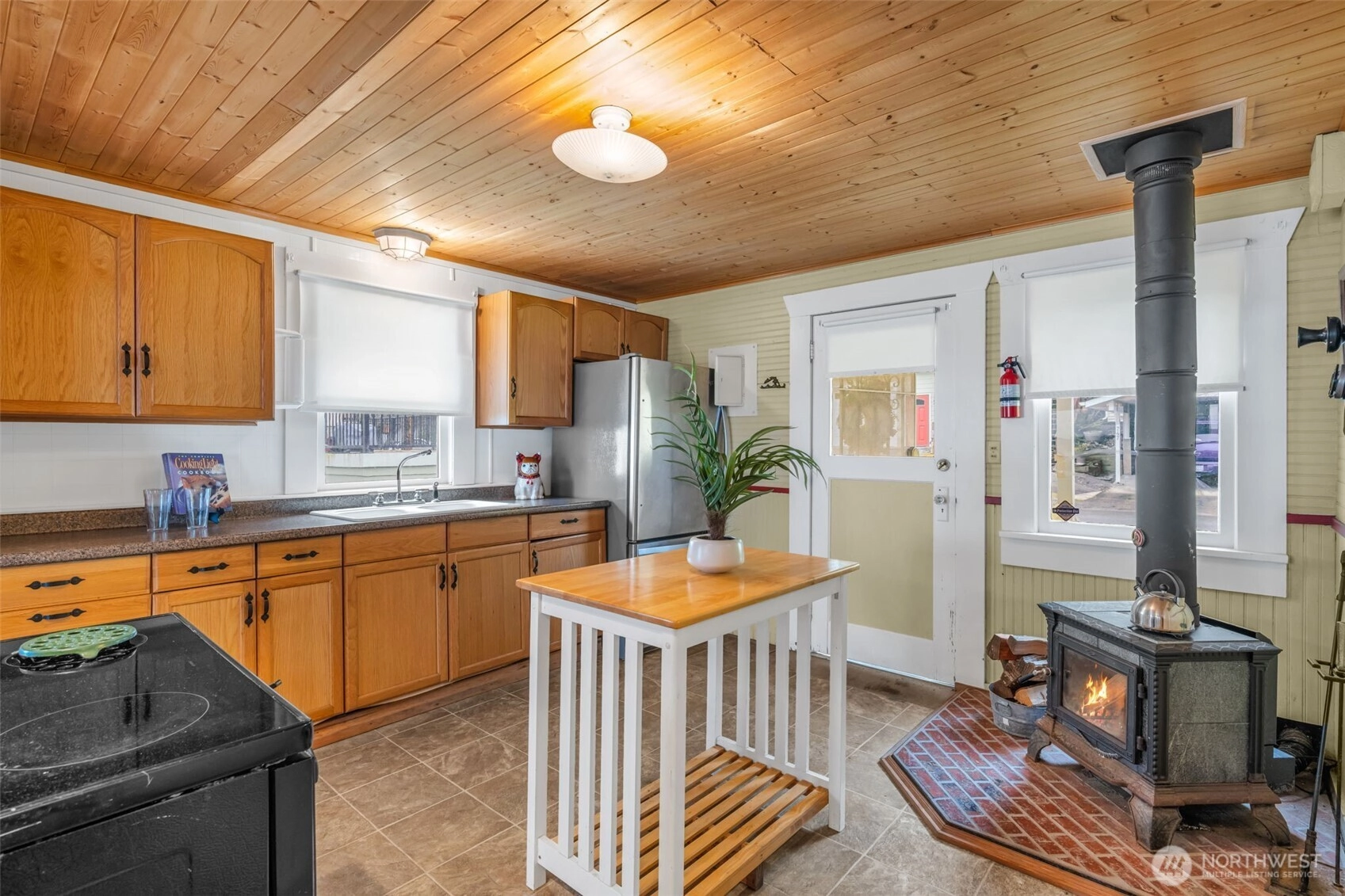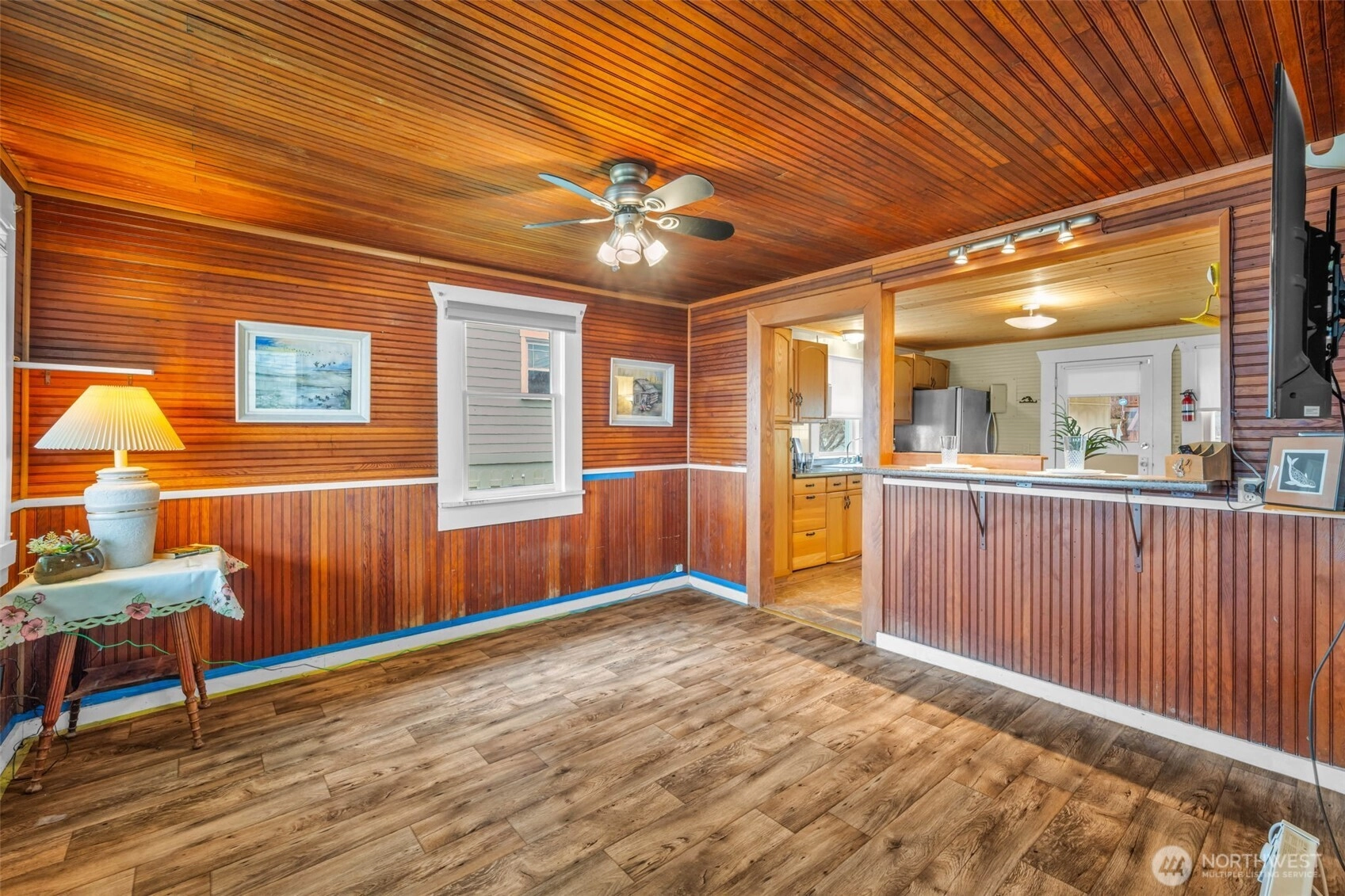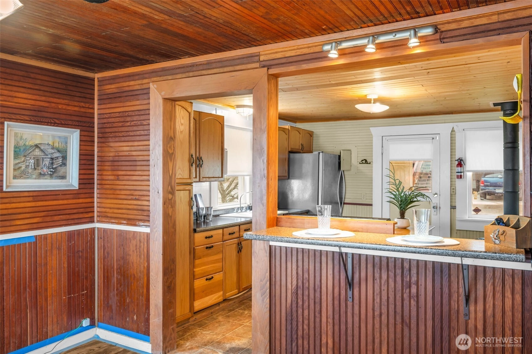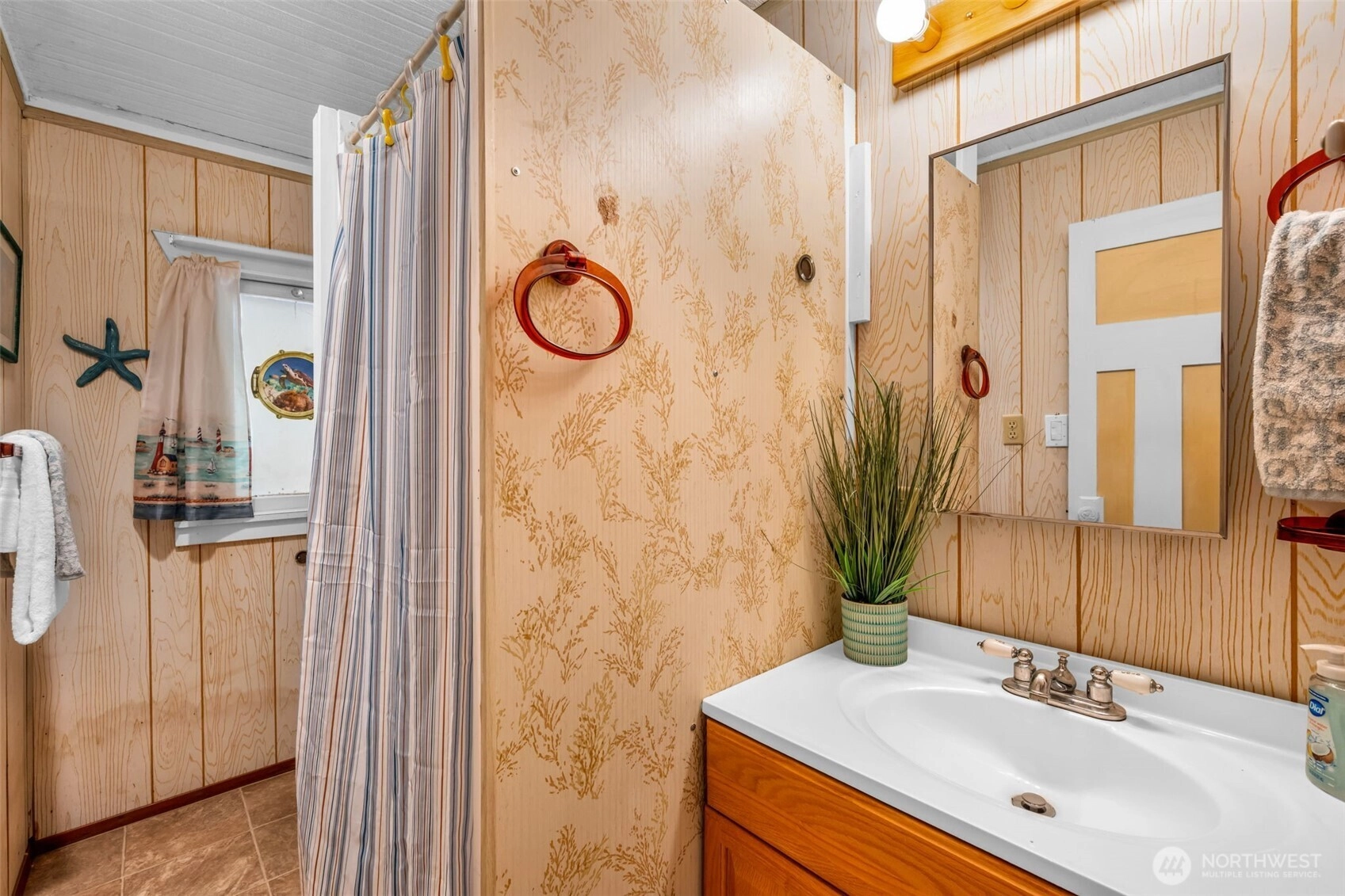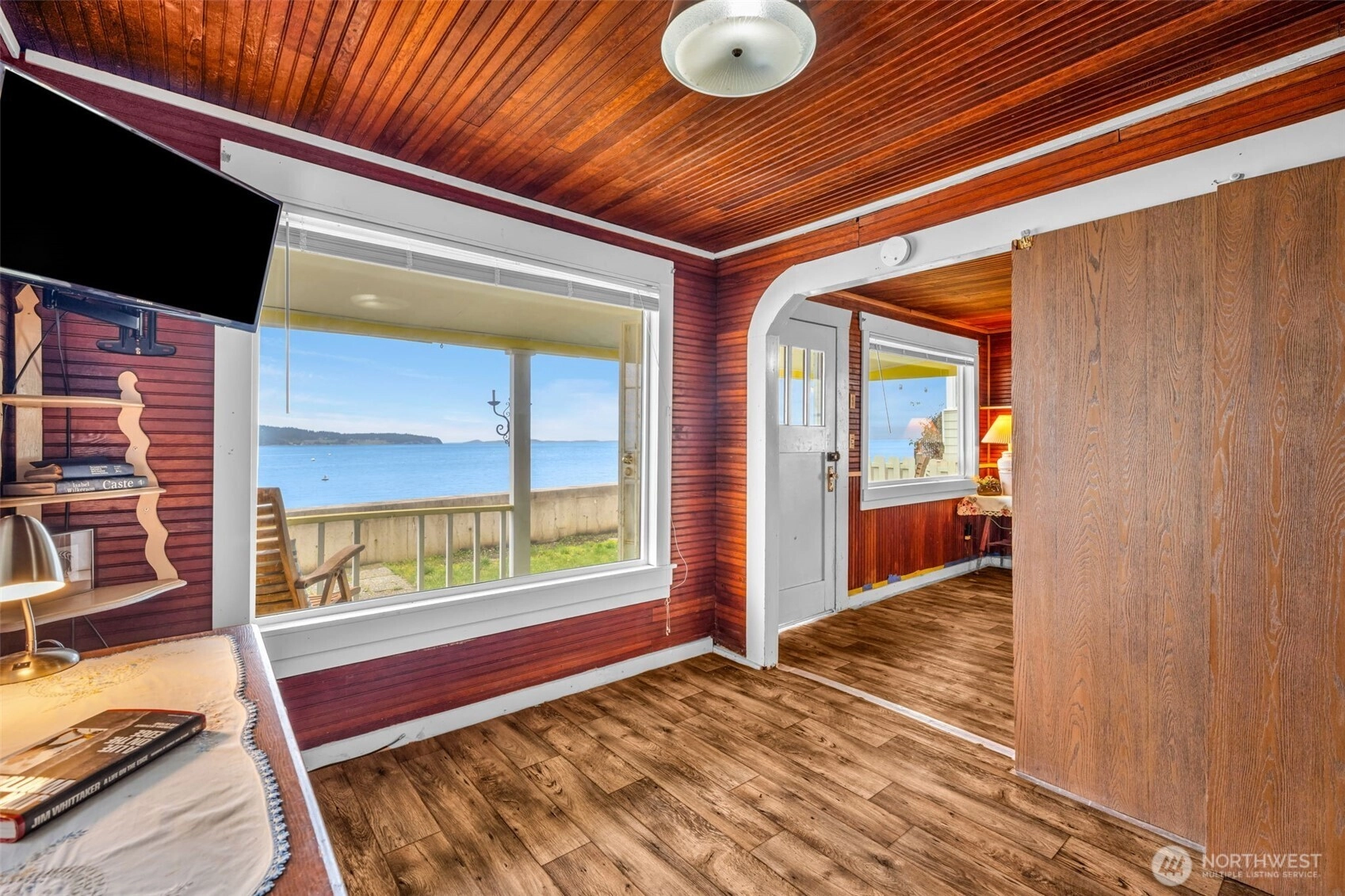 Wake up to sweeping views of Whidbey Island and the shimmering waters of Skagit Bay beyond in a charming 1901 waterfront bungalow. With more recent upgrades this 1-bedroom, 1-bath retreat blends vintage character with serene coastal living, featuring original small-board shiplap walls and ceilings that radiate warmth and authenticity. A spacious kitchen offers room to cook small and large meals a like, next to the cozy wood stove. Oversized picture windows frame breathtaking sunsets and ever-changing tides. A large den conveniently flexes as a second bedroom when needed. From the covered back patio, step outside to a grassy, fenced yard perfect for pets, outdoor camping and entertaining. With true beachfront boat access, adventure begins right at your doorstep. What an idyllic escape for weekend getaways or year-round tranquility. If desired, an approved rebuild is possible up to 34 ft height. Minutes from Camano Island Coffee and Bakery, Canopy Tours NW Ziplines, historic Stanwood, and multiple parks.