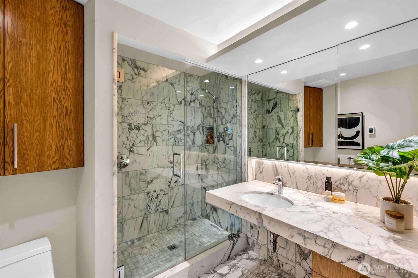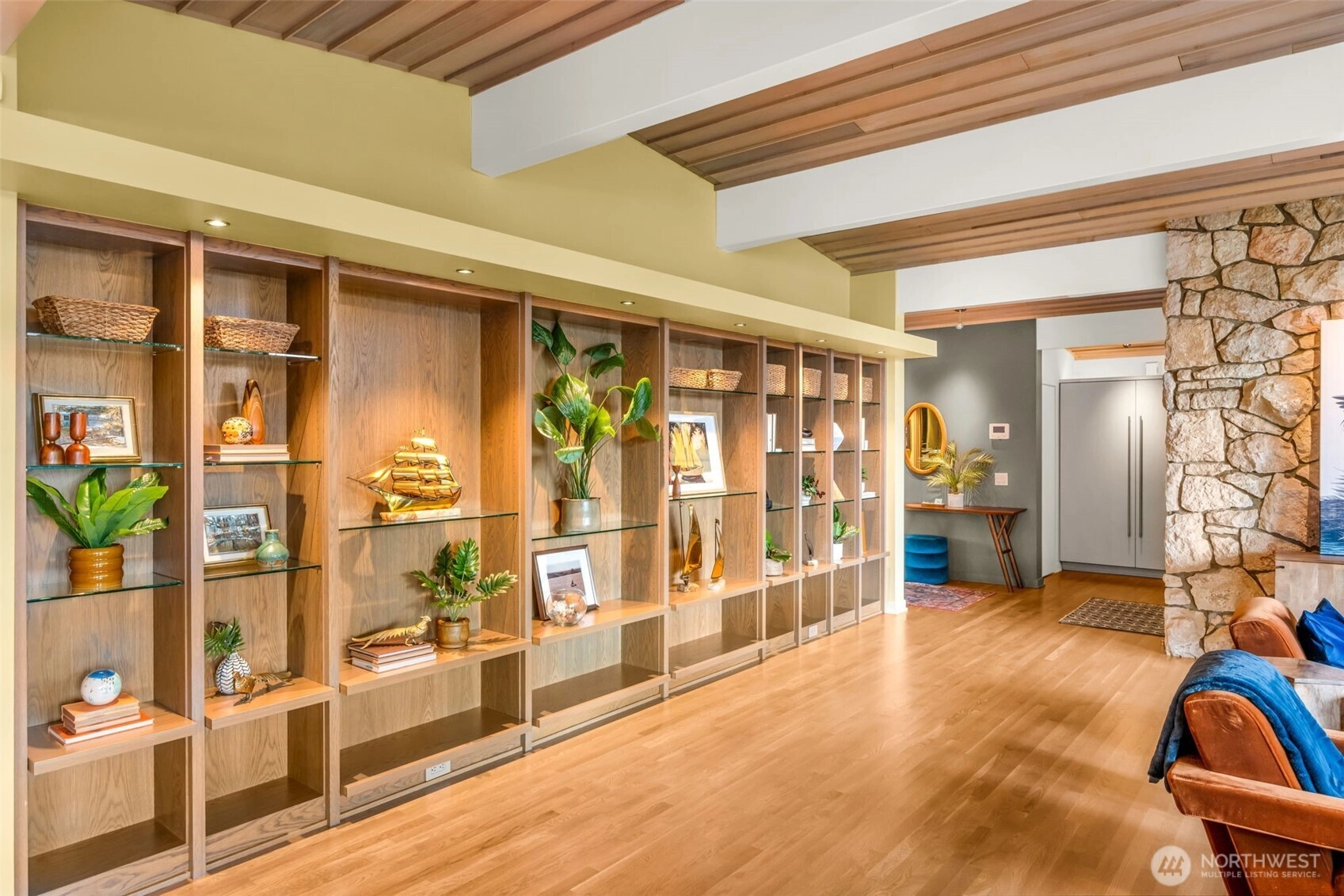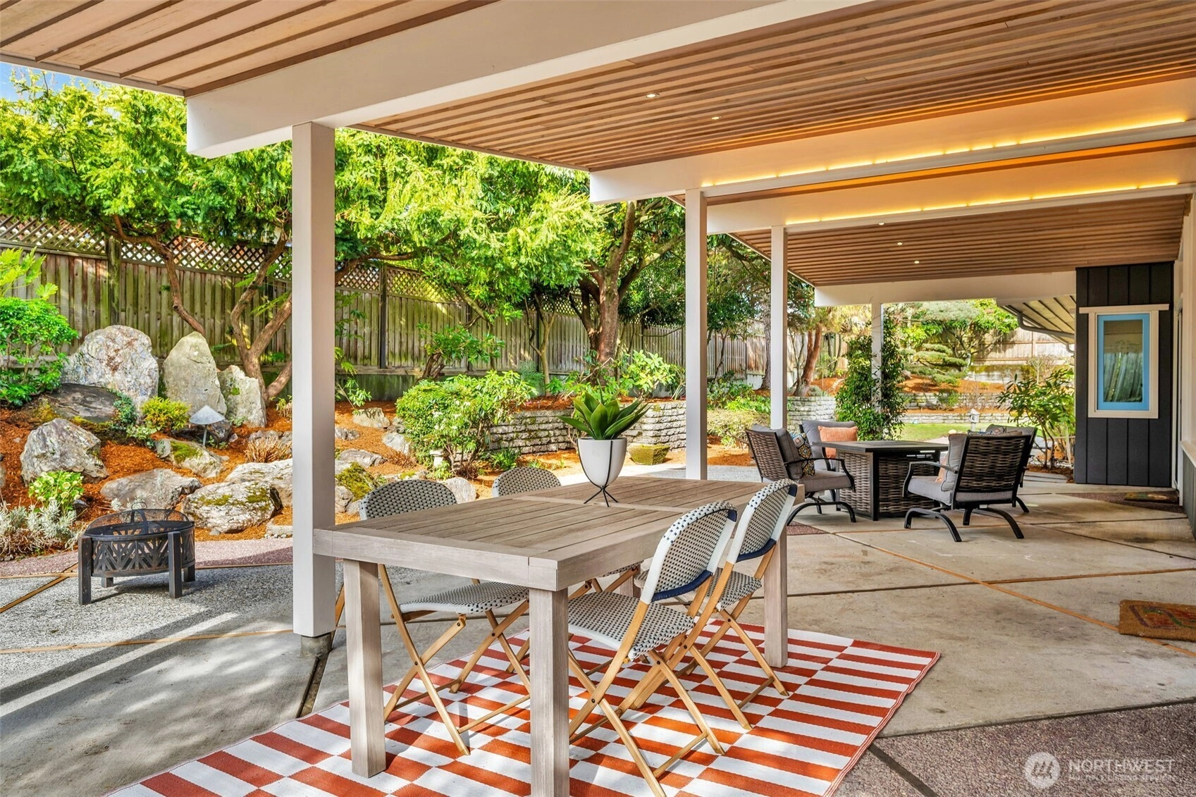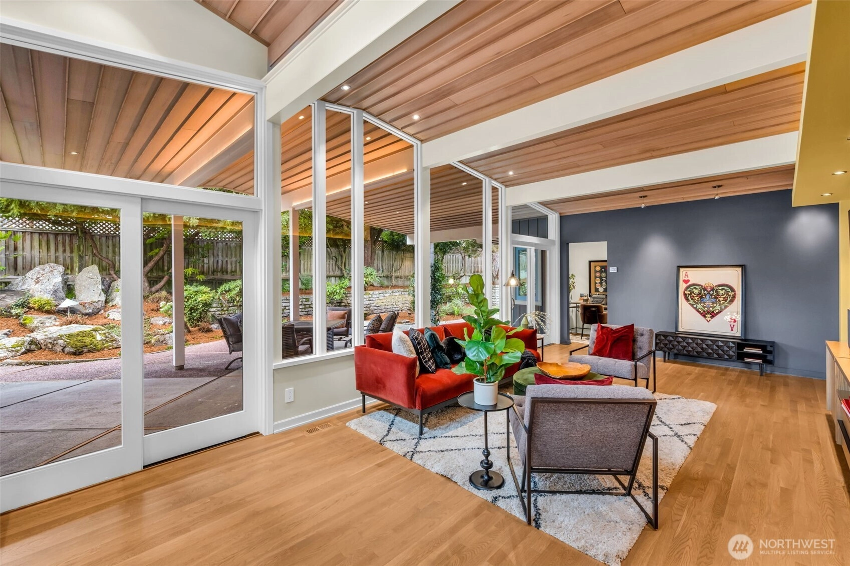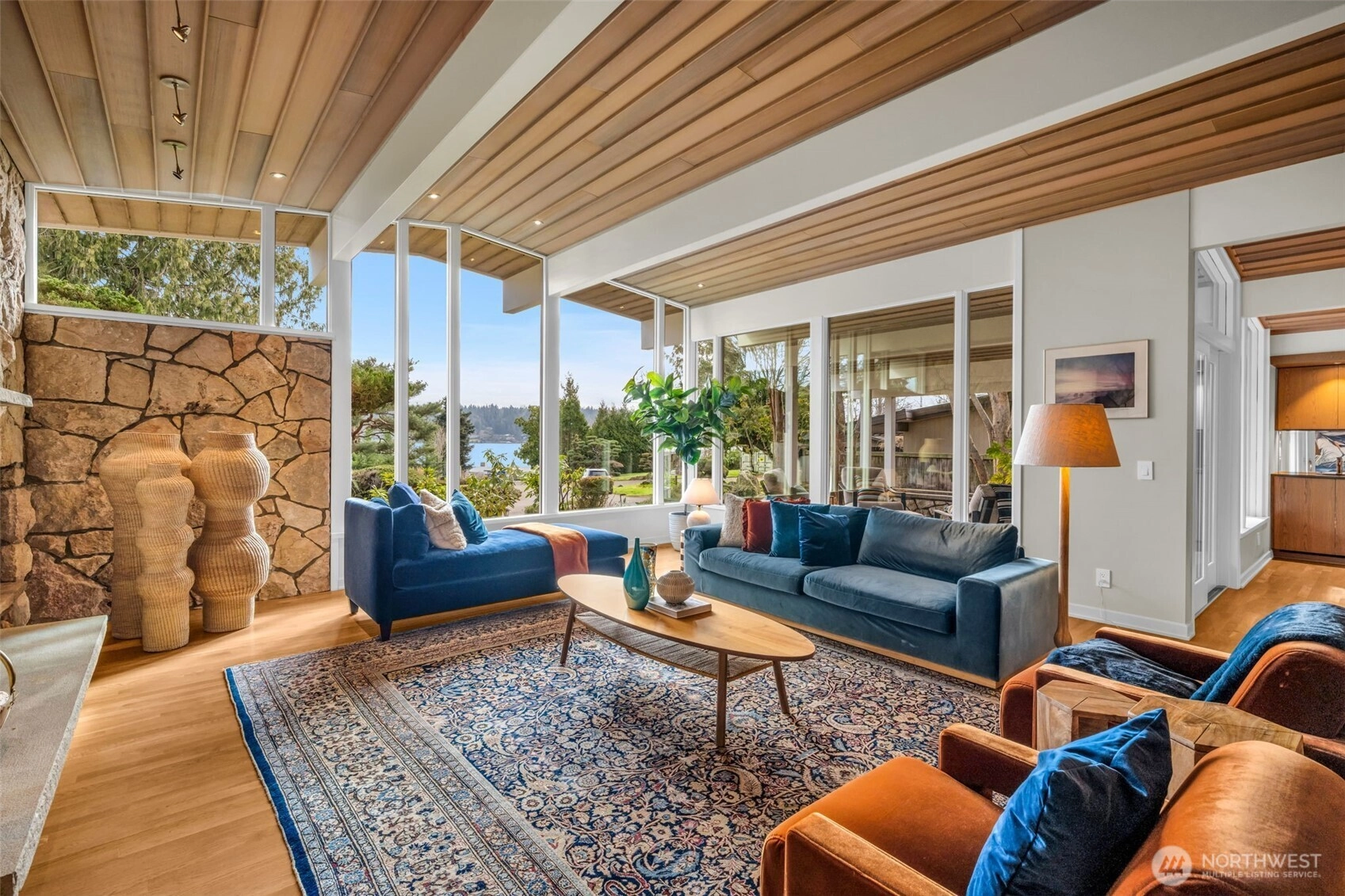 Rarely does a home of this caliber reach the market. Completely reimagined in 2019 with a full stud-out remodel, this quintessential Seward Park mid-century modern is a masterwork of light and craft. Designed by esteemed Seattle architect, I. Mervin Gorasht, experience a seamless indoor-outdoor "tent" feel with floor-to-ceiling windows, Lake Washington views, and hand-milled cedar ceilings from Bainbridge Island. The chef’s kitchen features a hidden prep pantry, dual appliances, and custom white oak cabinetry. Sprawling covered outdoor "rooms" allow for year-round entertaining, rain or shine. Situated on a quiet, social street just steps from Martha Washington Park and Seward Park. Every detail—from the rolled steel accents to the marble baths—reflects a commitment to quality and a peaceful, in-city retreat.