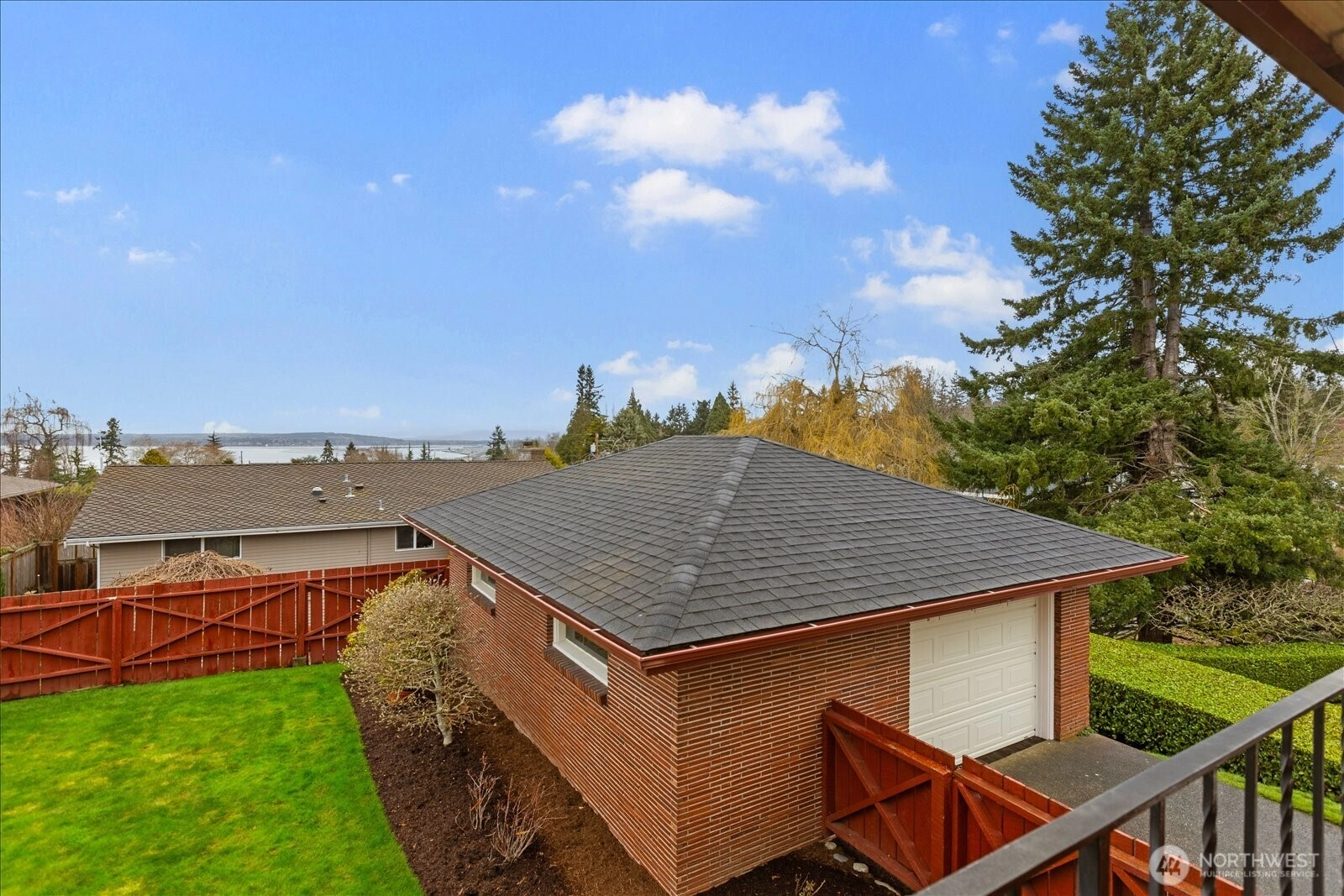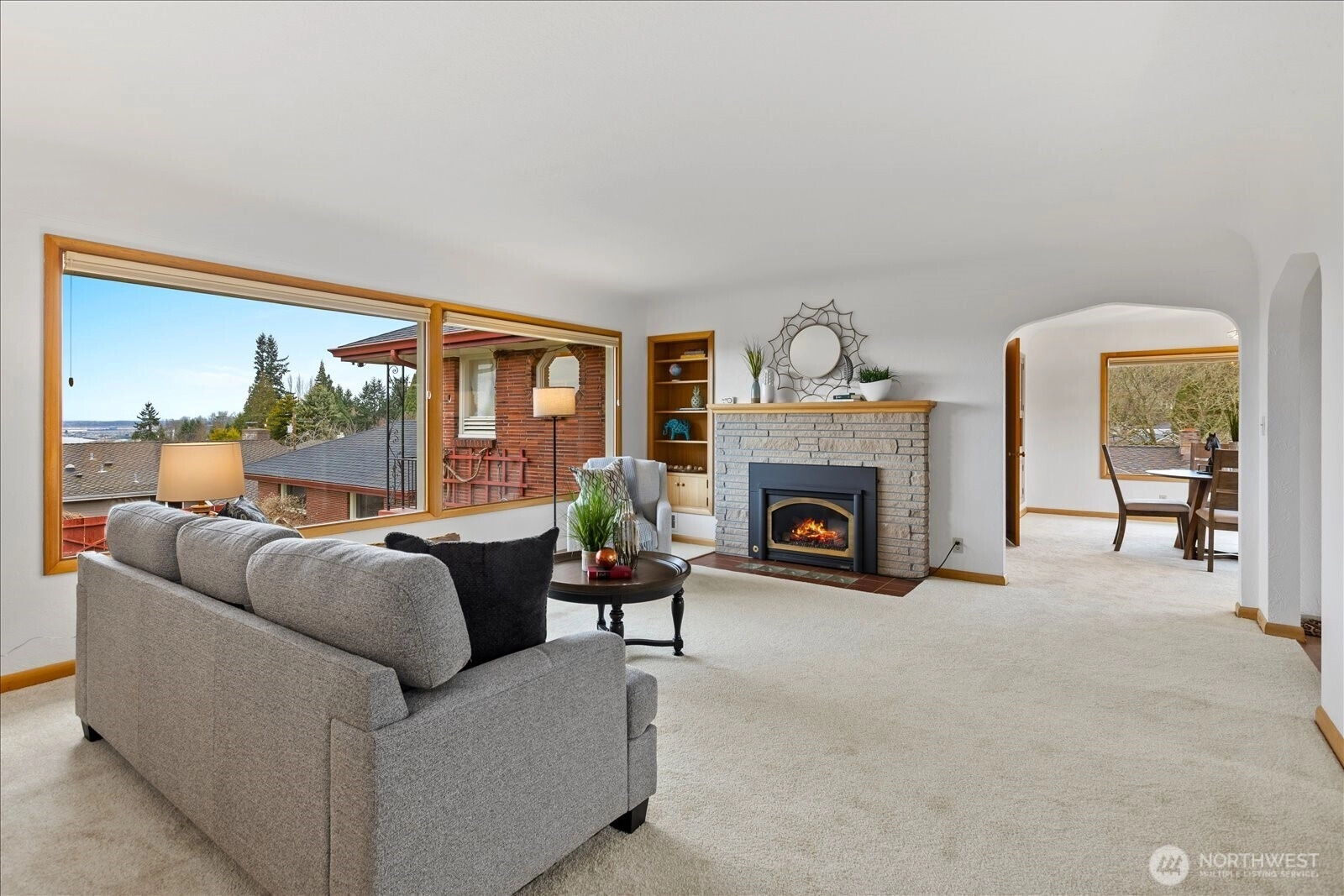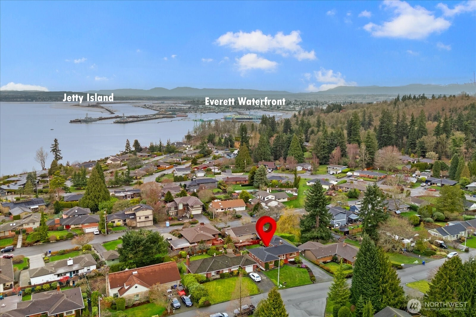 A panoramic view of Puget Sound takes center stage in this beautifully maintained home in the desirable View Ridge neighborhood in Everett—where sweeping water vistas create a breathtaking backdrop to everyday living and unforgettable sunsets become part of your daily routine. Classic comfort meets elevated living with 3 bedrooms + den and 3 bathrooms, offering a flexible layout that balances refined style with effortless functionality. Light-filled living spaces are designed to showcase the view, while two interior fireplaces add warmth and sophistication on both levels. The lower level provides ideal flex space for a private office, guest retreat, or bonus room. Enjoy seamless indoor-outdoor living with a gorgeous outdoor entertaining area featuring a statement fireplace—perfect for year-round gatherings or peaceful evenings overlooking the water. The detached garage with workshop space offers exceptional versatility for hobbies, projects, or additional storage. A rare opportunity to own sweeping Sound views paired with comfort, function, and elevated living—conveniently located near parks, schools, and amenities.