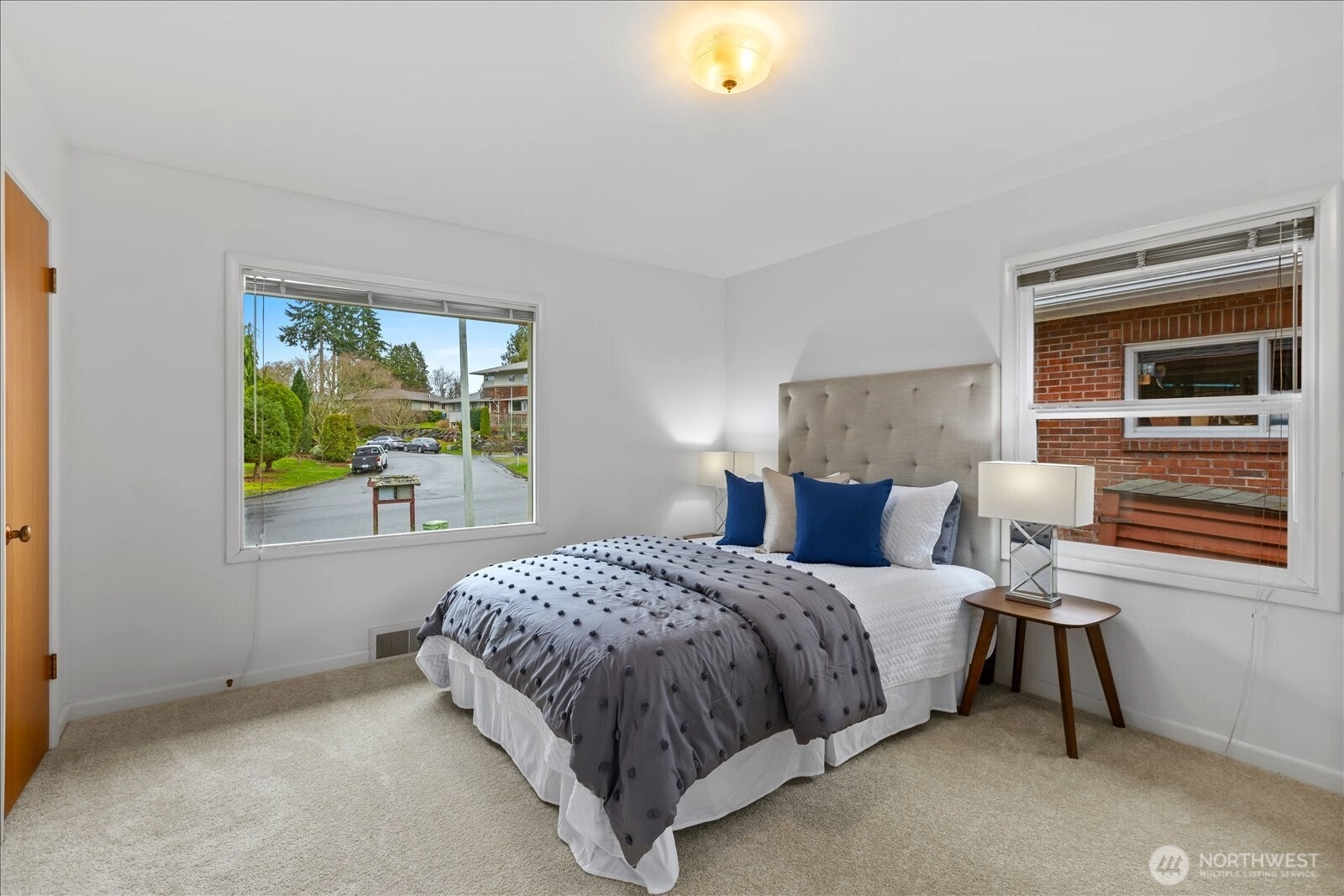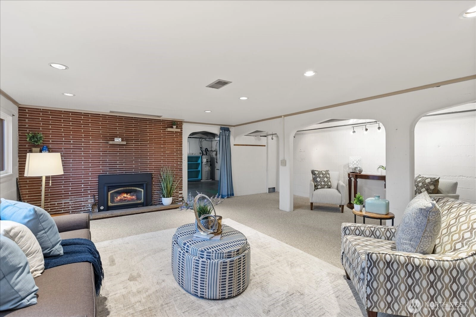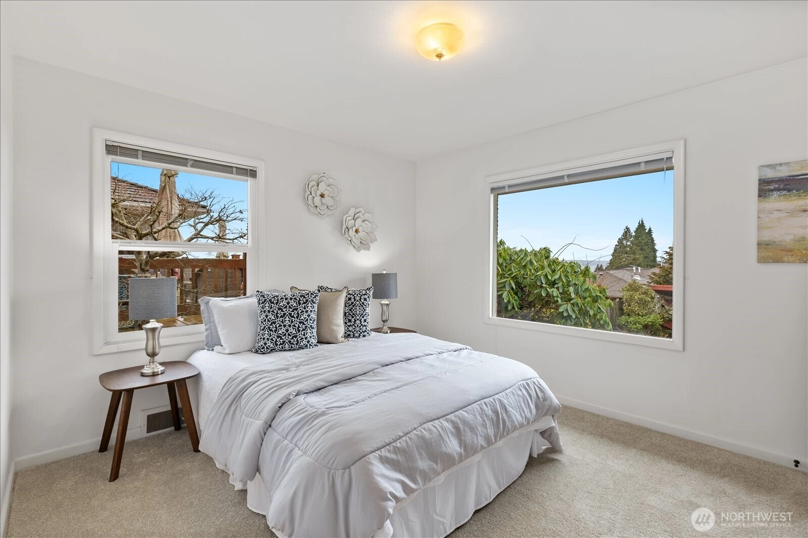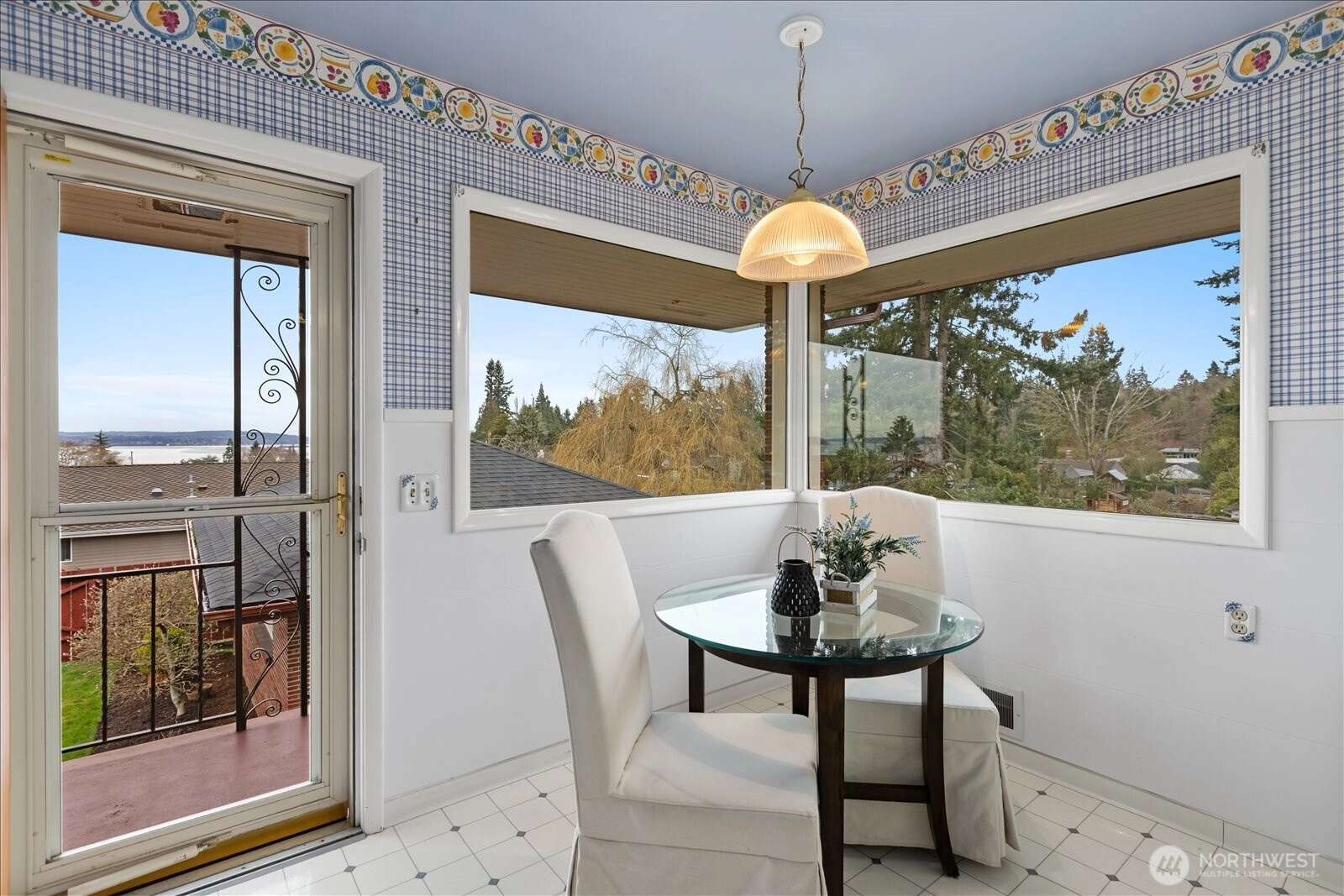 A panoramic view of Puget Sound takes center stage in this beautifully maintained home in the desirable View Ridge neighborhood in Everett—where sweeping water vistas create a breathtaking backdrop to everyday living and unforgettable sunsets become part of your daily routine. Classic comfort meets elevated living with 3 bedrooms + den and 3 bathrooms, offering a flexible layout that balances refined style with effortless functionality. Light-filled living spaces are designed to showcase the view, while two interior fireplaces add warmth and sophistication on both levels. The lower level provides ideal flex space for a private office, guest retreat, or bonus room. Enjoy seamless indoor-outdoor living with a gorgeous outdoor entertaining area featuring a statement fireplace—perfect for year-round gatherings or peaceful evenings overlooking the water. The detached garage with workshop space offers exceptional versatility for hobbies, projects, or additional storage. A rare opportunity to own sweeping Sound views paired with comfort, function, and elevated living—conveniently located near parks, schools, and amenities.