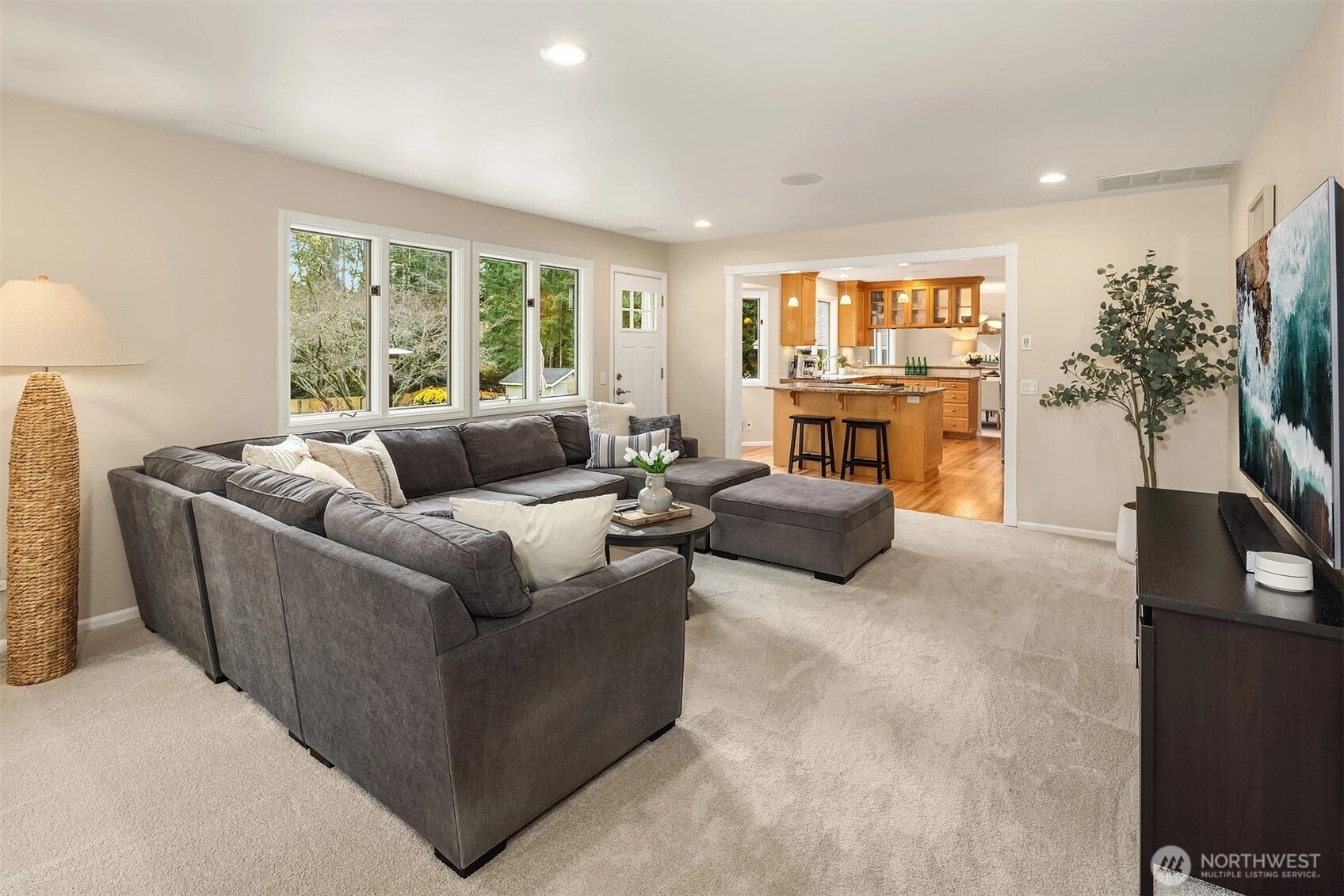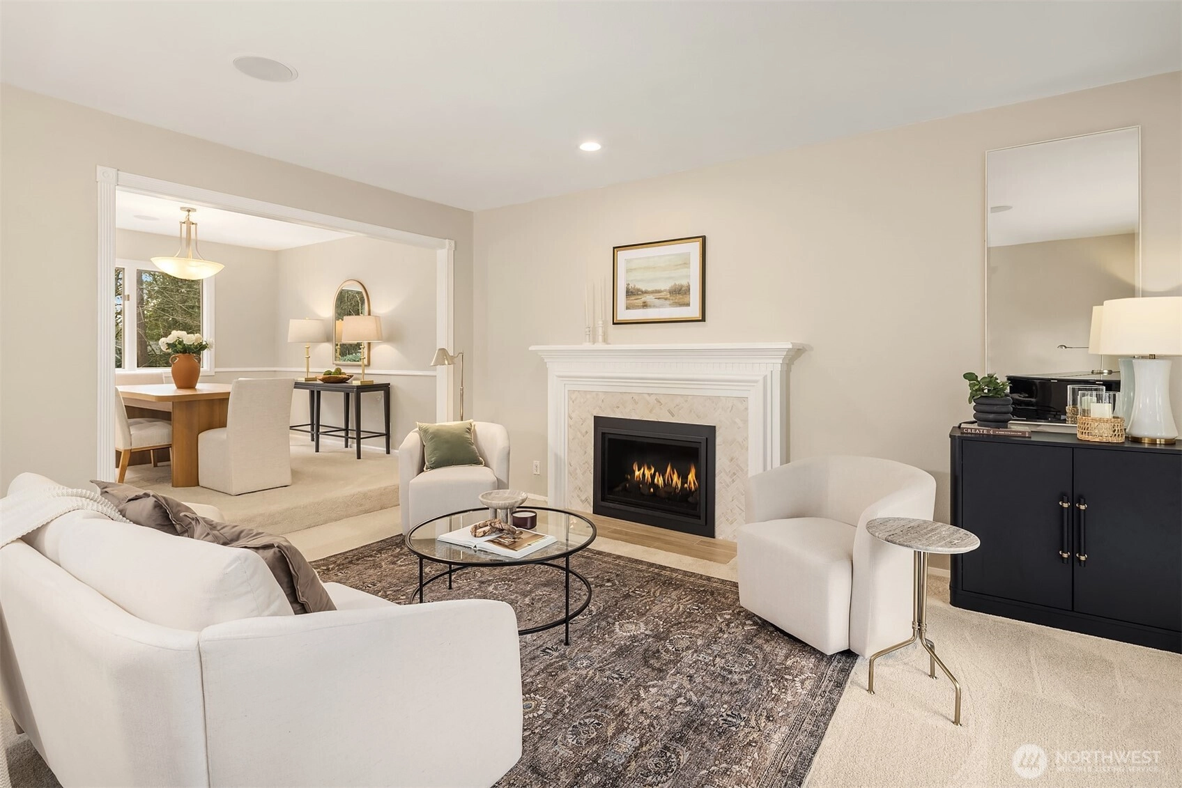 Refined Northwest living in a private, estate-like setting. Nestled within a serene Woodinville enclave surrounded by towering evergreens, this beautifully refreshed residence offers rare privacy and expansive, usable grounds. Set back from the street and approached by a sweeping driveway with manicured landscaping, the home feels tranquil yet connected.The spacious kitchen anchors the main level with generous counter space, abundant cabinetry and seamless flow to gathering areas and outdoor living spaces, ideal for entertaining. Fresh paint and new carpet provide a crisp, move-in-ready interior.Outdoor living shines with an expansive Trex deck, secluded hot tub, dedicated firepit lounge and a level lawn framed by mature evergreens for exceptional privacy. Upstairs, the primary suite features a fully renovated spa-inspired bath with quartz surfaces, dual vanities, soaking tub and oversized glass shower. Convenient to Woodinville, Redmond and Bellevue.