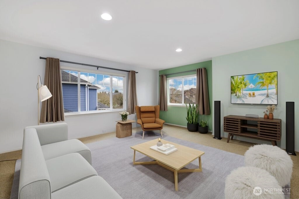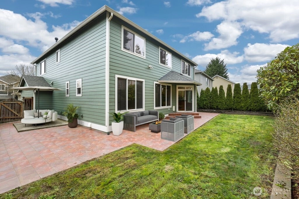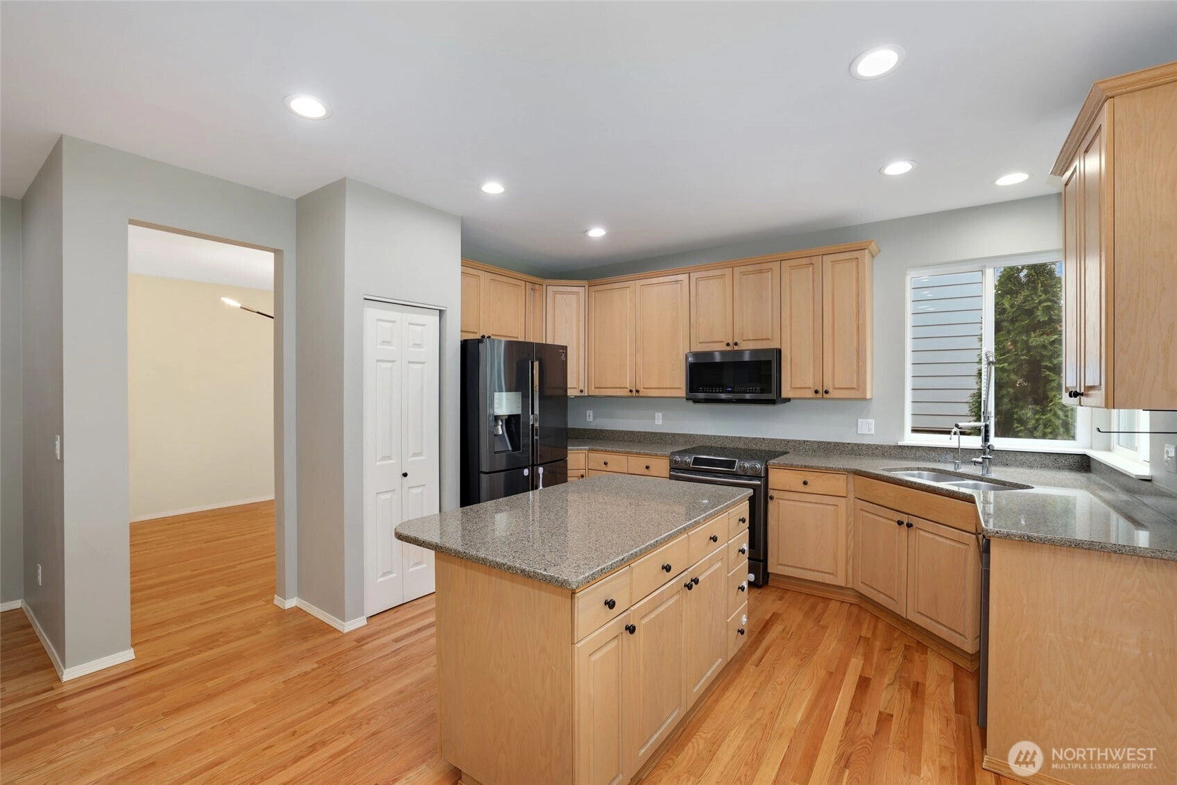 Beautifully designed home in Lakeland Hills with rich, warm oak hardwoods and 9 ft ceilings on the main level. The cozy sitting room offers a great flexible space while the dining room, with glass French doors, is perfect for hosting dinner parties. Chef's kitchen with plenty of storage, countertop space, black stainless appliances and a central island opens to a sunny breakfast nook. Family room with built-in shelving and cozy gas fireplace and the perfect hangout spot for movie nights. Step outside into a serene and private backyard with expansive tile patio, ideal for gardening and grilling. Functional layout includes a convenient main-floor bedroom, which would also make a great work-from-home space. Upstairs, you'll find three spacious bedrooms and a large bonus room that can easily function as an additional bedroom. Expansive primary suite complete with quartz countertops, luxurious soaker tub and walk-in closet. With a freshly painted exterior and thoughtful layout, this home is move-in ready! Great location, just a stroll away from the elementary school, multiple neighborhood parks, Town Center and effortless access to SR-167, SR-18, I-5 and Sounder commuter rail. Mortgage savings may be available for buyers of this listing.