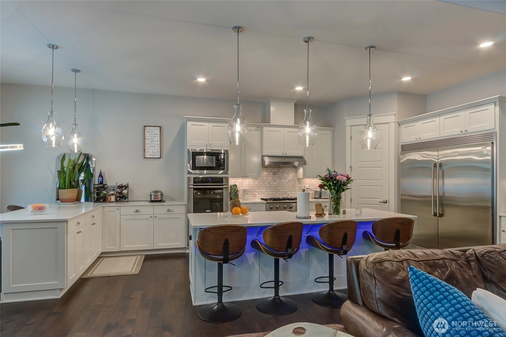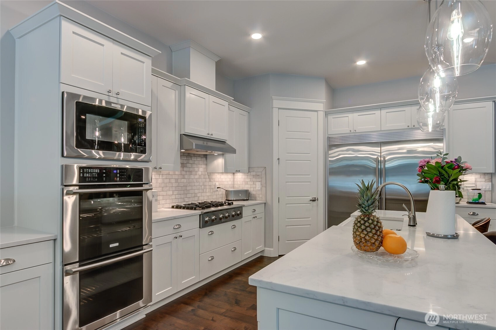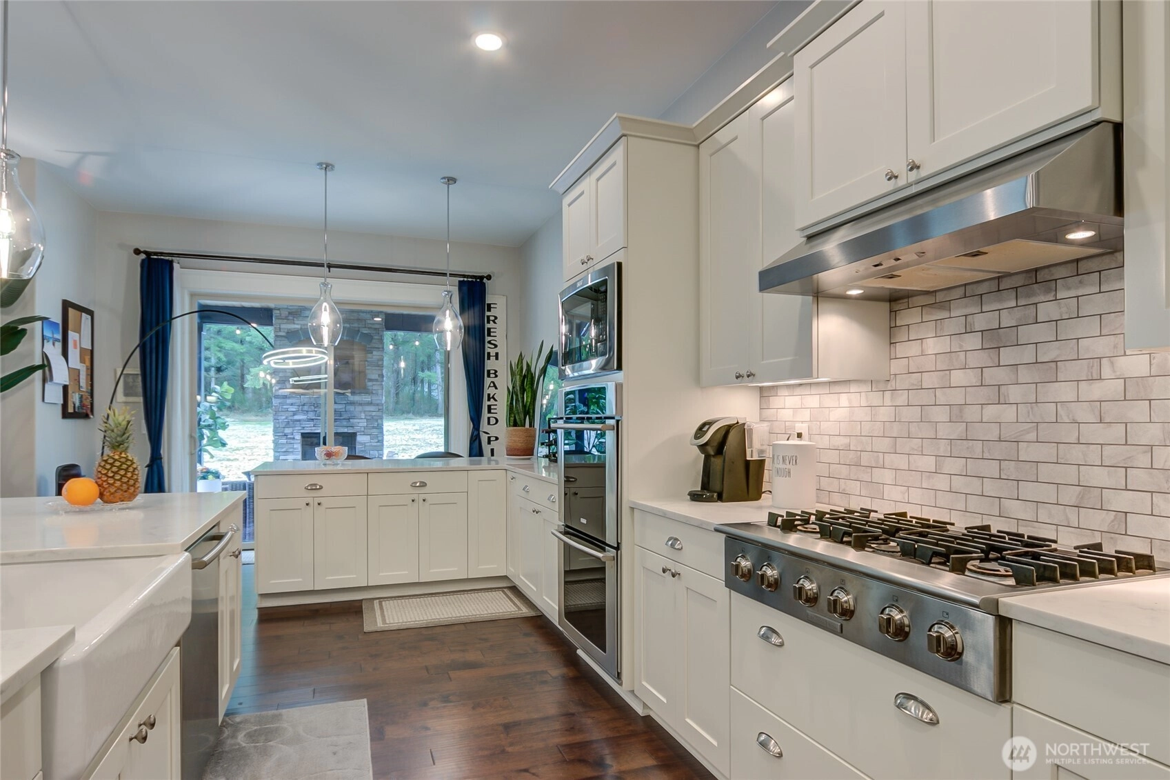 Discover serenity in this new, 4-bedroom + office, 4,030 sq ft custom home by luxury builder on 2.5 private acres in the gated Estates at Sugarloaf Mountain. Pride of ownership shines in every detail of this beautiful residence complete with 10’ ceilings, thoughtfully designed for effortless gathering and entertaining. The chef’s kitchen boasts crisp white cabinetry, beautiful slab counters, premium stainless appliances, and generous island + peninsula seating—ideal for prep, serve & dining for the crowd that always seems to form there. Open living area with gas fireplace flows seamlessly to a covered outdoor oasis featuring stone gas fireplace and lounge area, perfect for unwinding end of day or dining outside. The main-floor master suite offers outdoor access, an enormous walk-in closet, and spa-like bath. The guest wing includes 2 peaceful bedrooms and full bath. Upstairs: an additional bedroom with huge walk-in closet and full bath, plus versatile loft, ideal as playroom, home theater, craft studio, or game room. Includes: whole-home backup generator, spacious 3-car garage, parallel water heaters for 100 gallons of hot showers. A gas furnace and efficient heat pump/AC. Home is well-maintained and pre-inspected. This serene setting has enough room for spontaneous croquet or touch football. Convenient to Crystal & Snoqualmie Pass, Hwy 18/169 commutes, and Maple Valley’s 4 Corners conveniences, this is more than a home—it’s a legacy of refined, inspired living.