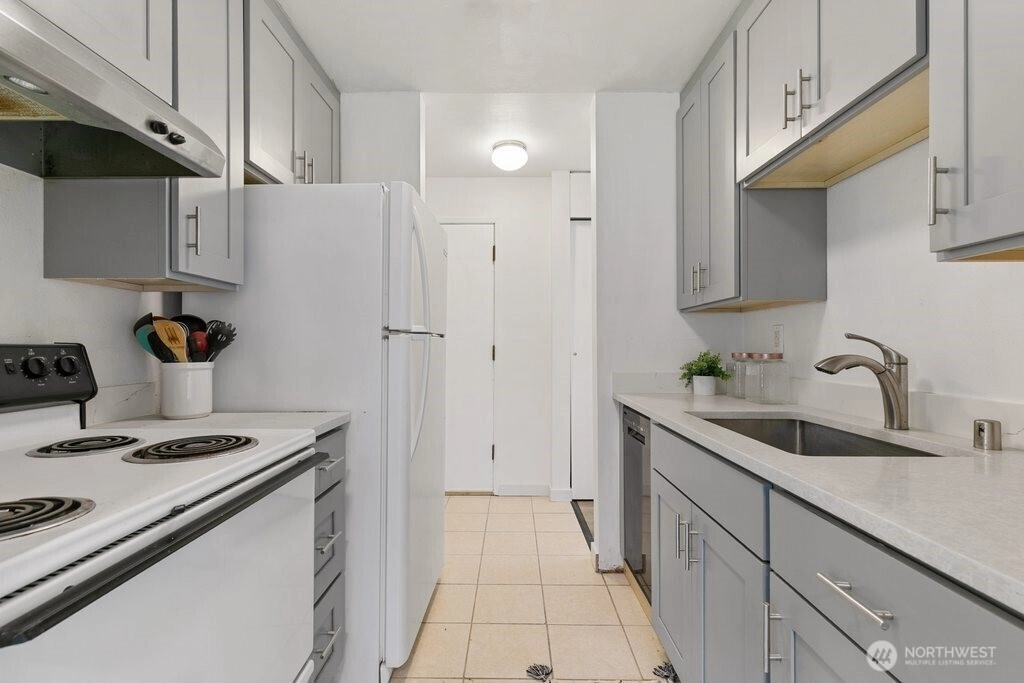 Fully remodeled, this private ground-floor home at Canyon Estates is move-in ready with fresh paint and new LVP flooring. The flexible layout includes a spacious living area, full dining space, and ample storage. The updated kitchen boasts shaker cabinets and quartz counters. Large bedroom with generous closet adjoins a renovated full bath. Washer/dryer hook-up in hall or use nearby laundry. Private patio overlooks grassy commons with single-level access. HOA covers W/S/G & earthquake insurance; exterior and plumbing updates done. Parking, clubhouse, pets (2, 25 lbs), rental cap met. Minutes to Seattle–Tacoma International Airport and commuter routes.