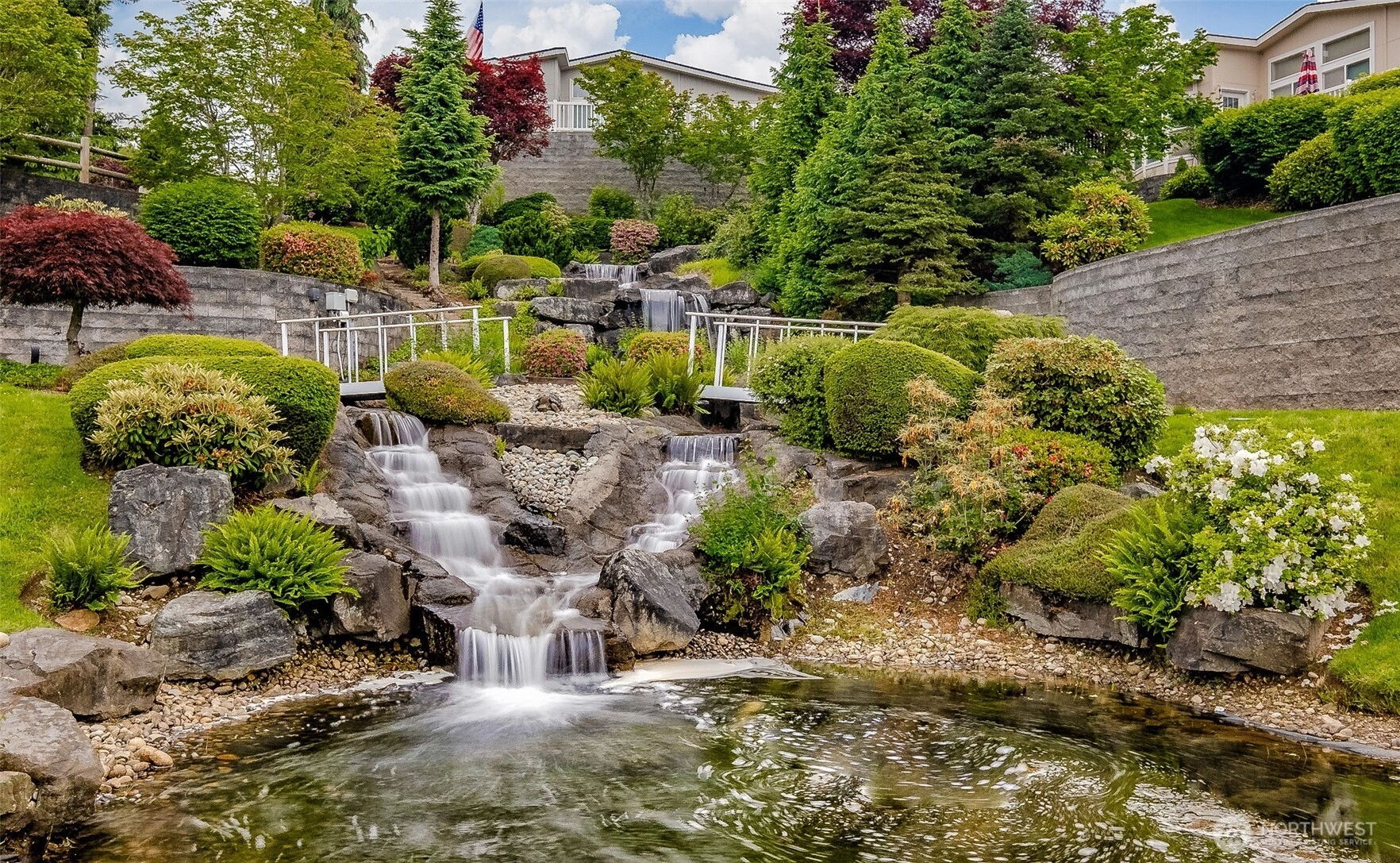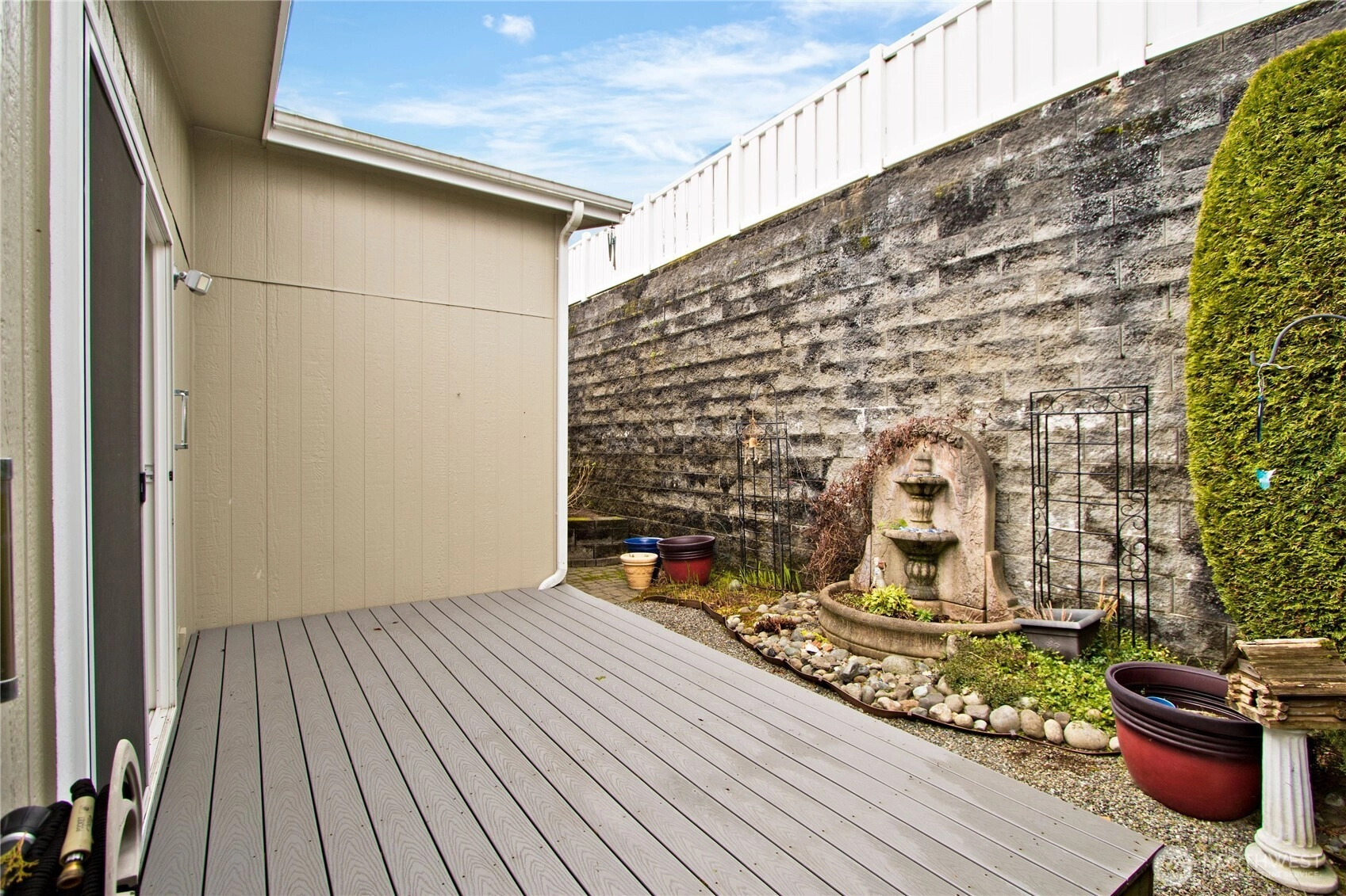 Welcome to Water Gardens, a beautifully maintained 55+ gated community. This light-filled 1,700 sq ft rambler offers 2 bedrooms + den, vaulted ceilings, and skylights that flood the home with natural light. The spacious living room features a cozy gas fireplace, while the beautifully updated kitchen includes an eat-in space, granite countertops, stainless steel appliances and a walk-in pantry - perfect for gatherings. 2023 updates include whole-house repiping, a new water heater, a water filtration system, and a hot water recycling system. Enjoy a private backyard patio, A/C to keep you cool in the summer, a separate laundry room, and a generous primary suite with a 5-piece bath and double closets. Enjoy the community’s ponds, waterfalls, walking trails, and vibrant clubhouse with activities and events. Move-in ready and one story living at its best.