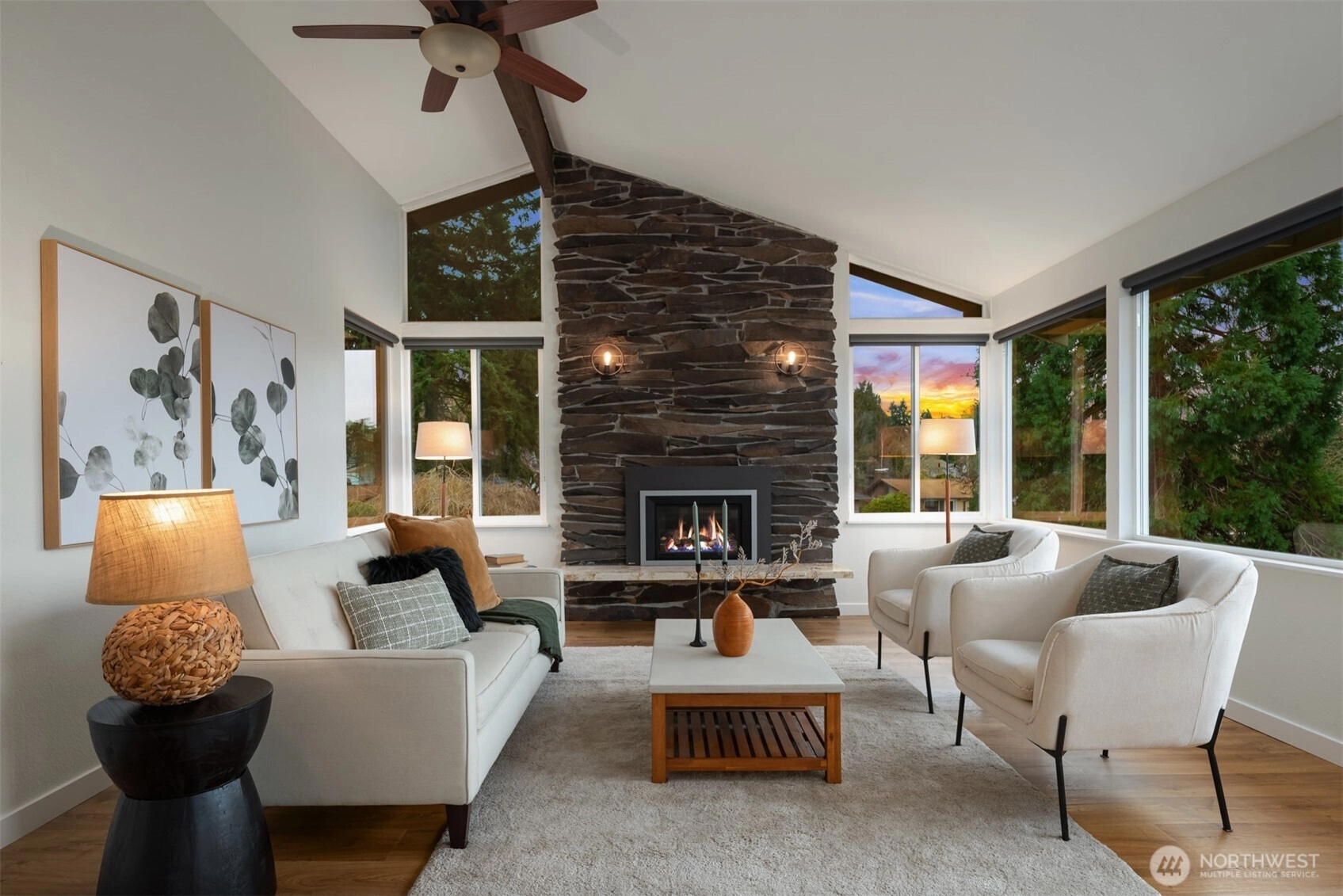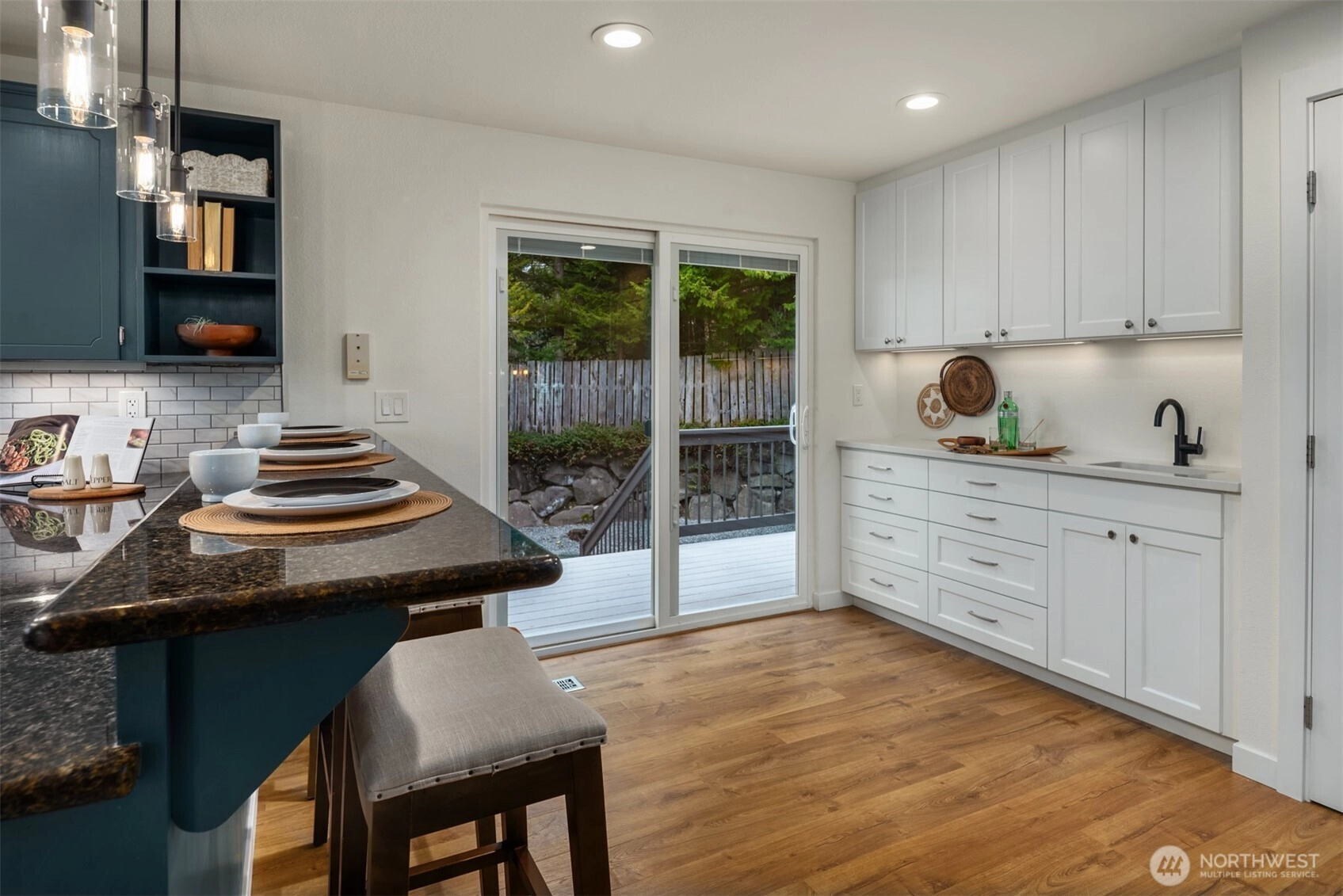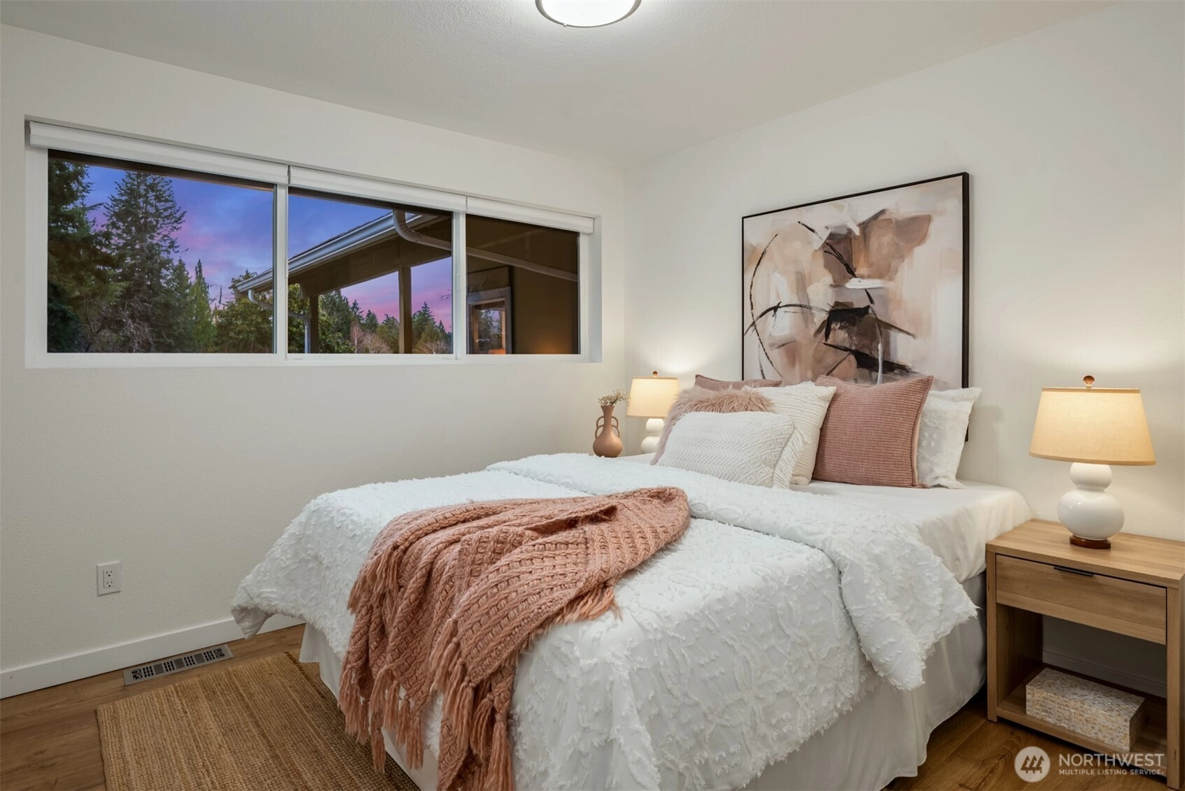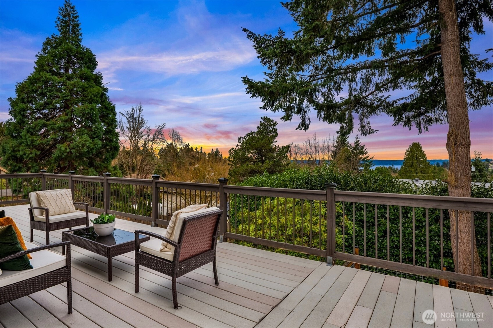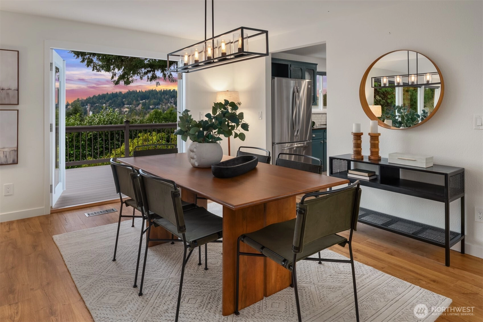 Set on a sunny 15,000 SF lot in Normandy Park, this inviting home offers westerly views of the Olympic Mountains & Puget Sound. The open living room features generous vaulted ceilings, a gas fireplace, & south- & west-facing windows that brighten even the dreariest PNW days. The updated kitchen offers ample storage, granite counters, & stainless appliances. The open dining area enjoys sunset views & French doors to the deck. The main-floor primary bedroom includes a walk-in closet plus a second full closet, along with an expanded en suite bath featuring double sinks & a curbless shower. Two additional bedrooms & a full bath round out the spacious main floor. The lower level offers exceptional flexibility with a remodeled second kitchen, bedroom, full bath, dining area, & family room—all with its own exterior access, an ideal setup for long-term guests or multigenerational (MIL) living. Laundry is conveniently located on the main floor with a second laundry downstairs. Outside, enjoy a roomy deck built for sunsets & summer dinners, plus a large fenced yard made for play, gardening, or dogs on the run. Updates include Hardi siding, newer windows, new water line, updated flooring & baths, interior paint, a heat pump with A/C, & EV charging, plus ample parking with a two-car garage & large gravel pad with lower-level access. A special home in a special pocket of Normandy Park, with Nist Park just kiddie-corner. Pre-inspected.
