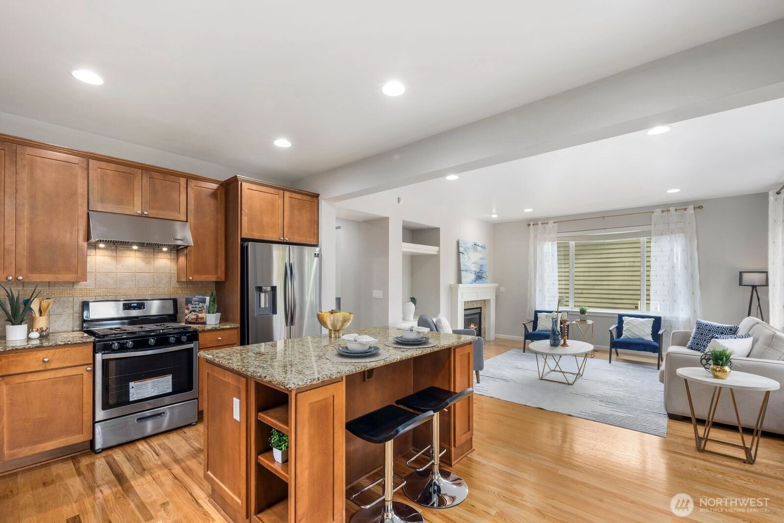 Nestled in the highly desirable Shamrock Heights by CAMWEST, this exceptional home offers refined living along the sought-after Coal Creek corridor. Surrounded by beautiful greenbelts and a community park, this 4-Star Certified Built Green residence combines sustainability with timeless design.Distinct architecture and soaring vaulted ceilings create a bright, open atmosphere. The thoughtfully designed floor plan features 4 spacious bedrooms plus a versatile loft—perfect for a home office, media space, or additional lounge. Rich oak hardwood floors flow throughout the main living areas, enhanced by abundant natural light.The gourmet kitchen is designed for both everyday comfort and effortless entertaining, showcasing a large granite island, granite countertops, full-height tile backsplash, stainless steel appliances, and gas cooking.Step outside to a huge, private backyard offering a peaceful retreat surrounded by nature—ideal for gatherings, gardening, or quiet evenings under the sky. Beautiful, private, and ideally located, this home delivers comfort, style, and an exceptional lifestyle opportunity in one of Renton’s most desirable communities.
