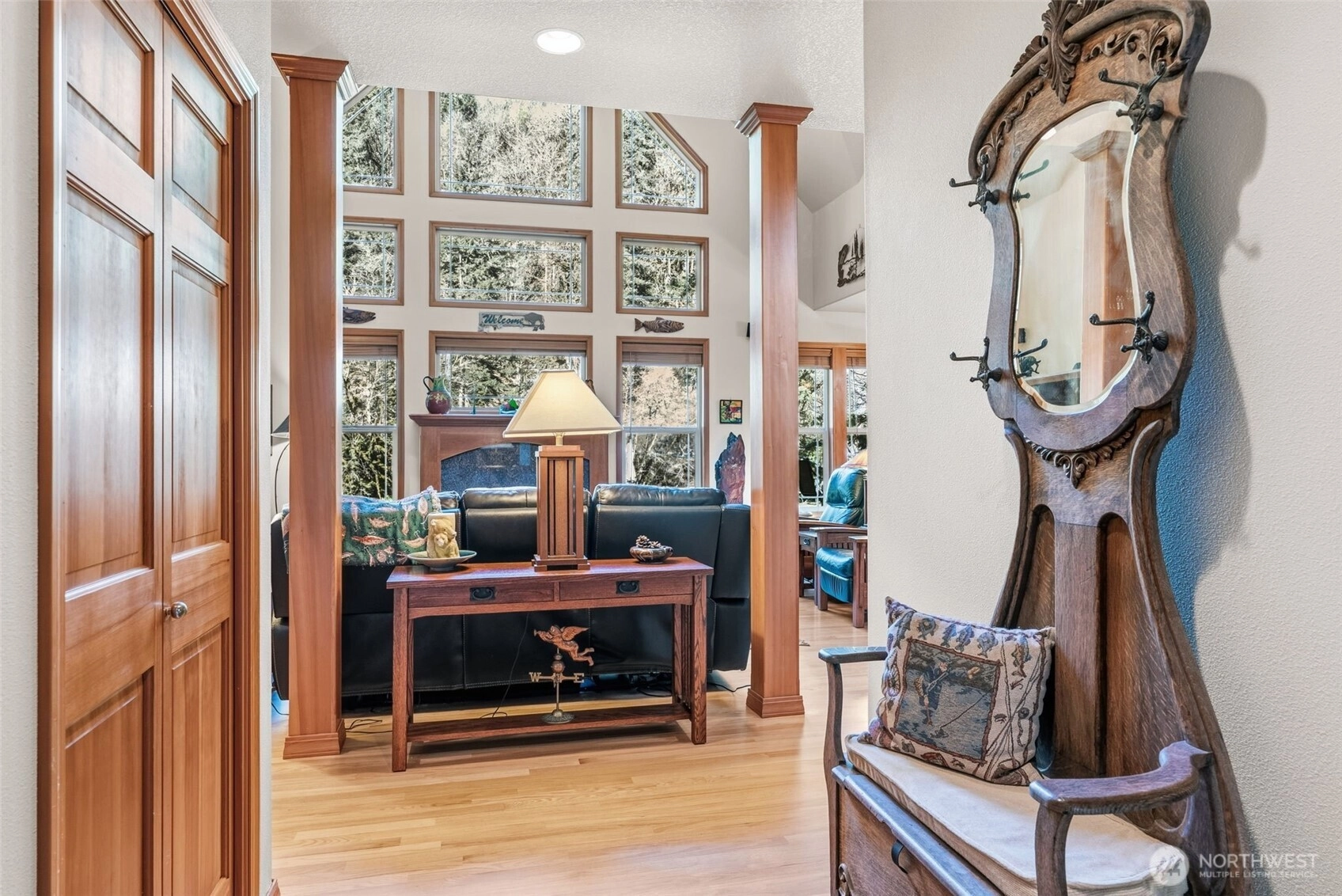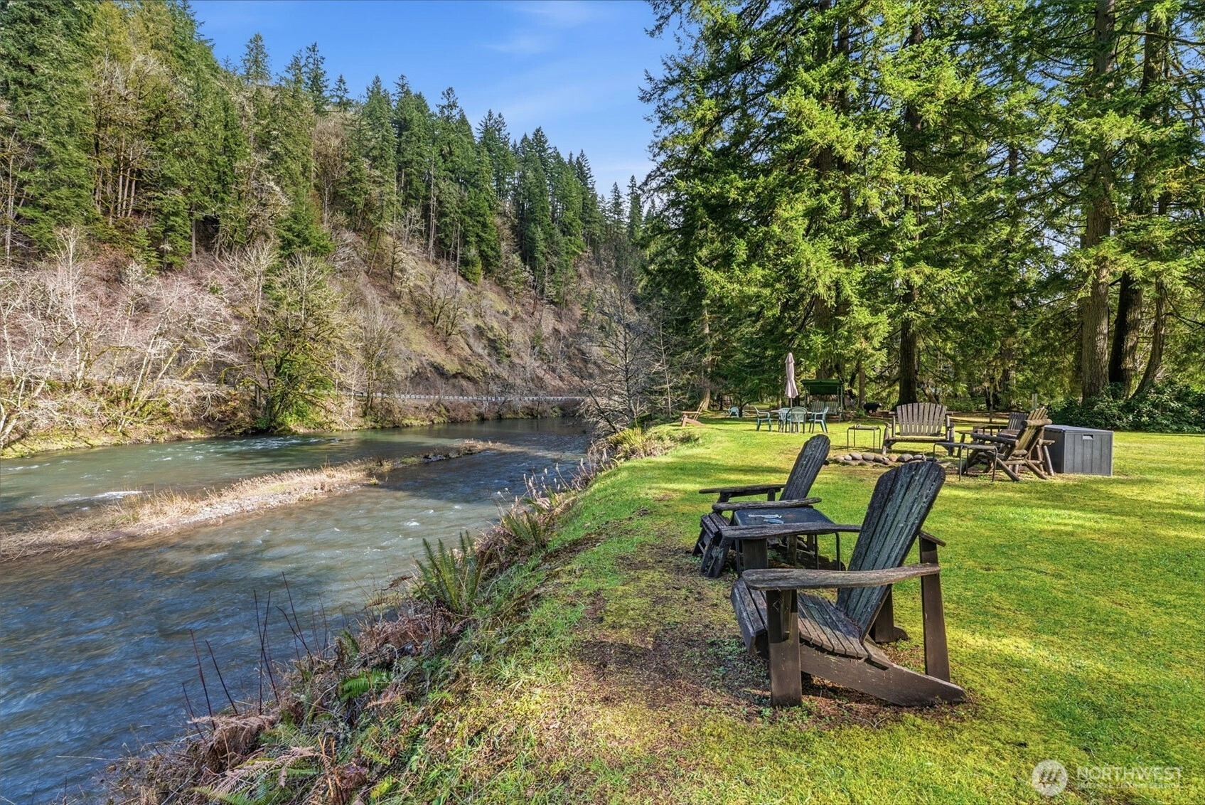 First time on the market! This one-owner, custom-built 2001 riverfront home offers nearly 3,300 sq ft of thoughtfully designed living on 5.17 acres with 375 feet of Kalama River frontage. Impeccably maintained, the home features 3 bedrooms, 2.75 baths, a wall of windows overlooking the river, abundant natural light, and a cozy gas fireplace. Enjoy hardwood floors (refinished 2 years ago), granite countertops, walk-in pantry, and all appliances included. The stunning primary suite boasts river views, deck access, jetted tub, dual-head shower, and dual closets. Relax upstairs or down, or create your dream space in the large studio/flex room. Exterior updates include fresh paint, Hardi-plank siding, and Trex decking. Additional highlights: 3-car garage with large sink, covered RV parking with hookups, and option to purchase mostly furnished. One of the best fishing spots on the Kalama River is just steps from your back deck—your peaceful riverfront retreat awaits.