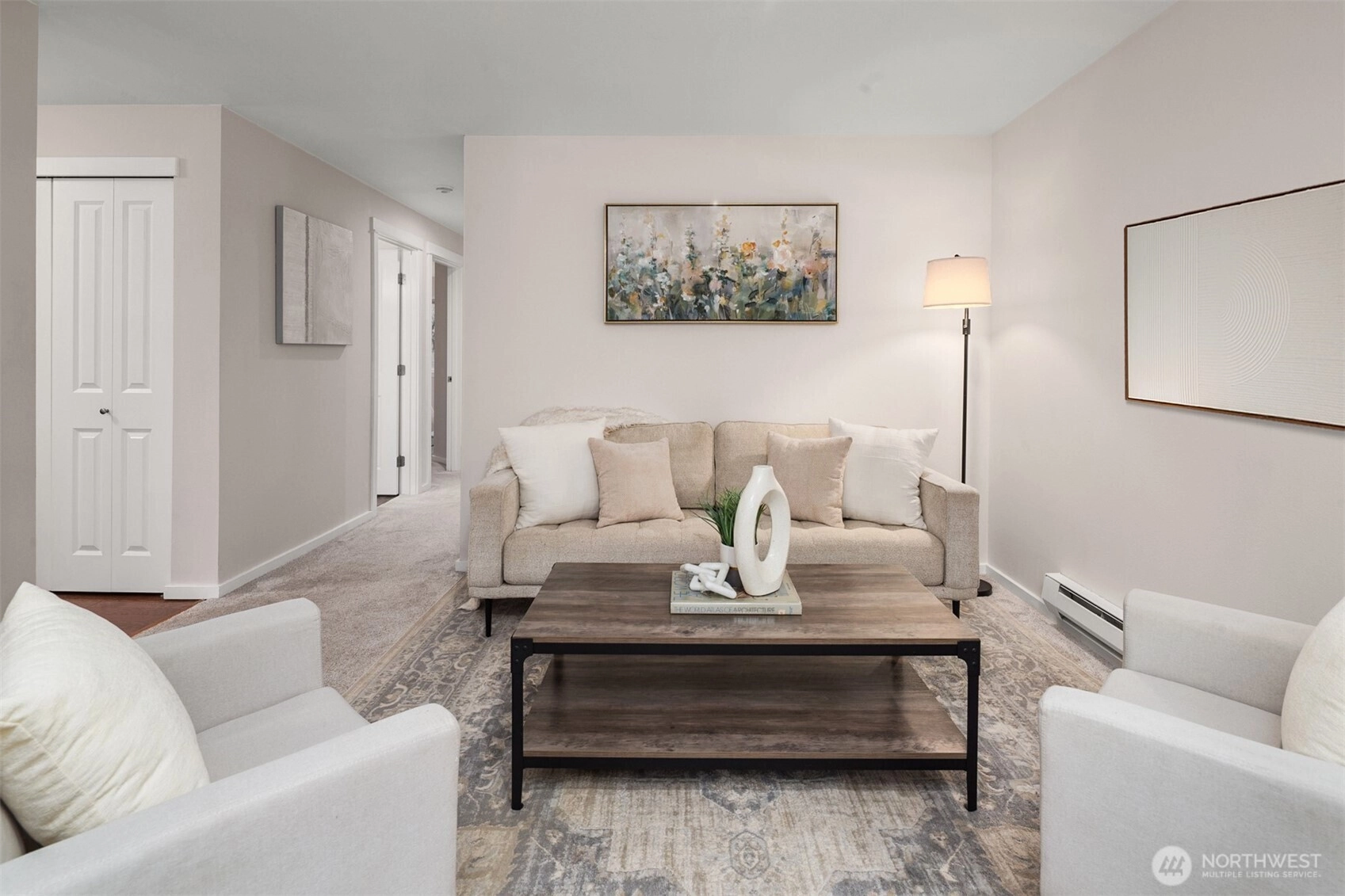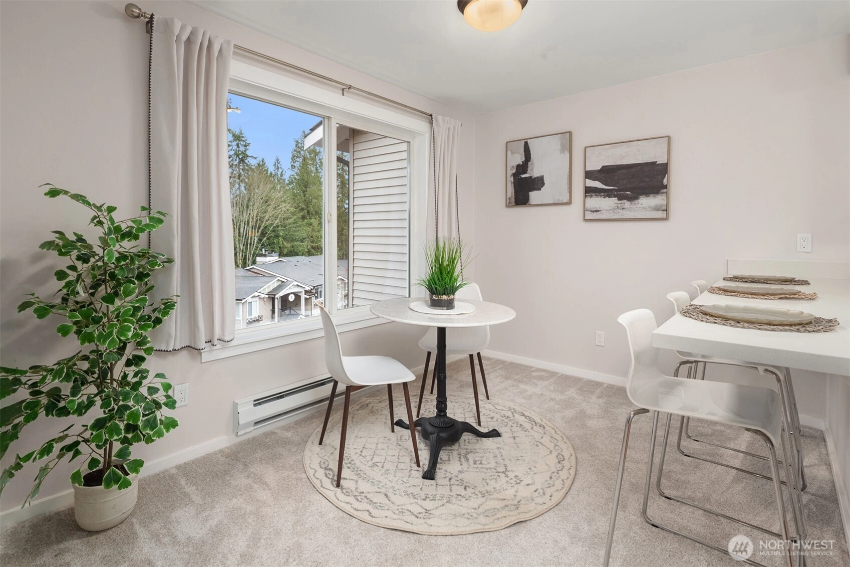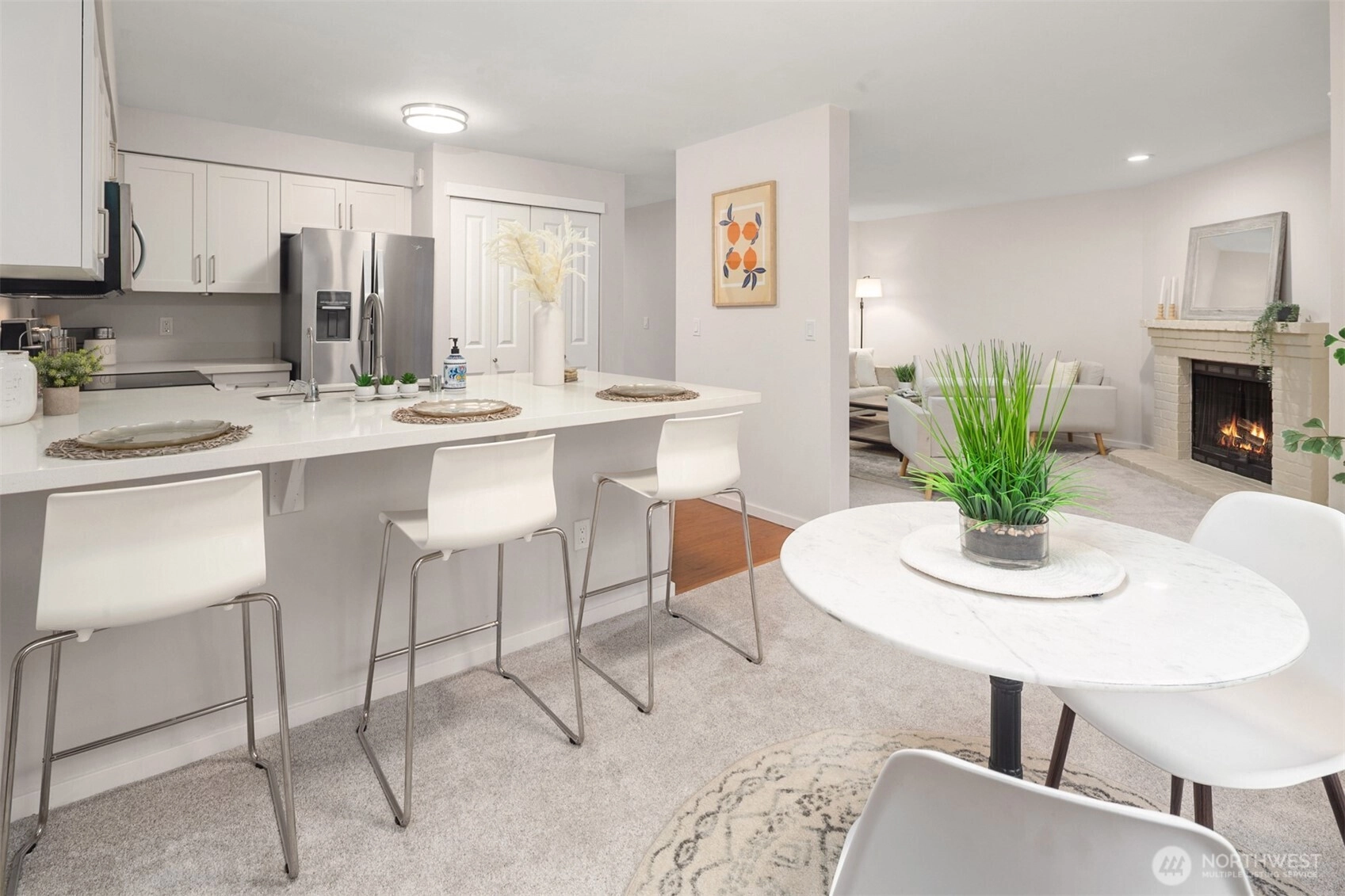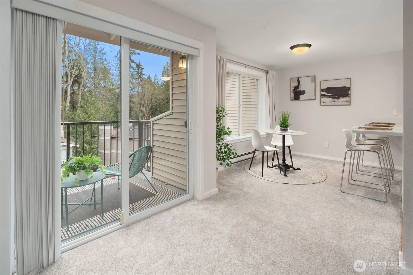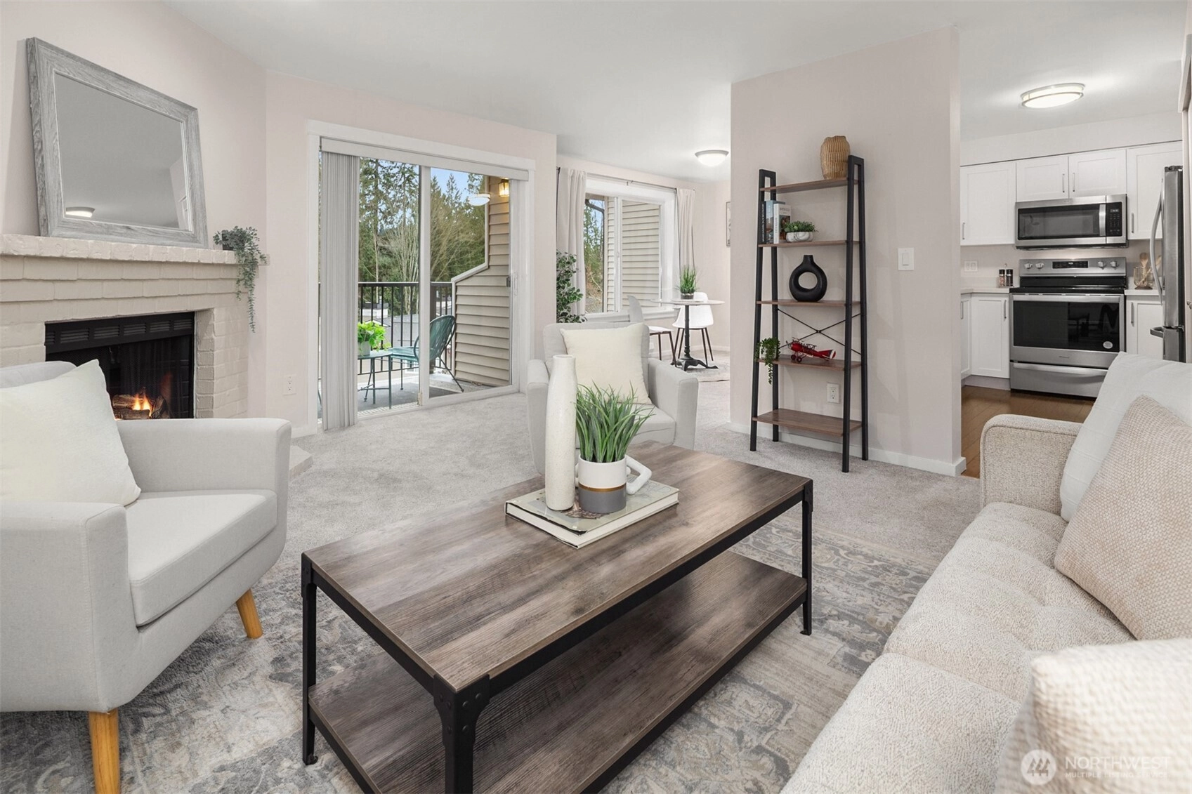 Updated top floor condo at Tanager offering style, comfort, and convenience! This beautifully refreshed home features new flooring, updated kitchen cabinets, updated bathroom, new carpet, and fresh interior paint throughout. The stunning kitchen showcases sleek quartz countertops with bar seating, stainless steel appliances, and a new stove - perfect for everyday living and entertaining. The spacious living and dining areas are filled with natural light and open to a private deck with peaceful territorial views, creating the perfect place to relax. Generous primary bedroom plus a well sized second bedroom provide flexible living options for guests or a home office. Full size washer and dryer and portable A/C unit included for added convenience. Includes two parking spaces. Ideally located with easy access to I-405 and just minutes to Park & Ride, Evergreen Hospital, and The Village at Totem Lake offering shopping, dining, and Whole Foods. Enjoy the quiet, well maintained community with pool, clubhouse, fitness center, and hot tub. Pet friendly with no rental cap! Excellent opportunity for homeowners and investors alike!