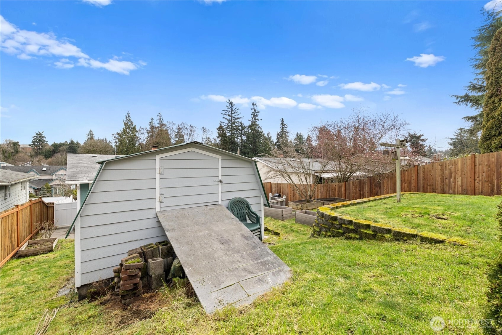 Charming, move-in ready home with 4 bedrooms, 1.75 baths on a 6,594SF lot with a heated workshop in the sunny backyard. Upstairs you will find hardwood flooring, spacious living room with wood burning stove and recessed lighting, dining room and beautifully remodeled kitchen with granite counters, stainless steel appliances and recessed lighting, 2 bedrooms and a full bath with jetted tub. Some updates include designer light fixtures adding an elegant, industrial feel, NEST thermostat, new carpet on the stairs (the only carpeting in the home). French doors open to your impressive deck ready for entertaining (don’t miss the pictures!) Downstairs you find two additional bedrooms, a ¾ bathroom, laundry, and that perfect large family room with another wood burning stove & outside access to your 2-car carport! The downstairs has MIL/ADU potential written all over it with its own entrance. The large front yard and fully-fenced back yard is a gardener’s retreat - ready for your veggie and flower gardens with tiered planting making sun exposure a dream. The 10’ x 20’ heated shop has its own electrical panel, Stanley work bench (stays) and loft for storage – imagine the possibilities! Quick access to freeways, the airport, and shopping puts everything within easy reach—perfect for anyone on the go, with a location that’s especially convenient for commuters.