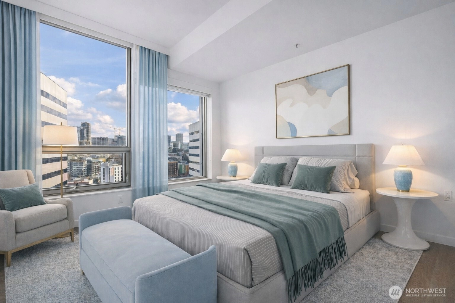 Embrace luxurious, elevated downtown Seattle living at Nexus, a modern high-rise in the heart of it all. Bathed in natural light and featuring breathtaking city views, this 1br home features a walk-in closet and a versatile den, perfect for a home office, study space, or creative retreat. Experience a 24hr concierge lifestyle with resort-level amenities including an expansive rooftop deck, chef’s kitchen and sky bar, pet lounge, coworking spaces, fully equipped fitness center, and yoga studio. Dedicated storage and a generously sized parking space in a secure access garage offer convenience and flexibility. And with a Walk Score of 98 and a Transit Score of 100, you’re steps from SLU, major tech campuses, dining, nightlife, and freeway access, offering all the privileges of a vibrant city life. With no rental cap, Nexus offers excellent options for homeowners and investors alike. Pre-inspected and move-in ready!