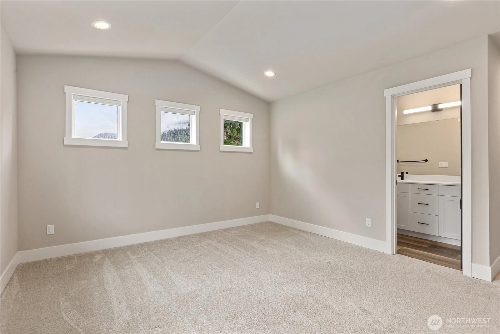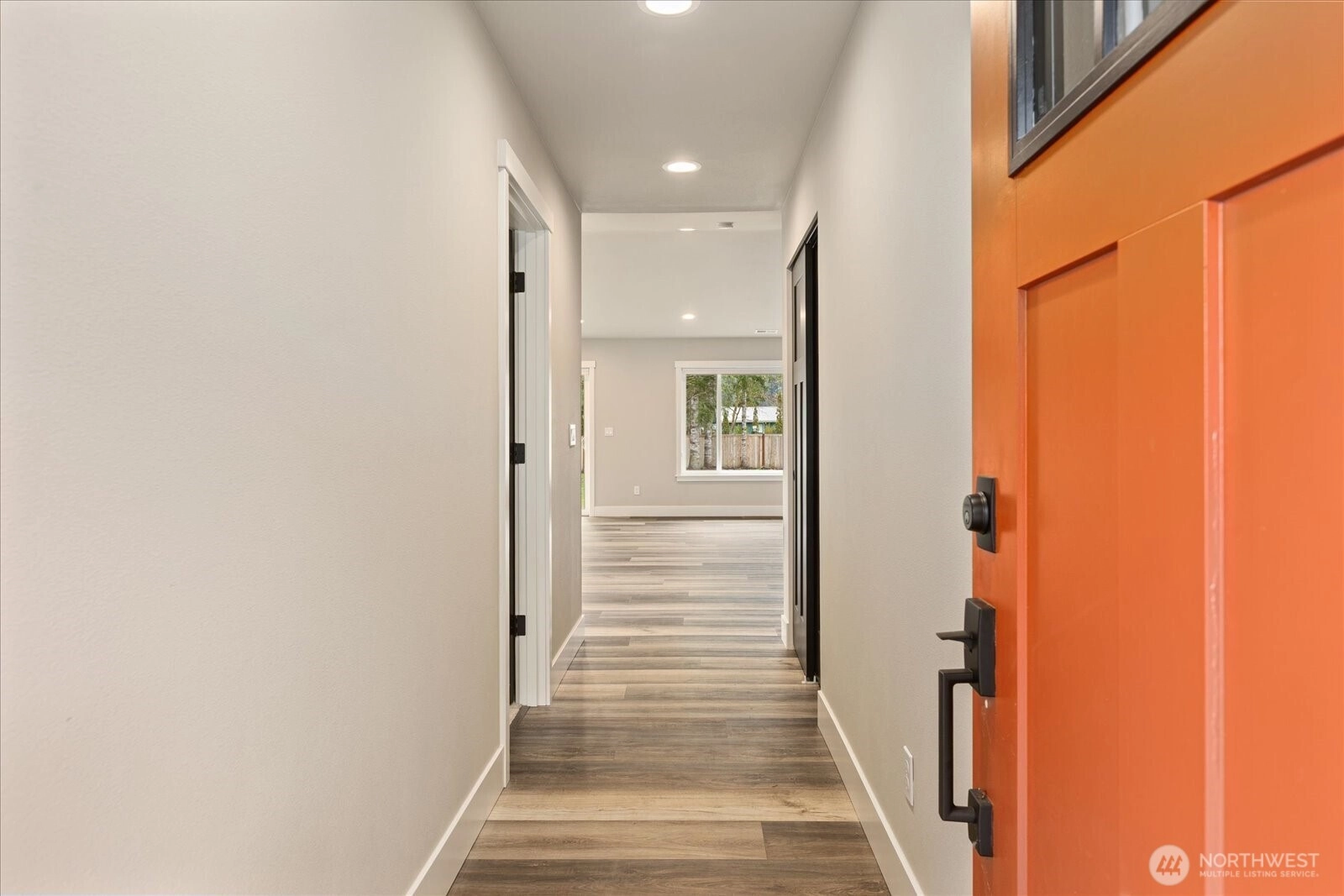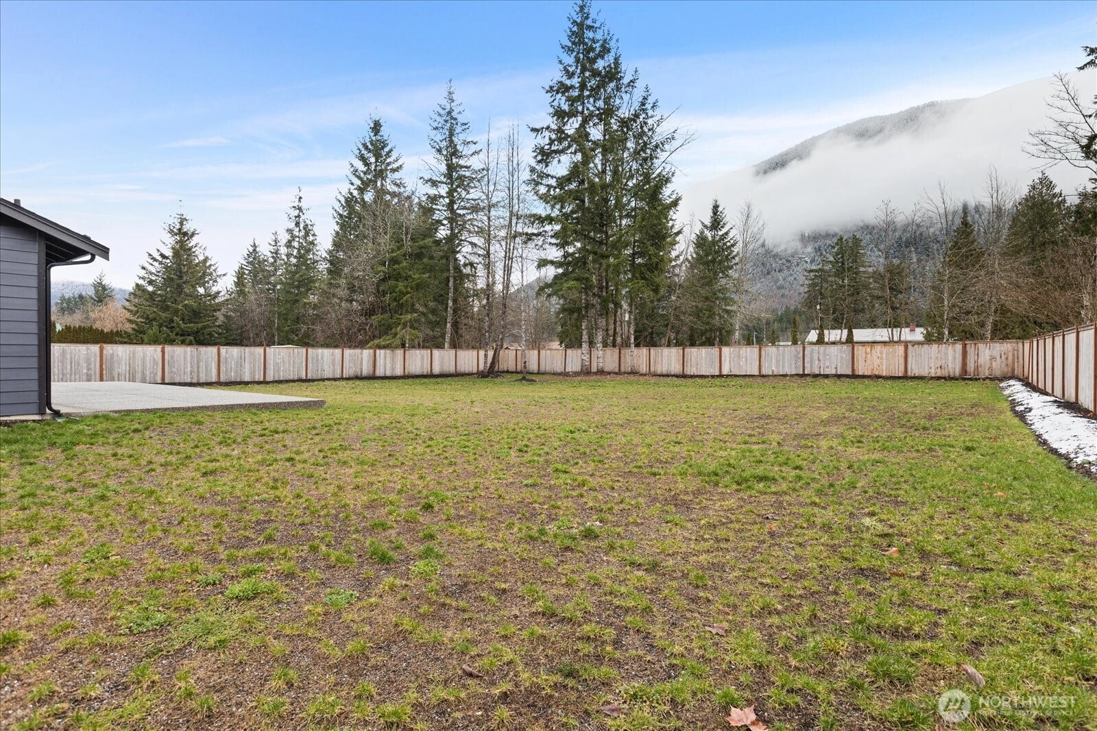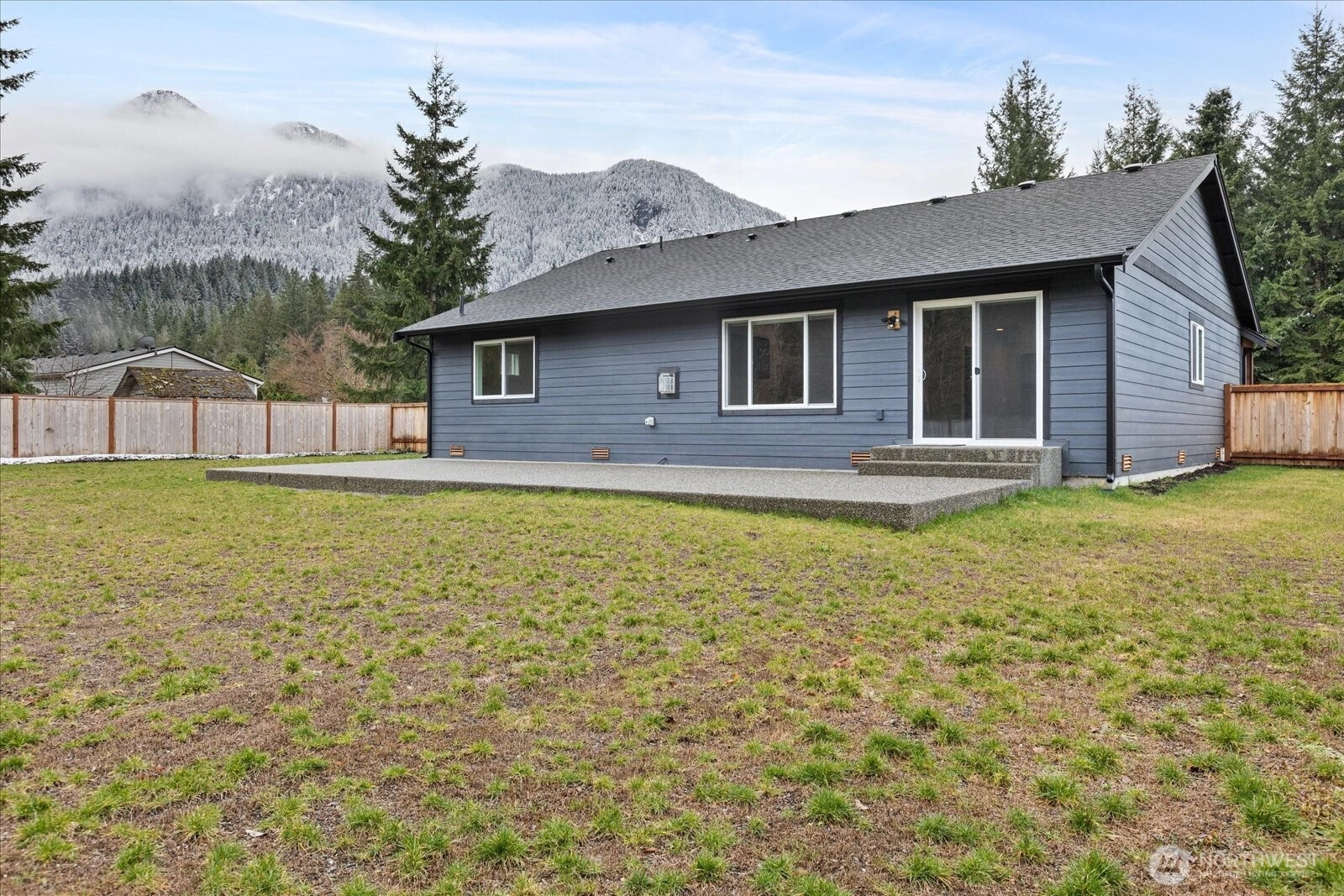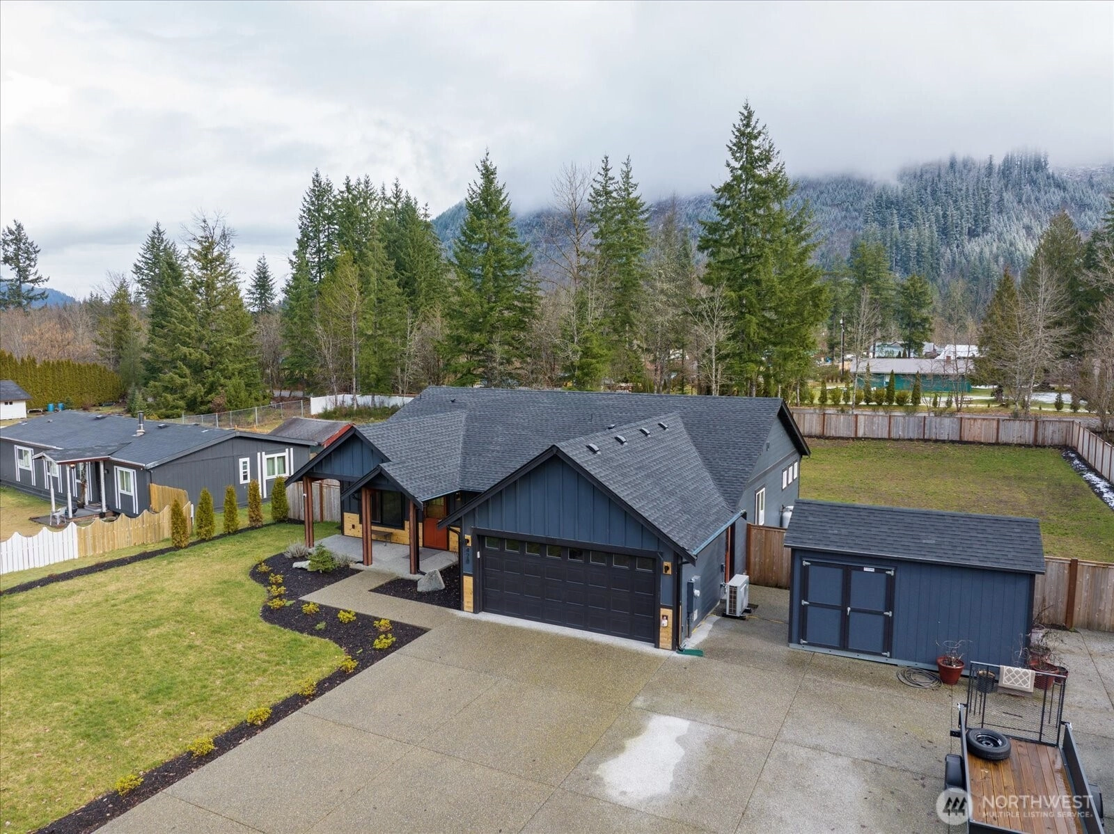 Stunning custom rambler offering exceptional single-level living on a spacious half-acre lot. This 4-bedroom, 1.75-bath home spans 1,574 SQFT and showcases quality craftsmanship and modern finishes throughout. A welcoming entry, light-filled layout featuring a kitchen designed for both everyday living and entertaining, with ample counter space, quality cabinetry, and a seamless flow into the dining and living areas. A propane fireplace creates a warm focal point in the living room, while the fully ducted heat pump with air conditioning ensures year-round comfort and efficiency. The primary suite provides a peaceful retreat with a well-appointed ensuite bath and generous closet space. Three additional bedrooms offer flexibility for guests, a home office, or hobby space. Outside, the professionally landscaped and fully fenced yard delivers privacy, usability, and curb appeal, with plenty of room for outdoor entertaining, gardening, or play. The property includes an approved drain field for a future 1-bedroom DADU, offering excellent potential for multigenerational living, guest accommodations, or rental income. Set on a charming looping street, the home captures gorgeous mountain views and enjoys a convenient location just moments from local schools, parks, and ball fields. This beautifully finished home blends comfort, functionality, and long-term flexibility in a peaceful setting.