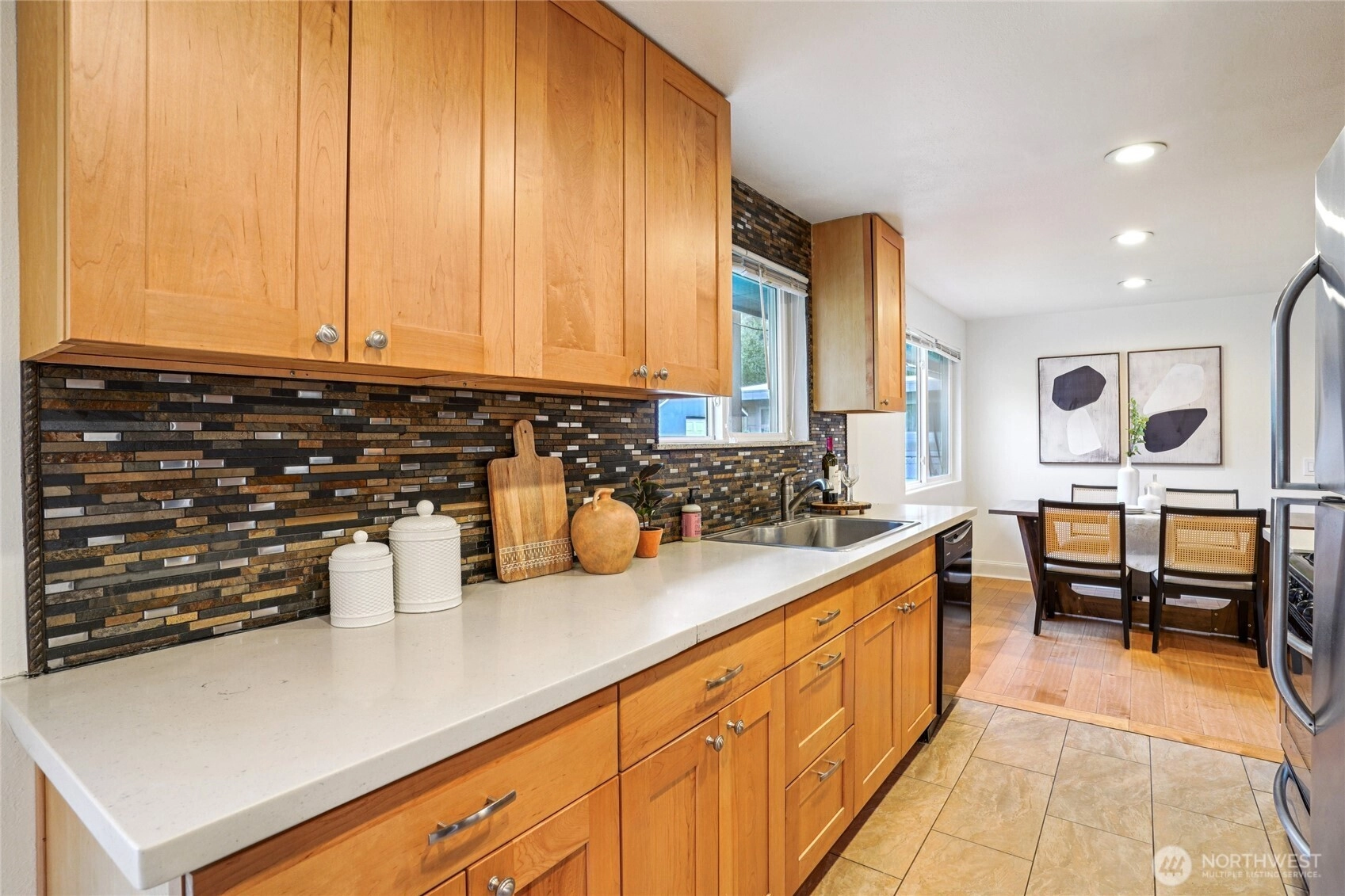 Located in the wonderful North Hill neighborhood, just one block from Normandy Park, this mid-century gem sits on a quiet dead-end street and offers the best of single-level living. Natural colored wood floors and cabinetry create an inviting, cozy atmosphere throughout. The open, light-filled living area flows seamlessly into a separate dining space and an updated kitchen—perfect for comfortable everyday living. The thoughtful layout includes 3 bedrooms and a full bath grouped together, plus a bonus room set apart with its own stylishly renovated en-suite bathroom—ideal for a roommate, guests, or a home office. A bonus room off the kitchen opens to a large covered deck, making it easy to entertain and enjoy the outdoor space any season of the year. The spacious, fully fenced backyard provides plenty of room to relax, garden or play and includes a convenient storage shed. Freshly painted interior, new water heater & washer/dryer. Close proximity to transit, shopping, the marina, waterfront parks, and the many fantastic restaurants in Des Moines, Normandy Park, and Burien. Just 15 miles to Downtown Seattle, near the light rail on 200th, and less than 4 miles to Sea-Tac Airport, this is one you won’t want to miss! Mortgage savings may be available for buyers of this listing.