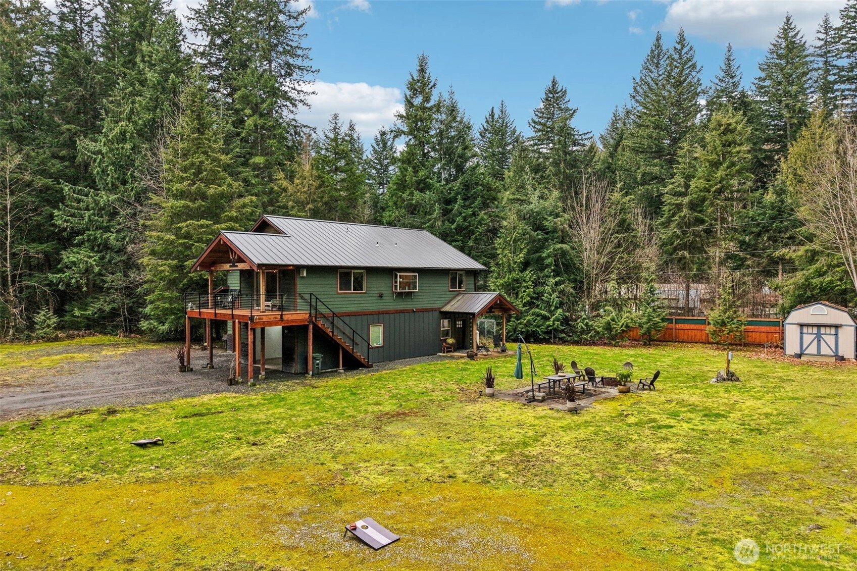 This stunning custom-built 2023 Craftsman sits on 1.23 private, level acres — move-in ready and full of possibilities. Inside, the upper living level showcases exceptional craftsmanship: vaulted ceilings with pine tongue-and-groove detailing, knotty alder doors and trim, butcher-block countertops, soft-close cabinetry, a propane fireplace, and a spacious walk-in closet. The main level offers a private guest suite with a half bath, perfect for visitors or a home office. Also on the main floor, a massive 40x17 fully insulated shop with an 18-foot ceiling, 6-inch concrete slab, and lift-ready wiring — a dream setup for any car enthusiast or mechanic — paired with a separate 22x17 insulated garage. Rounding it all out: RV parking with hookups, two storage sheds, a dog kennel with an interior dog door, a metal roof, a custom security system, generator wiring, and a 3-bedroom septic that leaves the door wide open for a future addition or mother-in-law suite. Completely private. Nothing else like it