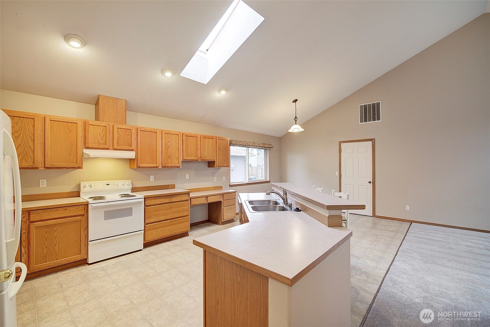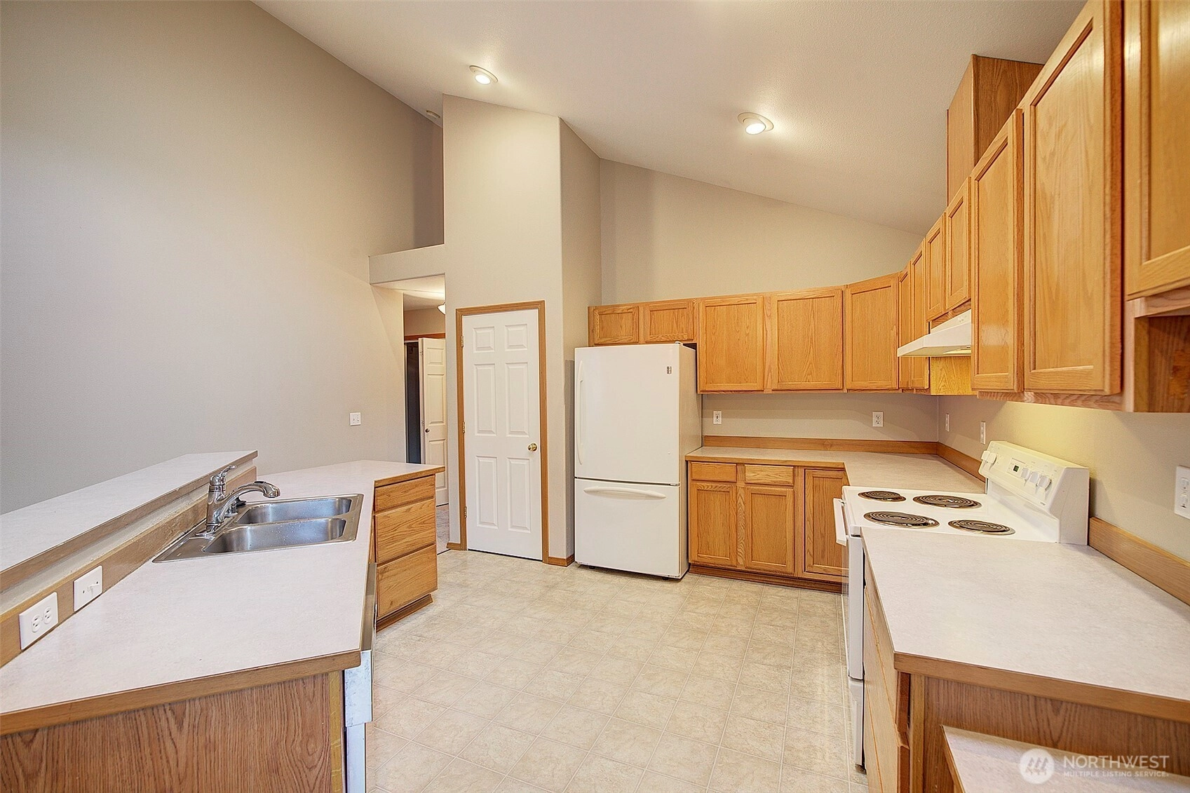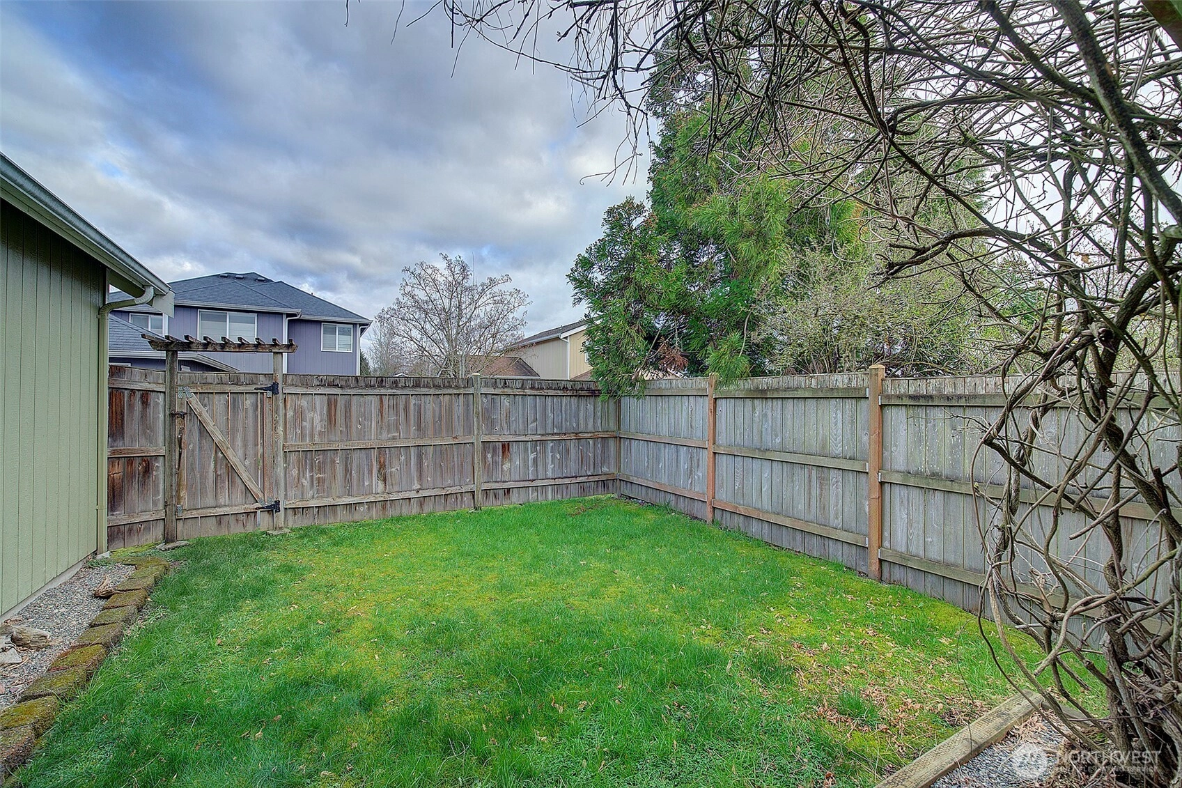 Looking for that elusive single story home? This one will not disappoint! Move-in ready with brand new carpets and professionally deep cleaned. Come see this 1,653 sf 3BR/2BA well maintained one story home. Located across the street from Lords Lake with easy access to 522, Highway 2 and downtown Monroe. Relax on your covered porch and enjoy the evening sunsets over the lake. Open floor plan with vaulted ceilings throughout. Kitchen w/pantry is open to kitchen eating space and the family room, with sliding door to the patio. The home also has formal living and dining areas. Entry closet and second linen closet are across the hall from the main bath. 2nd and 3rd bedrooms just down the hall. The Primary bedroom has a walk-in closet, ensuite bath and sliding door to the patio. Separate utility room as well. 2 car attached garage with alley access has built in shelving and work bench with pegboard. Easy low maintenance yard. Fully fenced back/side yard with East facing patio to enjoy your morning coffee. In addition to Lords Lake Park just across the street, there are numerous neighborhood parks and walking paths nearby, including the well loved Lake Tye Park just down the street. The roof was replaced in 2014, new hot water tank 2019, the furnace was serviced, and new carpets installed in Feb. 2026. Come check out this must see home!