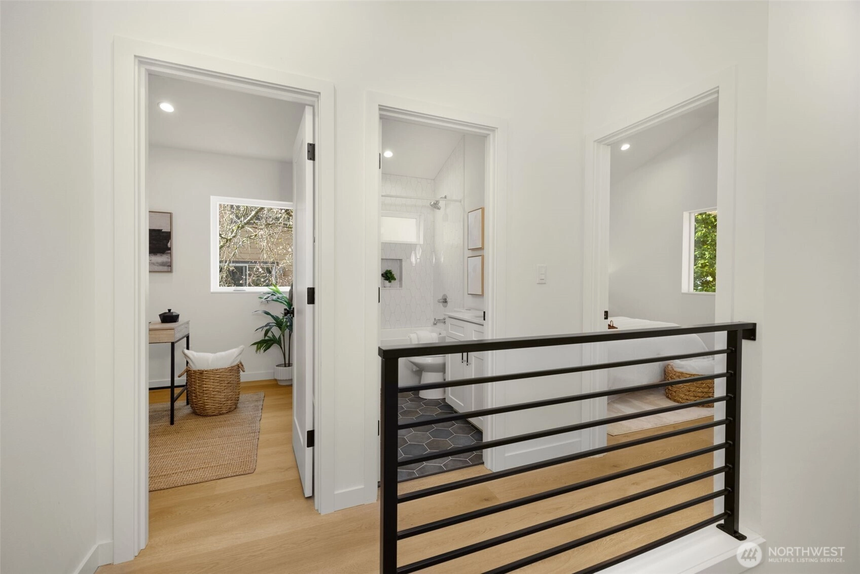 A standout, newly built 3-bedroom standalone DADU offering modern living and exceptional privacy in Haller Lake. This rare home perfectly blends space and functionality. The open-concept main level is ideal for entertaining, featuring bright areas, contemporary finishes, and a well-designed kitchen with sleek cabinetry and stainless steel appliances. Upstairs, the large primary suite is a true retreat with a generous layout and walk-in closet. Two flexible bedrooms suit guests, an office, or hobbies. Enjoy the unique benefit of a full private yard for gardening, pets, or outdoor hangouts. A dedicated garage along with an additional parking spot provides convenience and storage—a very uncommon perk for a DADU here! This home offers comfort, privacy, and accessibility. Garage comes EV-Ready as well!