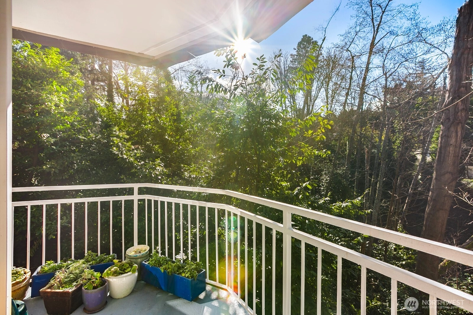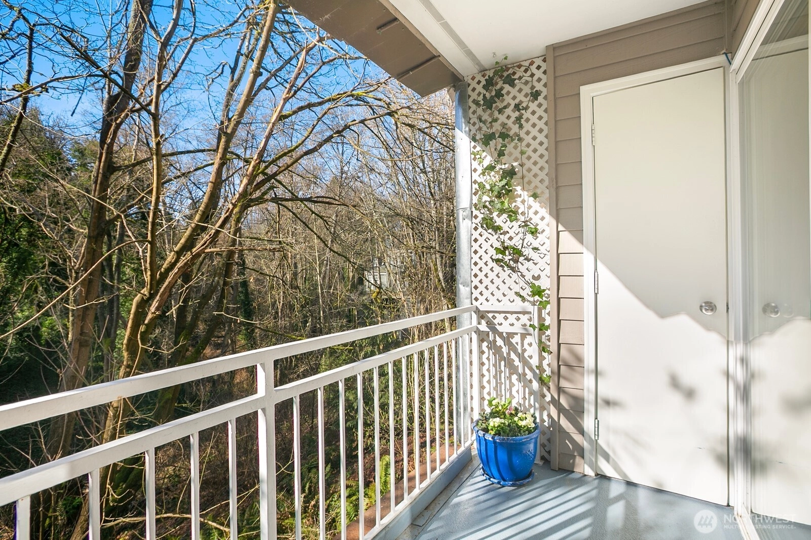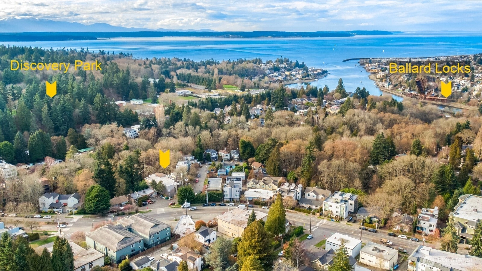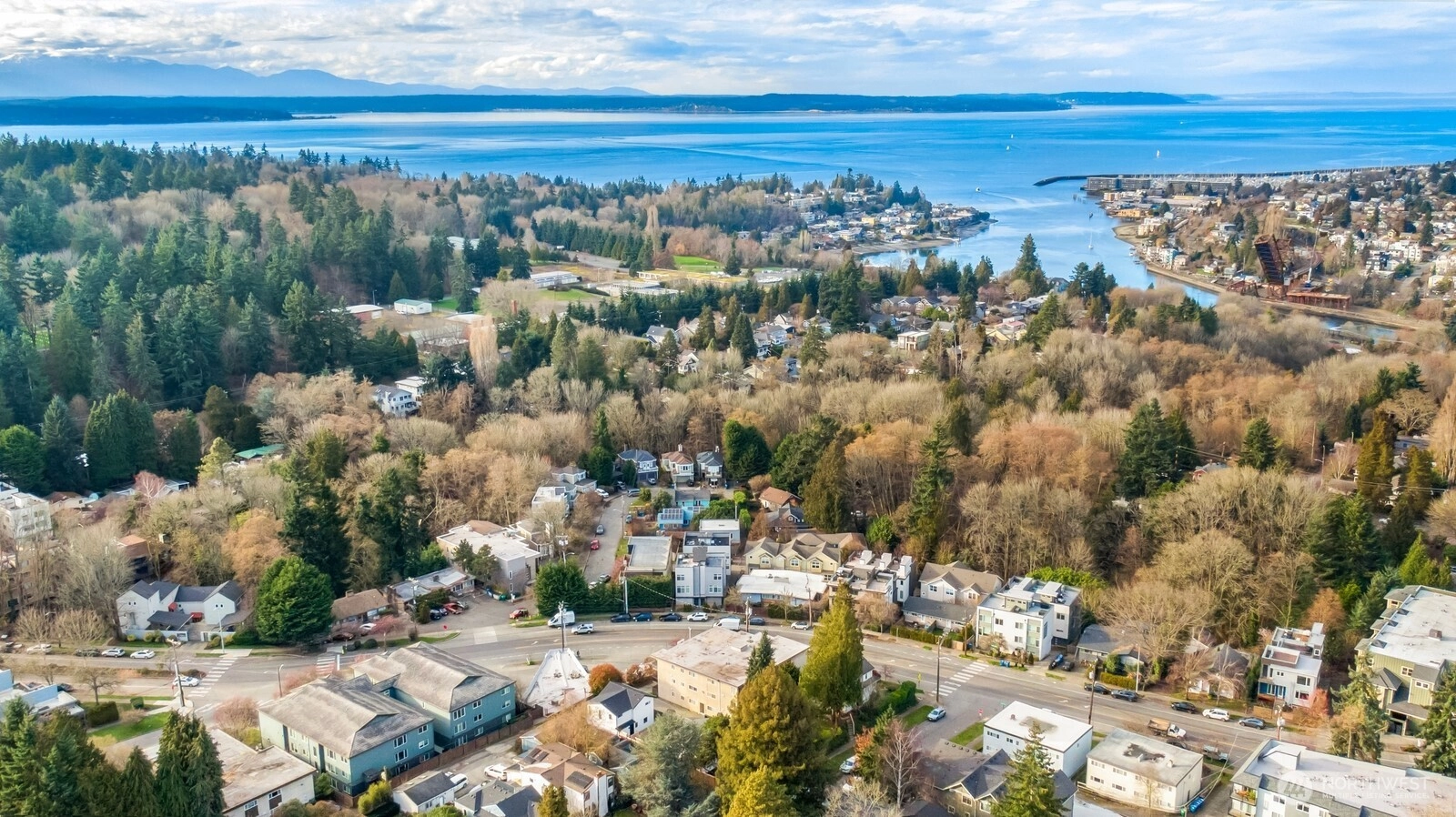 A rare blend of privacy, natural light, and unbeatable location await in this boutique 10-unit building tucked beside a lush 17-acre greenbelt, just moments from magnificent Discovery Park and the Ballard Locks. This exceptionally functional two-bedroom layout features ensuite bathrooms for both bedrooms—perfect for guests or shared living. Each bedroom is generously sized and offers double closets for outstanding storage. Every window enjoys a serene outlook with no direct neighbors in sight. Step onto your covered balcony by the private, tranquil backdrop of the protected greenbelt. The updated kitchen showcases new cabinetry and a premium Fisher & Paykel drawer dishwasher. Hardwood floors flow throughout the spacious living and dining area, filled with natural light and anchored by a cozy gas fireplace. Additional highlights include abundant in-unit storage, a dedicated storage unit, secure parking with EV charger. Ground-floor access has an exterior ramp and elevator access to the garage for added ease. Low HOA dues, a well-run association, and a brand-new roof complete this turnkey opportunity.Experience the very best of Magnolia living—immersed in nature, yet minutes from downtown with a convenient nearby bus stop.