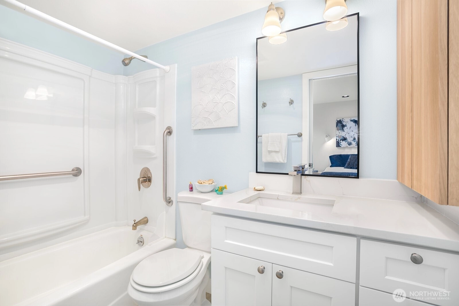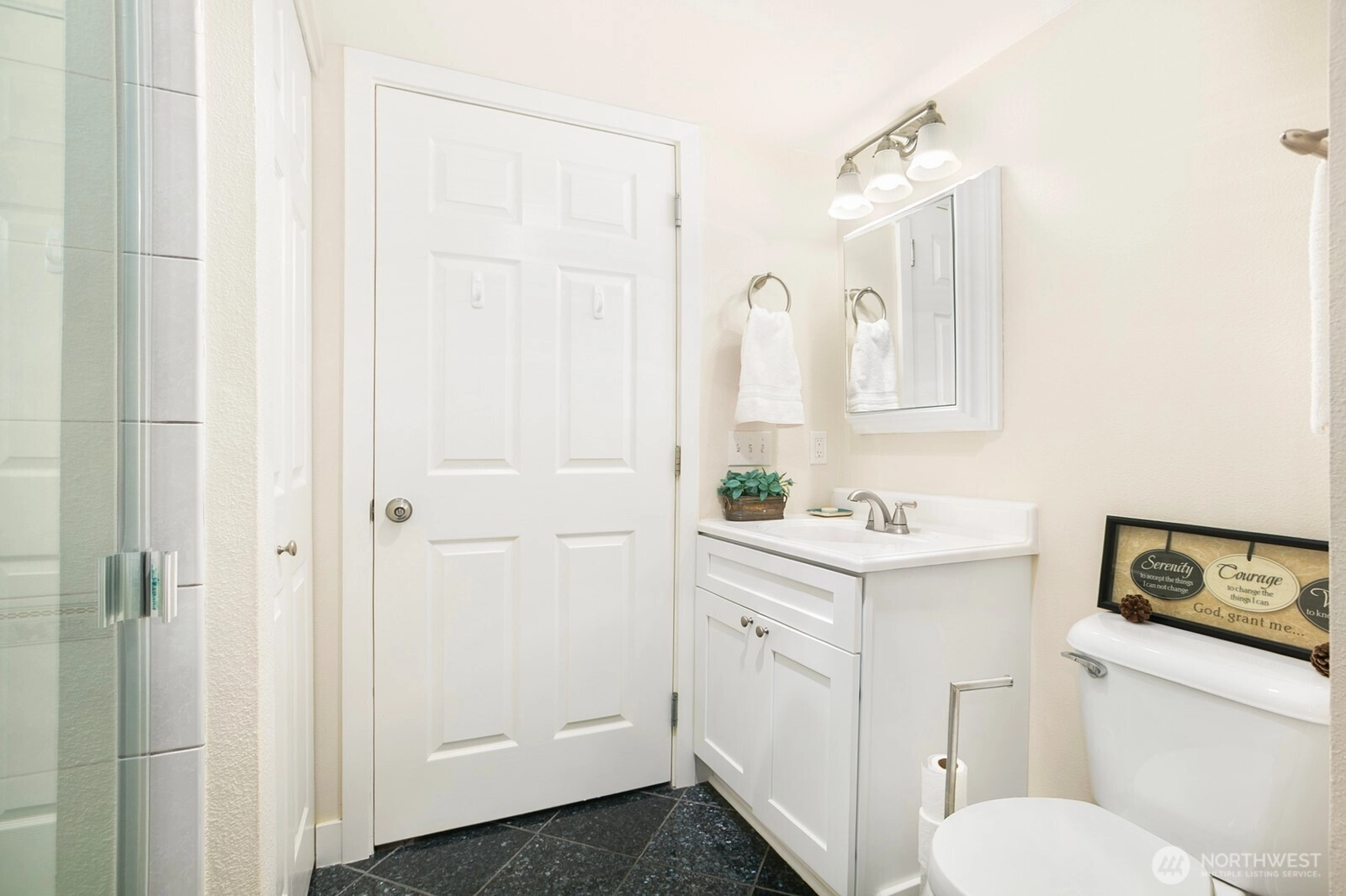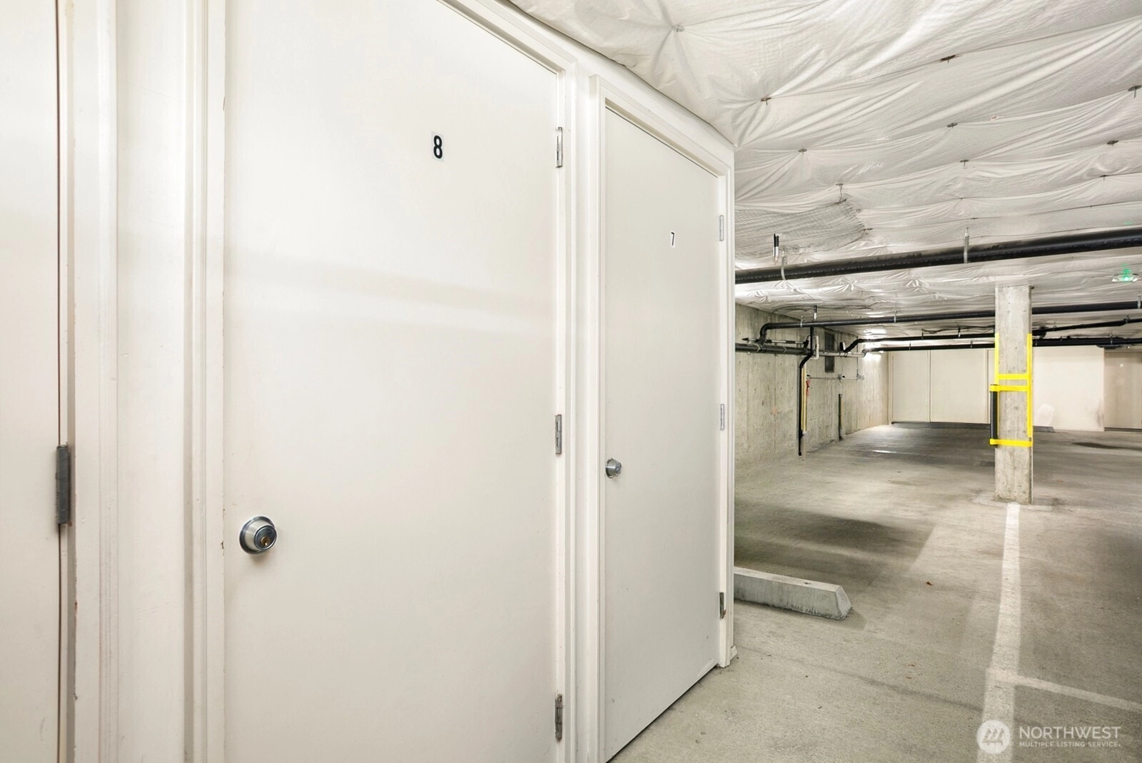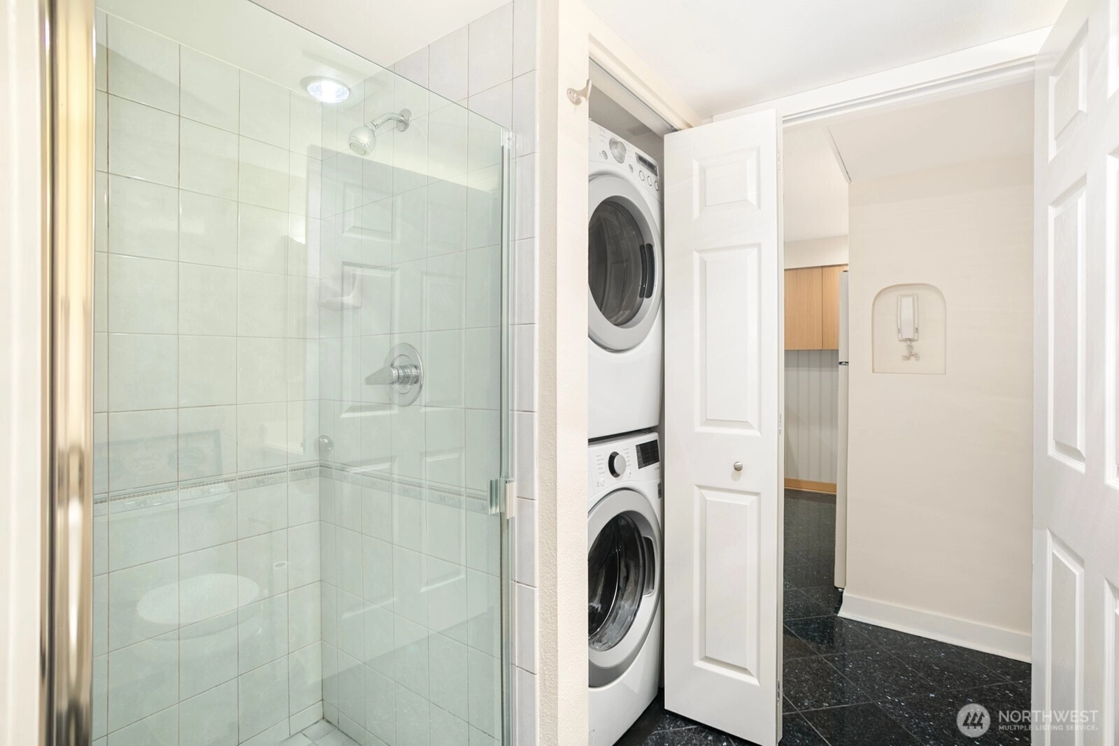 A rare blend of privacy, natural light, and unbeatable location await in this boutique 10-unit building tucked beside a lush 17-acre greenbelt, just moments from magnificent Discovery Park and the Ballard Locks. This exceptionally functional two-bedroom layout features ensuite bathrooms for both bedrooms—perfect for guests or shared living. Each bedroom is generously sized and offers double closets for outstanding storage. Every window enjoys a serene outlook with no direct neighbors in sight. Step onto your covered balcony by the private, tranquil backdrop of the protected greenbelt. The updated kitchen showcases new cabinetry and a premium Fisher & Paykel drawer dishwasher. Hardwood floors flow throughout the spacious living and dining area, filled with natural light and anchored by a cozy gas fireplace. Additional highlights include abundant in-unit storage, a dedicated storage unit, secure parking with EV charger. Ground-floor access has an exterior ramp and elevator access to the garage for added ease. Low HOA dues, a well-run association, and a brand-new roof complete this turnkey opportunity.Experience the very best of Magnolia living—immersed in nature, yet minutes from downtown with a convenient nearby bus stop.
