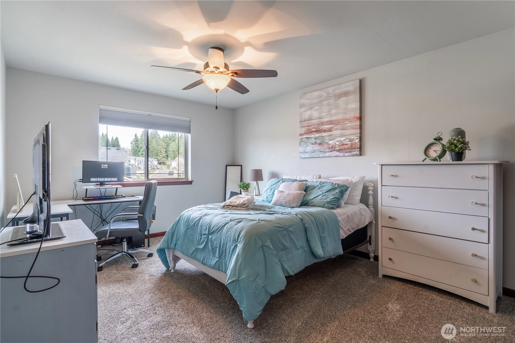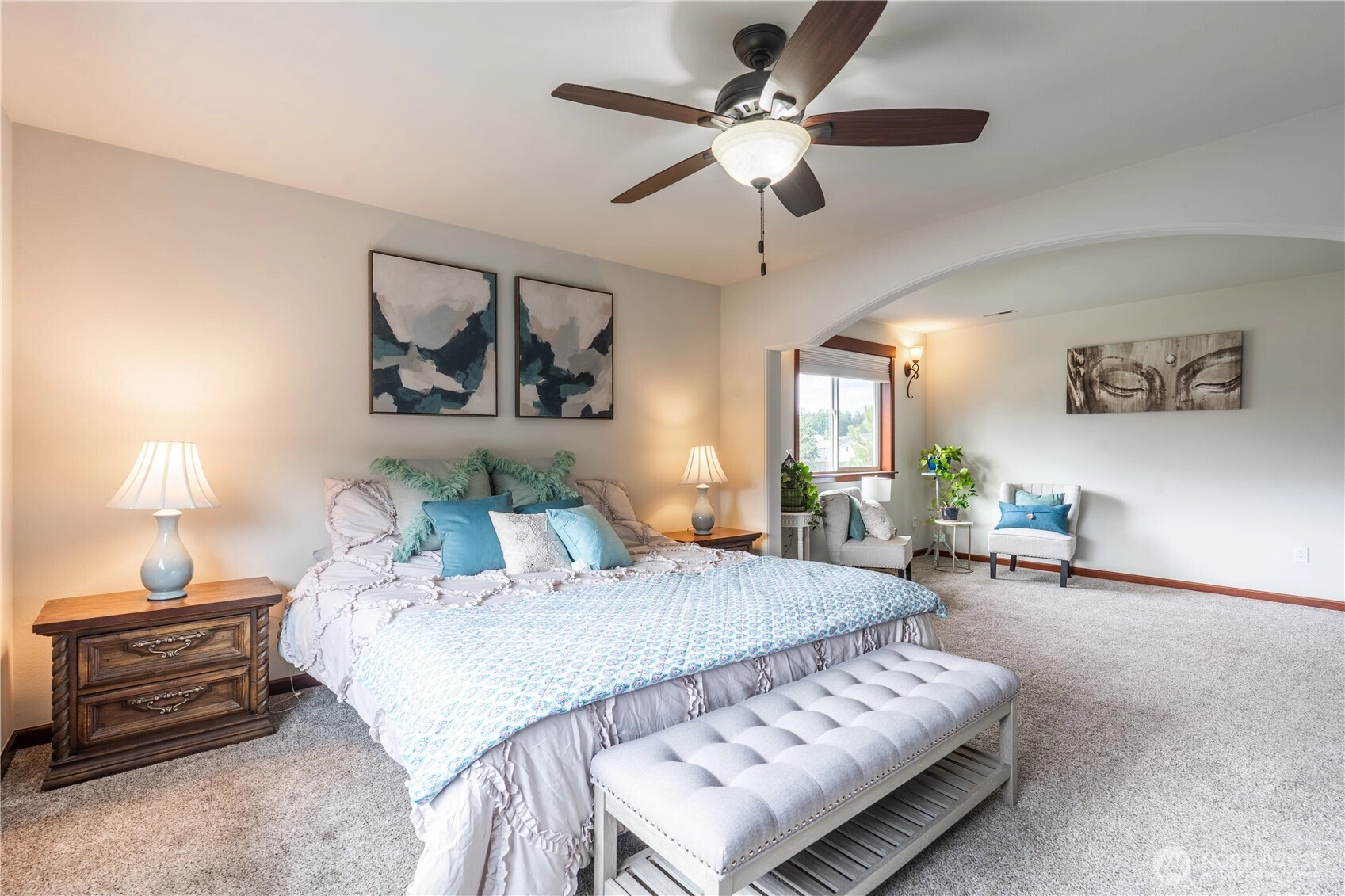 Absolute stunner in the Arbors At Sunrise. Quality & thoughtful craftsmanship - where modern design, elegance & functionality come together. What sets the tone inside… Soaring ceilings, 9 foot doors, rich Acacia hardwoods & cherry trim, custom crown moulding, archways & wrought iron spindle staircase. Let’s talk layout… Flowing floor plan from elegant entry to living, then from living to comfort in a generous family room overlooked by the heartbeat of the home - that is the Chef’s kitchen offering slab counters, commercial grade appliances incl. double oven & gas range, vast island & walk in pantry. A guest suite with adjacent 3/4 bath & office/flex space round out the main floor. But then upstairs… The king-sized primary suite brings the retreat vibes with an awesome sitting area, spa-inspired tile bath with dual headed shower, huge stand alone soaking tub & large - like LARGE walk-in closet. Big secondary bedrooms + a massive bonus/5th room give you flexibility for media, play, fitness - whatever fits your life. Now, let’s add the bonus goods… Heat pump/AC for year-round comfort inside & a backyard fit for fun with covered patio space & fully fenced, topped off with raised garden beds & storage shed. All this backs to open space that offers privacy & peace. Oh, that looks like a 3 car garage, right? Surprise… 3rd bay is tandem for the 4th car! Close to all South Hill Puyallup amenities - parks, schools, shopping, dining & more. This one hits different, AND better!