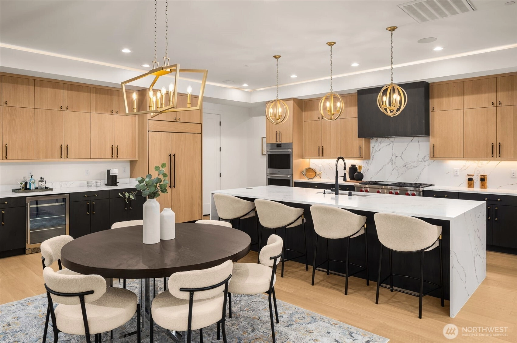 An absolutely stunning iconic luxury residence by Medina Custom Homes represents the height of refined living in Rose Hill. Thoughtfully designed with an open-concept floor plan, the home features a gourmet kitchen with custom Bellmont cabinetry, Wolf Pro-Style appliances, and beautiful reflective lighting that enhances both style and function. Striking wall details and exceptional spaces throughout — including dedicated his-and-hers offices — elevate the home’s distinctive design. The main floor offers a private guest suite along with a den/office, providing flexibility for multigenerational living or work-from-home convenience. The dramatic great room showcases modern livability with soaring two-story ceilings and seamless smart home integration, making it perfect for entertaining. Retreat to the exquisite owner’s suite featuring a cozy fireplace, elegant chandelier, spa-inspired bath with heated floors, and an expansive walk-in closet. Designed for year-round enjoyment, the outdoor living space includes a covered patio with a fireplace — ideal for gathering and entertaining in every season. The fully fenced grounds provide added privacy, and the spacious three-car garage is EV-charger ready for modern convenience. A dual-zone HVAC system ensures efficient, customized comfort throughout the home.Ideally located within the highly acclaimed Lake Washington School District and offering easy access to Microsoft, and much more!
