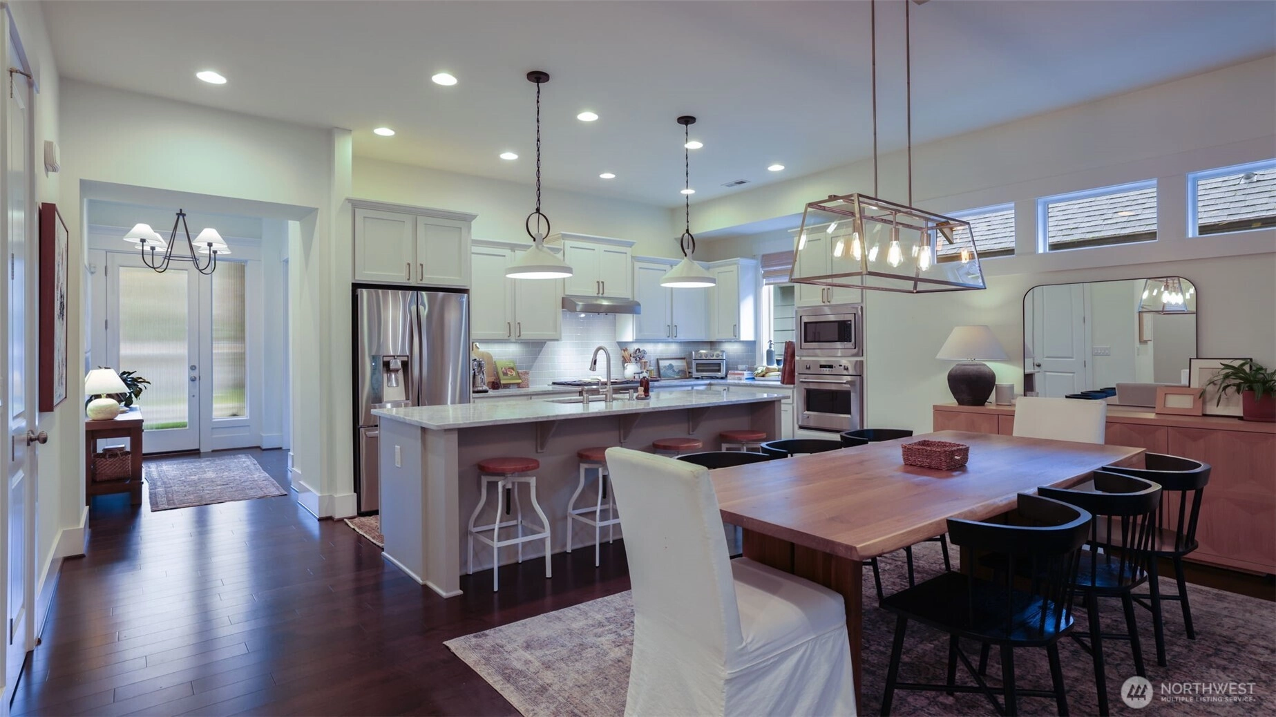 This exquisite residence by award-winning JayMarc Custom Homes, designed w/timeless elegance & comfort in mind. Soaring 10-foot ceilings, rich hardwood floors create an inviting atmosphere, while custom closets offer organized living. The chef’s kitchen features tailored cabinetry, a generous Carrara marble island, & modern appliances—ideal for entertaining. Front room has flexibility as office or bedroom. The main-floor primary suite boasts a spa-inspired bath & spacious walk-in closet for ultimate relaxation. The lower level provides versatile living w/a rec room, bonus room, full bath & 2 bedrooms, room for a 5th bed in gym area. Enjoy 2 covered outdoor spaces, firepit, fruit trees & raised beds, minutes to Bellevue, Issaquah & Seattle.