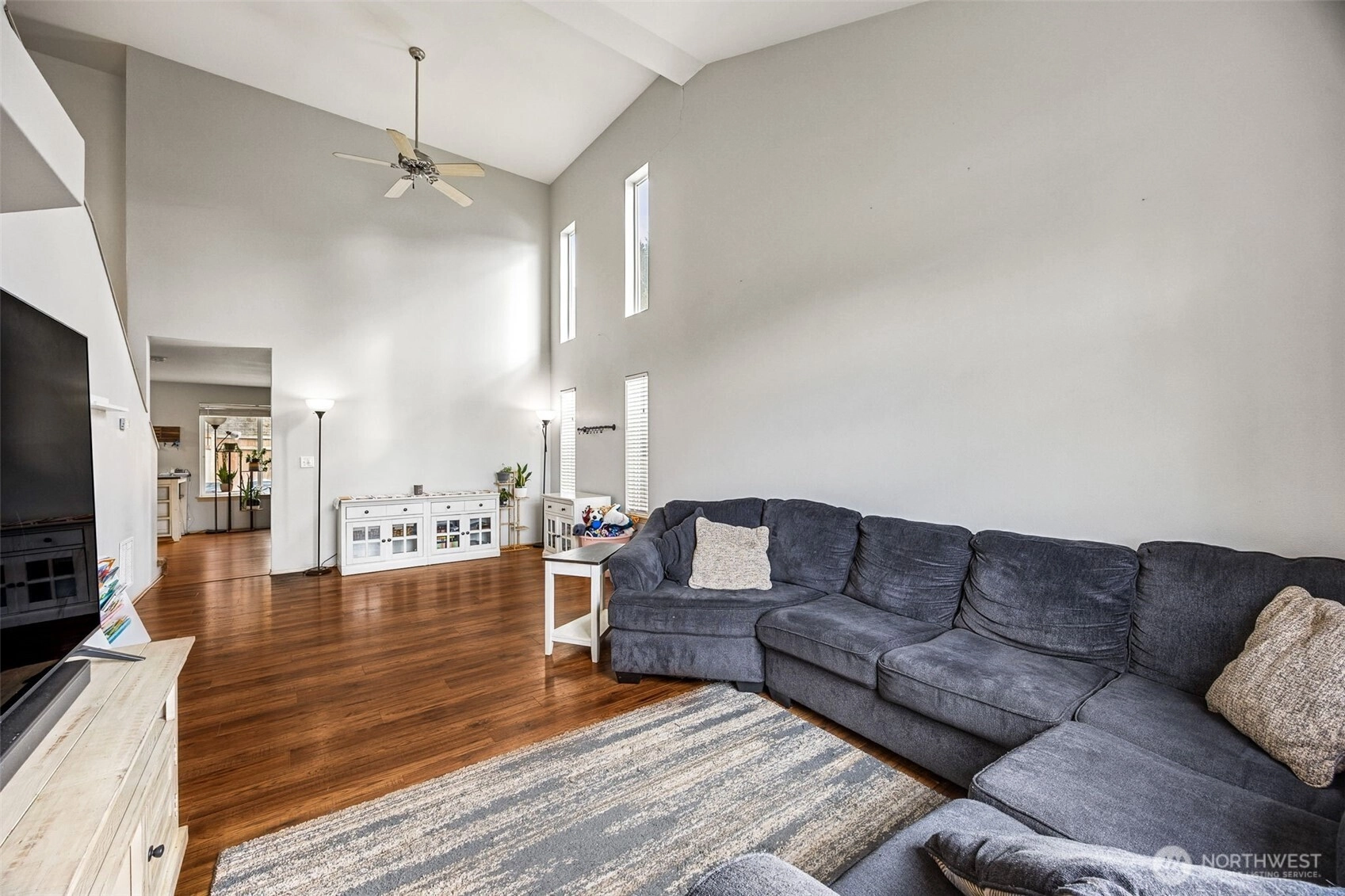 Beautifully updated home in a desirable Sumner neighborhood! This 4-bed 2.5-bath, 1,888 sq ft home sits on a spacious corner lot in a cul-de-sac and offers a bright, open layout with soaring ceilings, laminate flooring throughout the kitchen and family room. The updated kitchen includes all appliances and opens to the backyard for easy indoor-outdoor living. Recent upgrades add major peace of mind, including a new roof (2022), exterior paint (2022), central AC (2023), newer water heater and updated bathrooms. The primary suite features a private bath with double vanity, soaking tub, and dual closets. A cozy gas fireplace anchors the family room and three additional bedrooms provide flexibility for guests, work, or hobbies. Outside, enjoy a fully fenced backyard with a concrete patio and deck—perfect for entertaining, gardening, or play. Additional features include a covered front porch and attached 2-car garage. Located minutes from Sumner schools, parks, shopping, and commuter routes, this home blends comfort, convenience, and thoughtful updates.