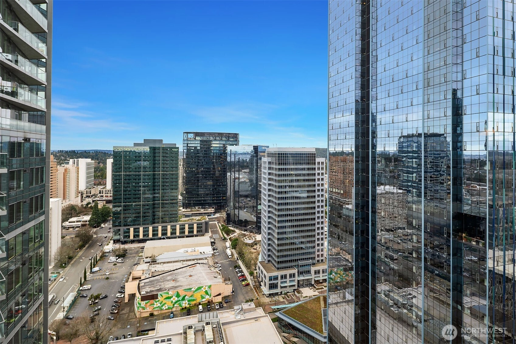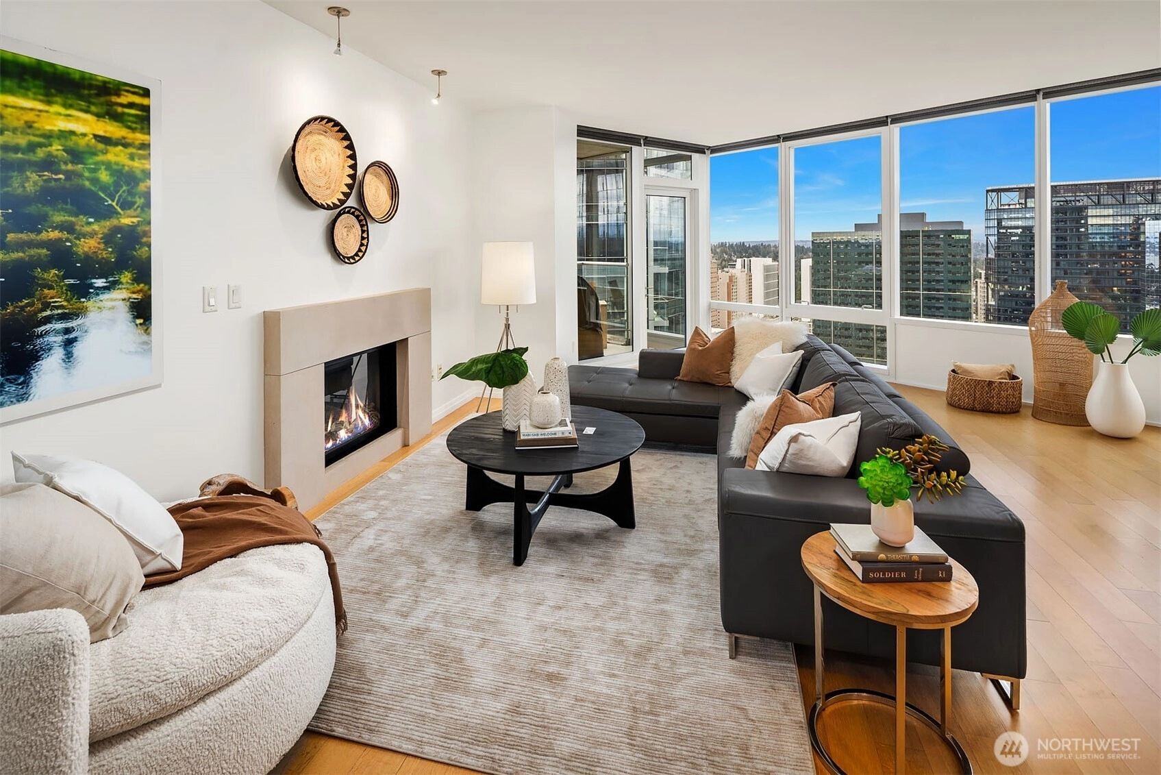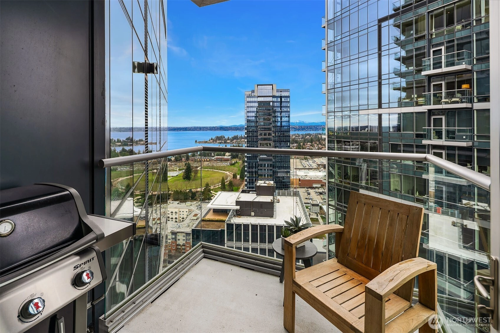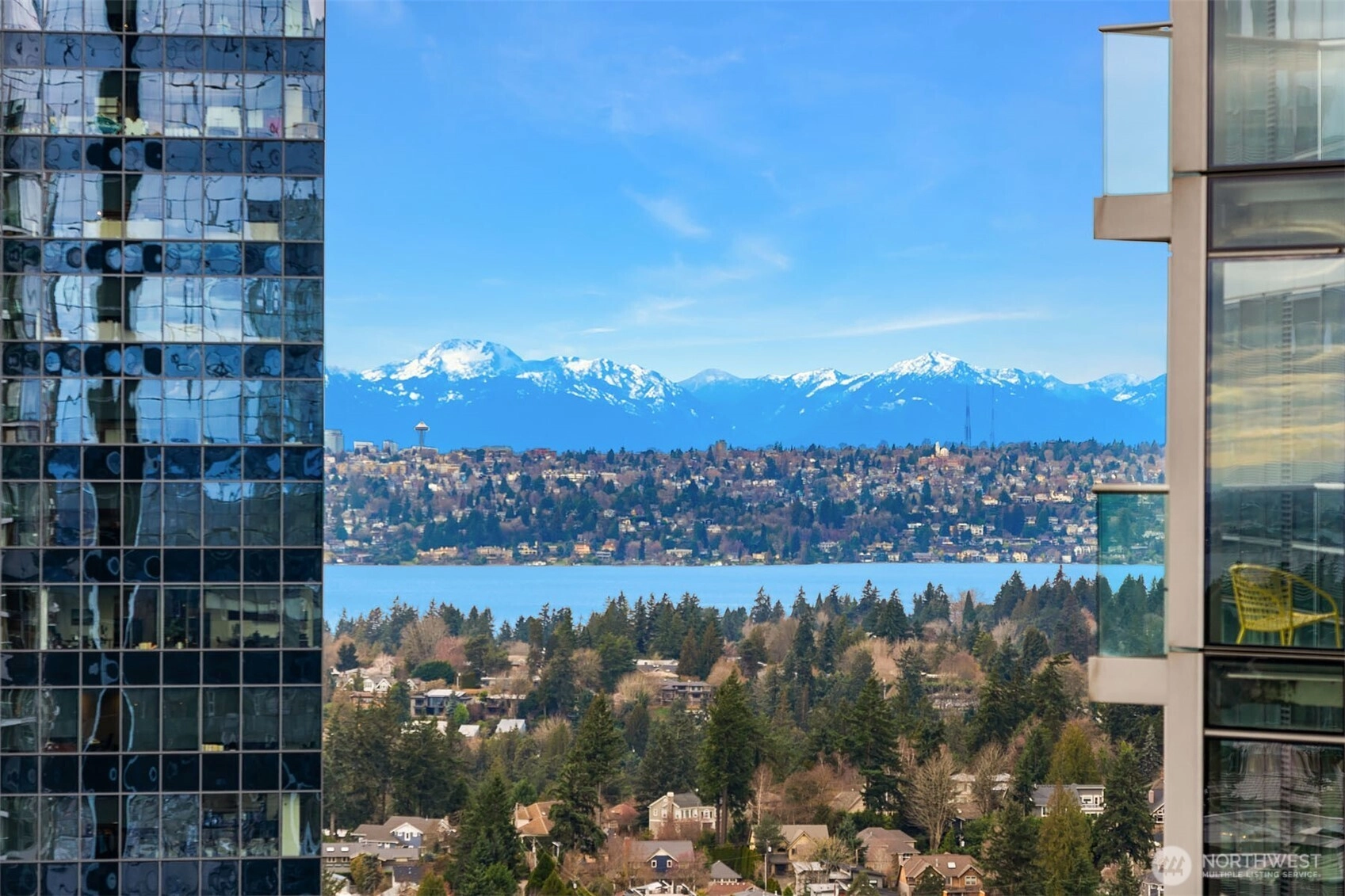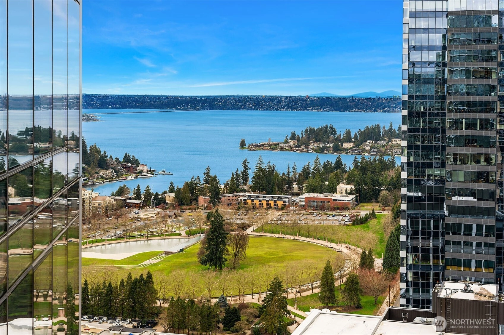 Experience elevated downtown living in this expansive residence at Bellevue Towers. Home 3406 welcomes you with a gracious gallery entry that opens to lake, city, and territorial views. The thoughtfully designed island kitchen features cherry stile-and-rail cabinetry, slab stone countertops, and premium Sub-Zero/Wolf appliances, great for everyday living and entertaining alike. The spacious great room is anchored by a gas fireplace and flows seamlessly to a private balcony complete with gas for grilling. A large family room plus an additional home office with custom built-ins offer exceptional flexibility for work and relaxation. Additional highlights include 9' ceilings, an oversized laundry room, and abundant storage. 2 side-by-side parking spaces and garage storage are also included. LEED Gold–certified Bellevue Towers offers recently remodeled amenities including state-of-the-art fitness rooms, whirlpool spa with sauna and steam room, dining room with kitchen, community and game rooms, theater, outdoor terraces, a half-acre park, and 24/7 concierge. All of downtown Bellevue is at your doorstep including world-class shopping, dining, and the Bellevue Downtown Park, making this a truly exceptional place to call home.
