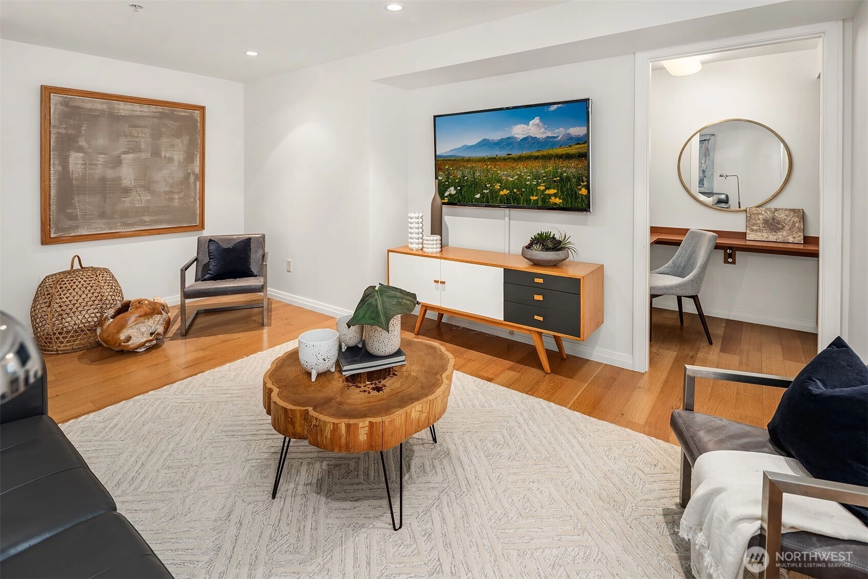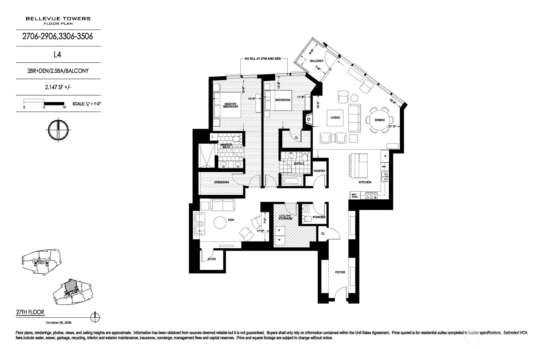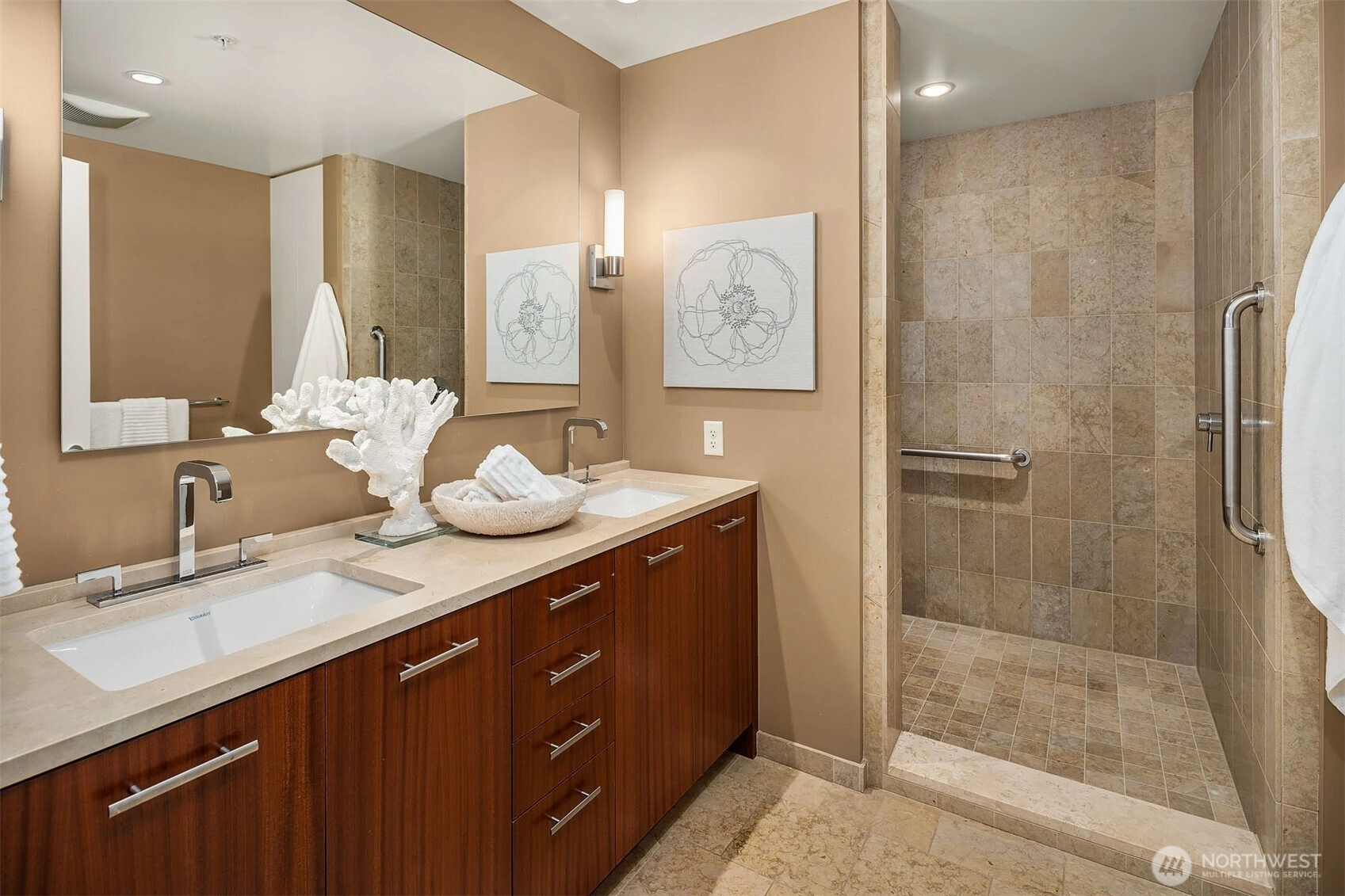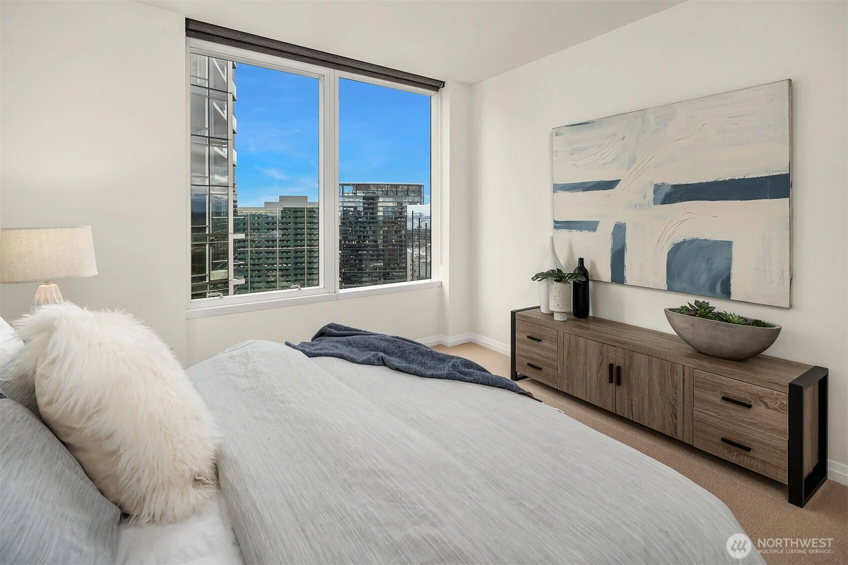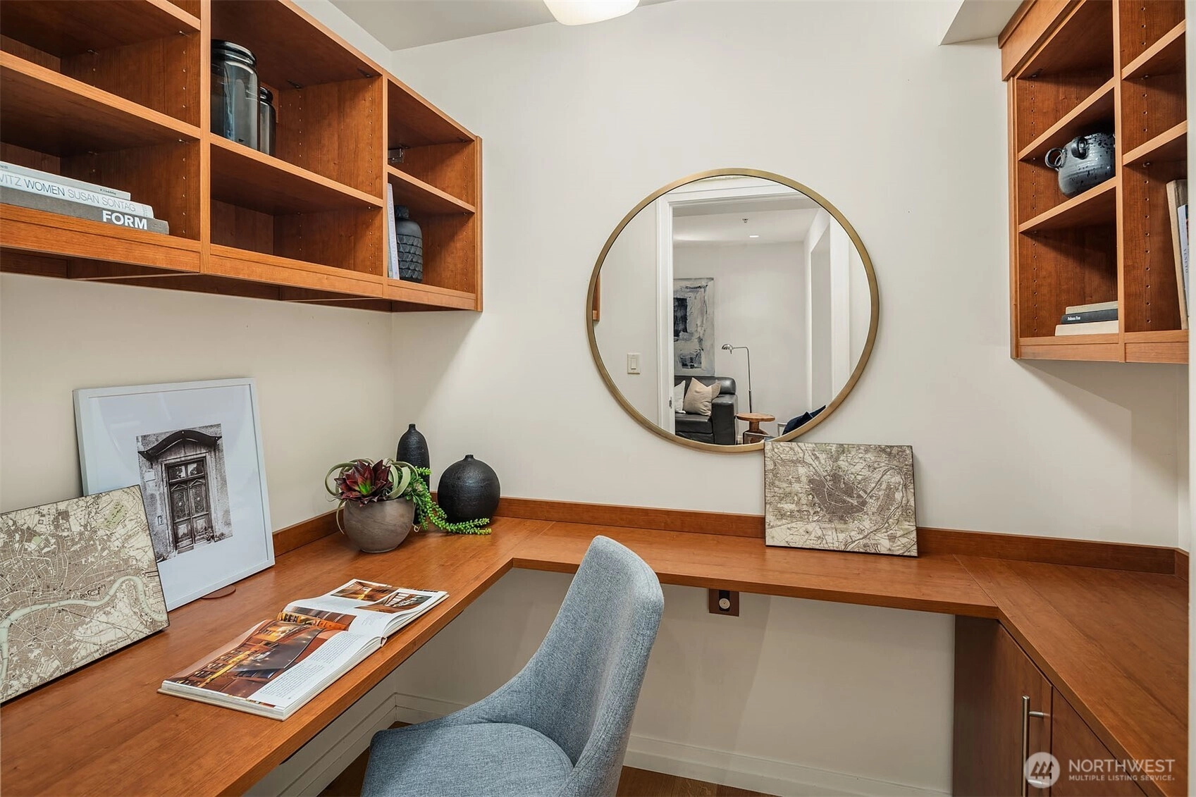 Experience elevated downtown living in this expansive residence at Bellevue Towers. Home 3406 welcomes you with a gracious gallery entry that opens to lake, city, and territorial views. The thoughtfully designed island kitchen features cherry stile-and-rail cabinetry, slab stone countertops, and premium Sub-Zero/Wolf appliances, great for everyday living and entertaining alike. The spacious great room is anchored by a gas fireplace and flows seamlessly to a private balcony complete with gas for grilling. A large family room plus an additional home office with custom built-ins offer exceptional flexibility for work and relaxation. Additional highlights include 9' ceilings, an oversized laundry room, and abundant storage. 2 side-by-side parking spaces and garage storage are also included. LEED Gold–certified Bellevue Towers offers recently remodeled amenities including state-of-the-art fitness rooms, whirlpool spa with sauna and steam room, dining room with kitchen, community and game rooms, theater, outdoor terraces, a half-acre park, and 24/7 concierge. All of downtown Bellevue is at your doorstep including world-class shopping, dining, and the Bellevue Downtown Park, making this a truly exceptional place to call home.