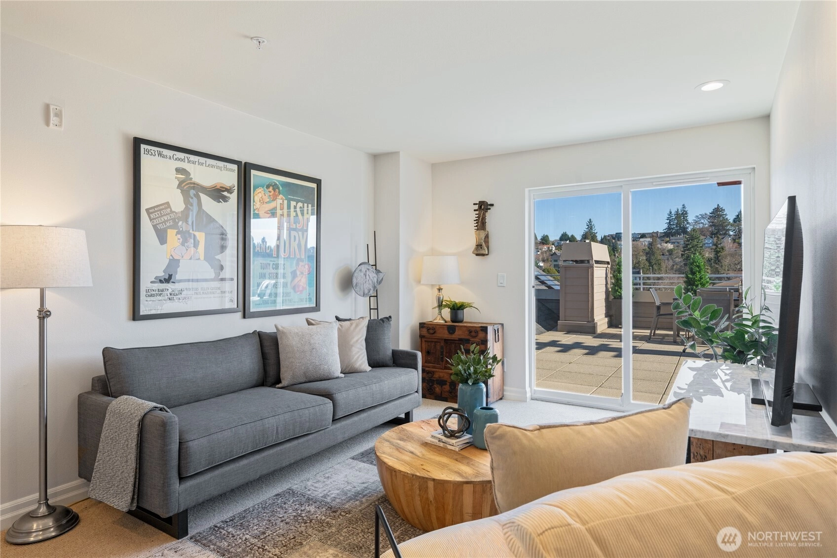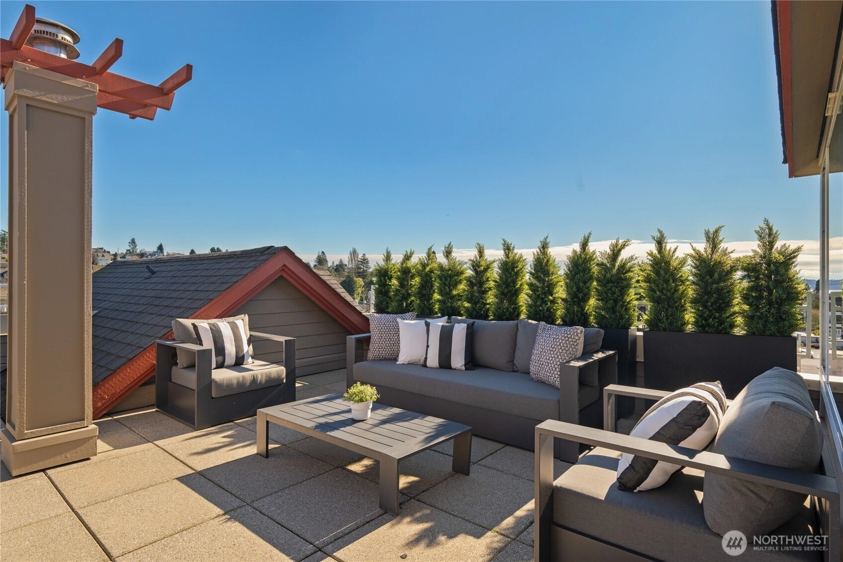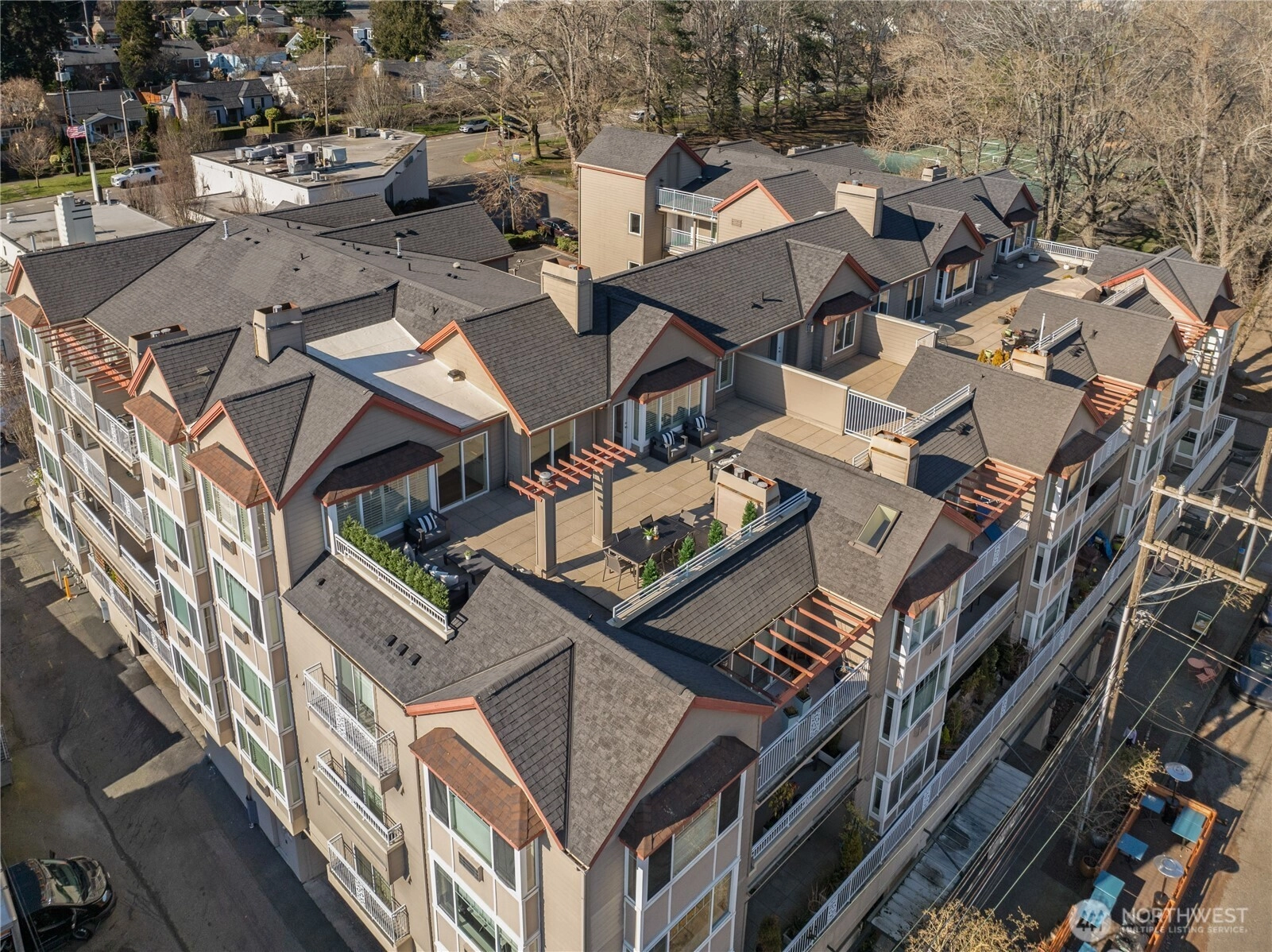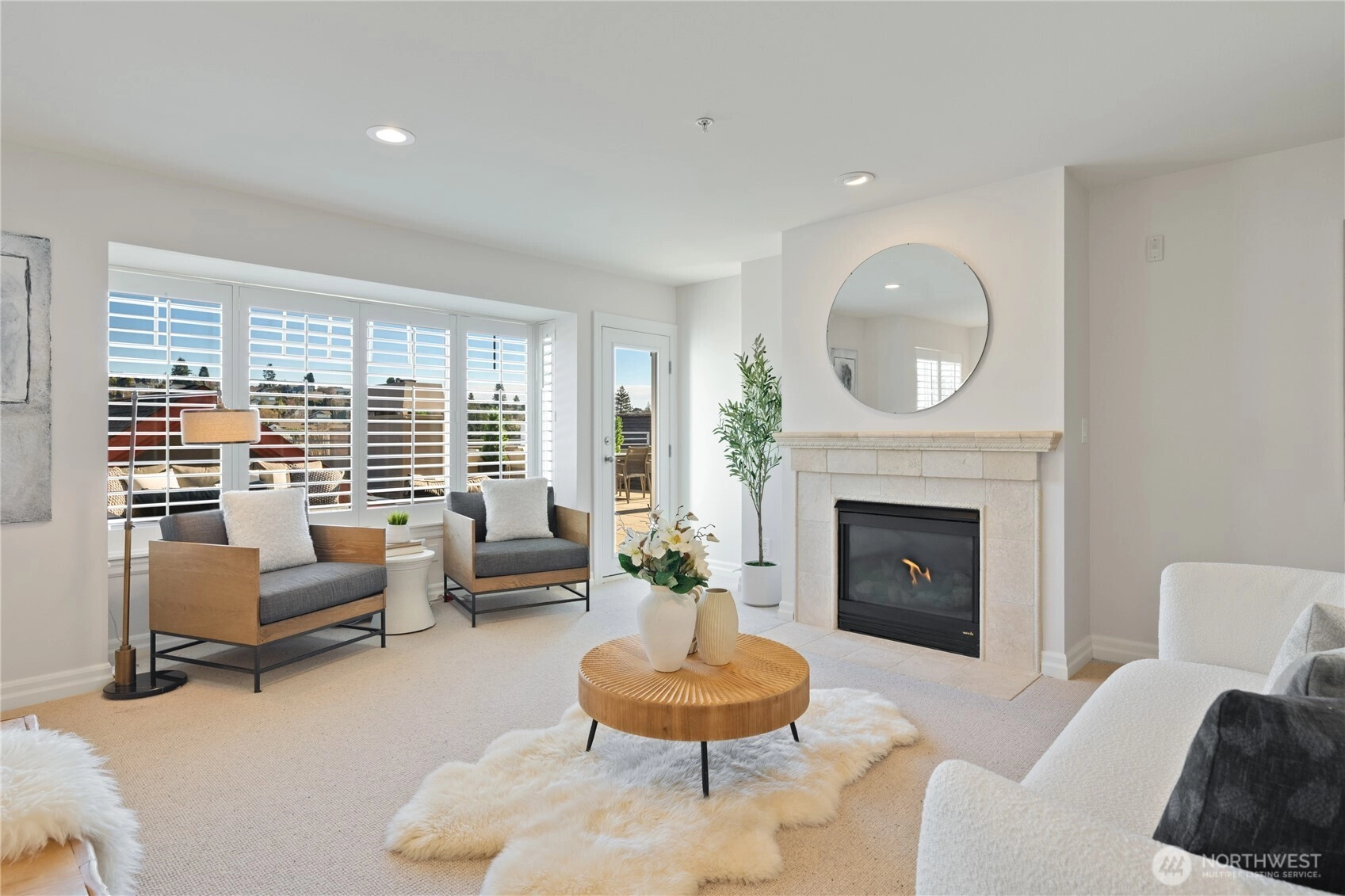 Rare Magnolia Village penthouse offering 3 bed/2 baths across 2,023 sqft of vaulted living with sweeping Pleasant Valley views. An extraordinary 1,200 sqft private deck creates seamless indoor-outdoor living designed for privacy and gathering. Abundant southern light and expansive sightlines create an immediate sense of openness, with vaulted ceilings revealed as the home unfolds. A circular floor plan enhances flow for daily living and hosting. Rustic-finish Yosemite oak hardwood floors, 100% wool carpeting, modern accents, curated lighting, and radiant heat throughout bring warmth and refinement to every space. Three fireplace experiences, including a double-sided natural gas fireplace serving separate living areas, create ambiance perfect for cozy evenings, intimate gatherings, or elevated entertaining. The chef's kitchen features new stainless appliances, natural gas range, double ovens, and custom cabinetry. A dedicated laundry room adds everyday convenience. The expansive primary suite offers deck access, walk-in closet, and a spa-inspired five-piece bath with jetted soaking tub and walk-in shower. Additional highlights include new A/C units, two secured side-by-side garage parking spaces, private 70 sqft storage, elevator access, and a well-maintained building with an engaged HOA. Steps from parks, dining, and retail, this home captures the charm of Magnolia Village living with rare penthouse privacy. Vaulted. Luminous. Rare by any measure.