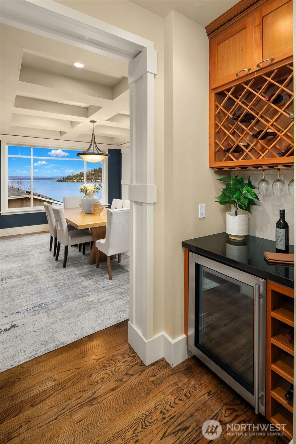 Situated in the sought-after Lower Kennydale neighborhood, this exceptional residence offers sweeping panoramic views encompassing Lake Washington, Mercer Island, and the Olympic Mountains. The home showcases refined craftsmanship and thoughtful detailing, seamlessly blending traditional and contemporary elements with a sophisticated yet inviting palette. Enjoy a tranquil and private sanctuary, free from street noise. The luxurious primary suite includes a fireplace and a secluded deck, while the office and den feature custom cabinetry. The chef’s kitchen connects to an elegant dining room that boasts a fireplace and remarkable western vistas. Outdoor dining and boat watching are available on two spacious decks. The lower level comprises a home theater and bonus room with potential for a MIL suite. Enhancing convenience, the property is equipped with a beautiful elevator. Located just minutes from Kennydale Beach Park, East Trail for walking and biking, Coulon Beach Park, SeaTac Airport, Downtown Bellevue, and Seattle, the home provides impeccable maintenance and design. It combines luxury living with rare accessibility—quick access to I-405 without freeway noise. This modern classic embodies distinguished luxury living.