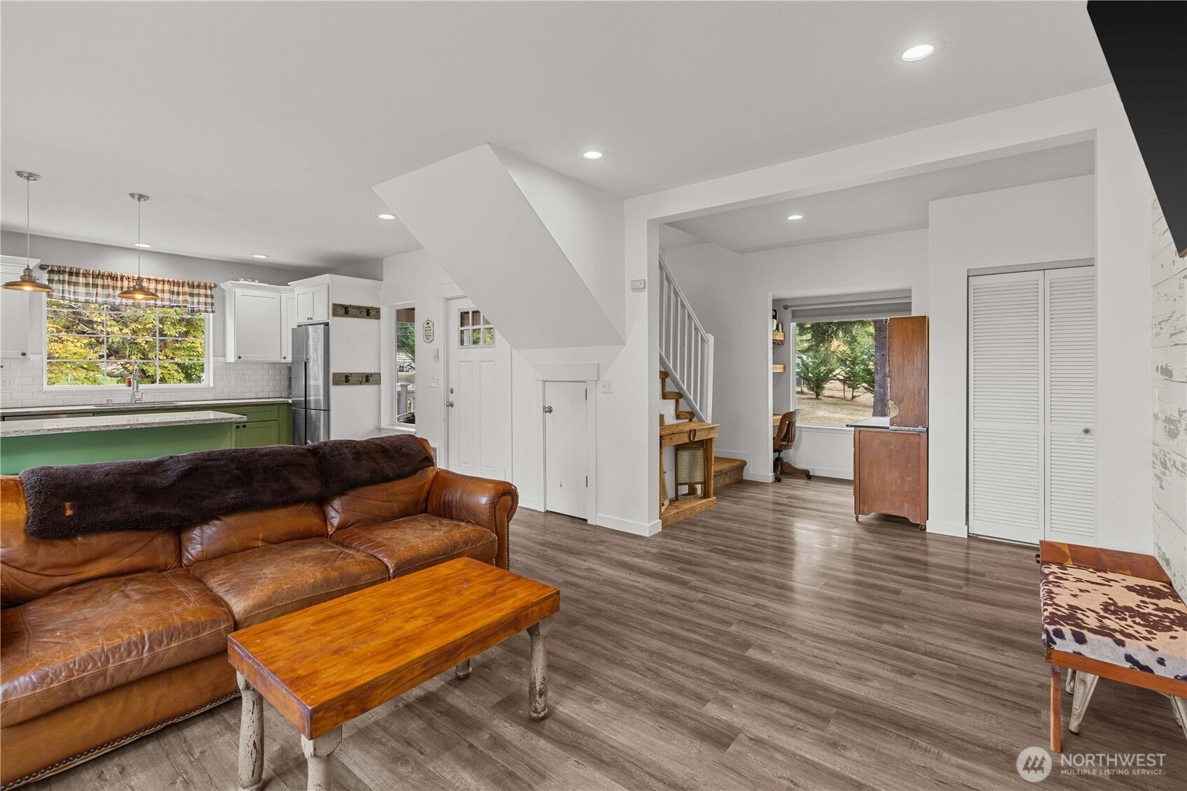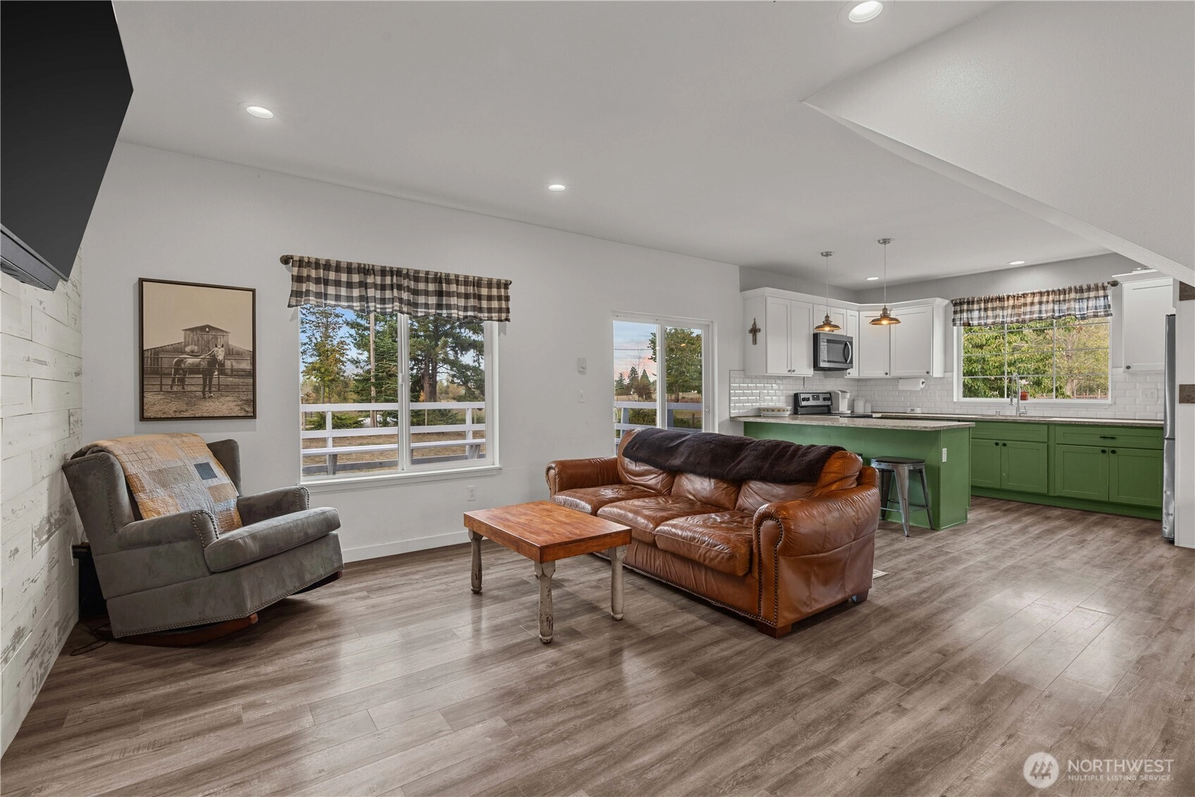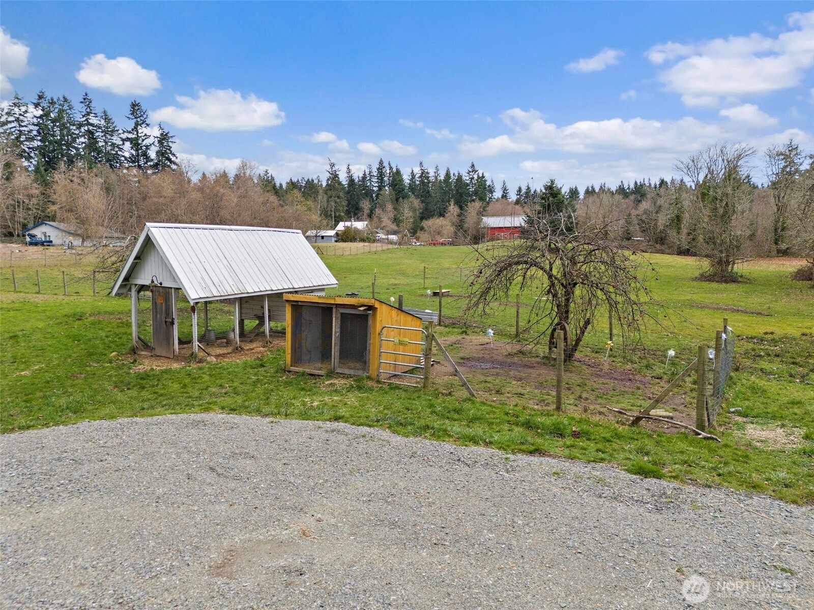 Your own private bridge over Muck Creek welcomes you to your porchlight sanctuary, nestled among the lush canopy. Set on 7.18 serene fenced acres, this storybook property unfolds with pastures (3), mature trees, a tranquil pond, and the gentle sound of the creek flowing through the land. Whether you envision horses in the pasture, gardens in bloom, or quiet mornings on the porch, this property invites you to slow down and stay awhile. The fully renovated (down to the studs in 2018 & a new well, as WELL) 3-bedroom, 1.75-bath, 1154 sqft home pairs modern comfort with timeless charm, featuring an updated kitchen, warm living spaces, the primary is on the main floor for multi gen living, wired for generator (generator stays) and thoughtful built-ins for work and everyday life. Outbuildings, covered hayloft, beautiful well house, all appliances included, detached garage (420 sqft), and open acreage create flexibility for animals, hobbies, and future expansion — including the potential for a second home. A rare Graham opportunity to own usable acreage, privacy, and natural beauty — all in one place. Please watch the beautiful video attached to the listing.