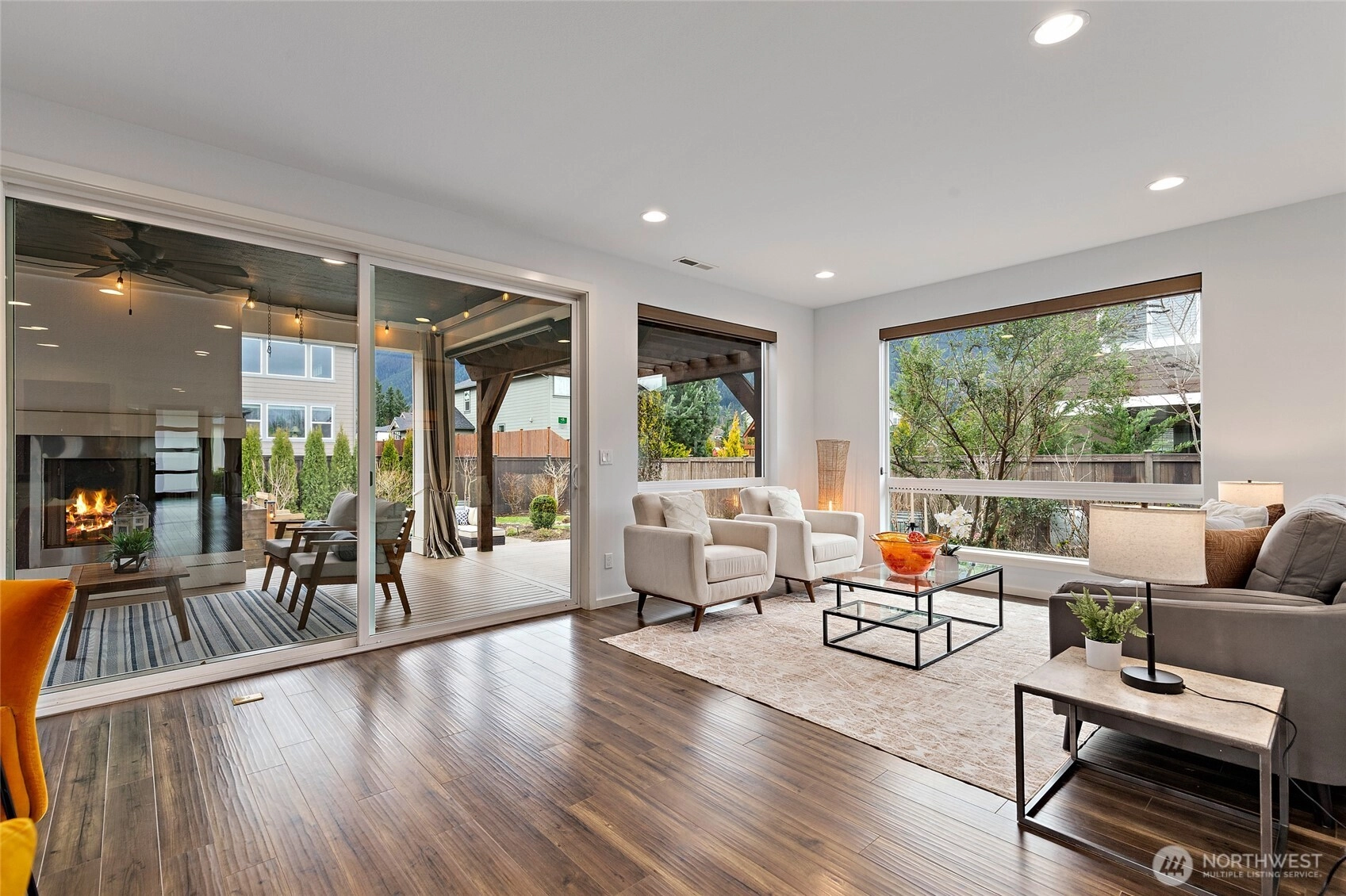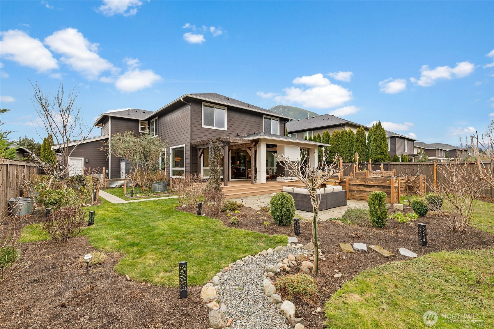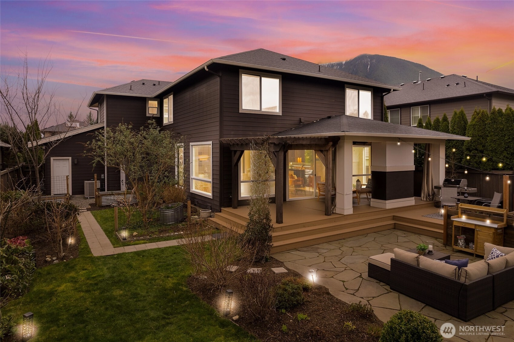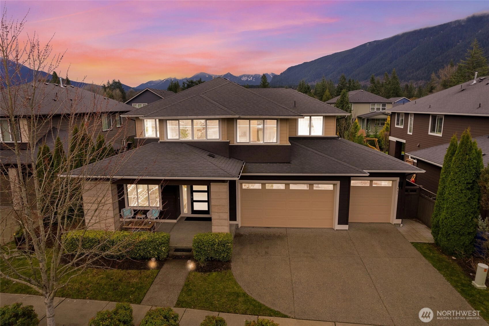 Experience refined Northwest living in this beautifully curated MainVue resale, where thoughtful design and modern elegance come together seamlessly. A true showpiece, the chef’s kitchen commands attention with an oversized entertainer’s island, premium finishes, and effortless flow into sun-soaked living spaces framed by dramatic floor-to-ceiling windows and designer lighting. Upstairs, unwind in the inviting primary retreat featuring a luxurious five-piece spa bath and an expansive walk-in dressing room designed for both comfort and sophistication. Three additional bedrooms — each with its own walk-in closet — along with a full bath and versatile leisure room, offer flexibility for guests, work-from-home needs, or media space. Fresh interior paint and brand-new carpet create a crisp, like-new feel throughout. Step outside to your thoughtfully updated outdoor sanctuary, complete with a cozy fireplace, lush garden beds, and peaceful North Bend views — an ideal backdrop for year-round entertaining or quiet evenings under the stars. Located just minutes from scenic hiking trails, local dining, and everyday conveniences, this exceptional home offers the perfect balance of luxury, comfort, and Pacific Northwest beauty.