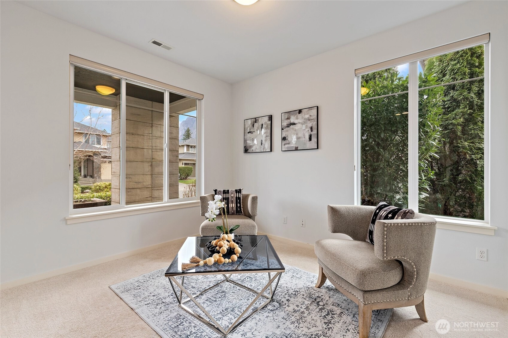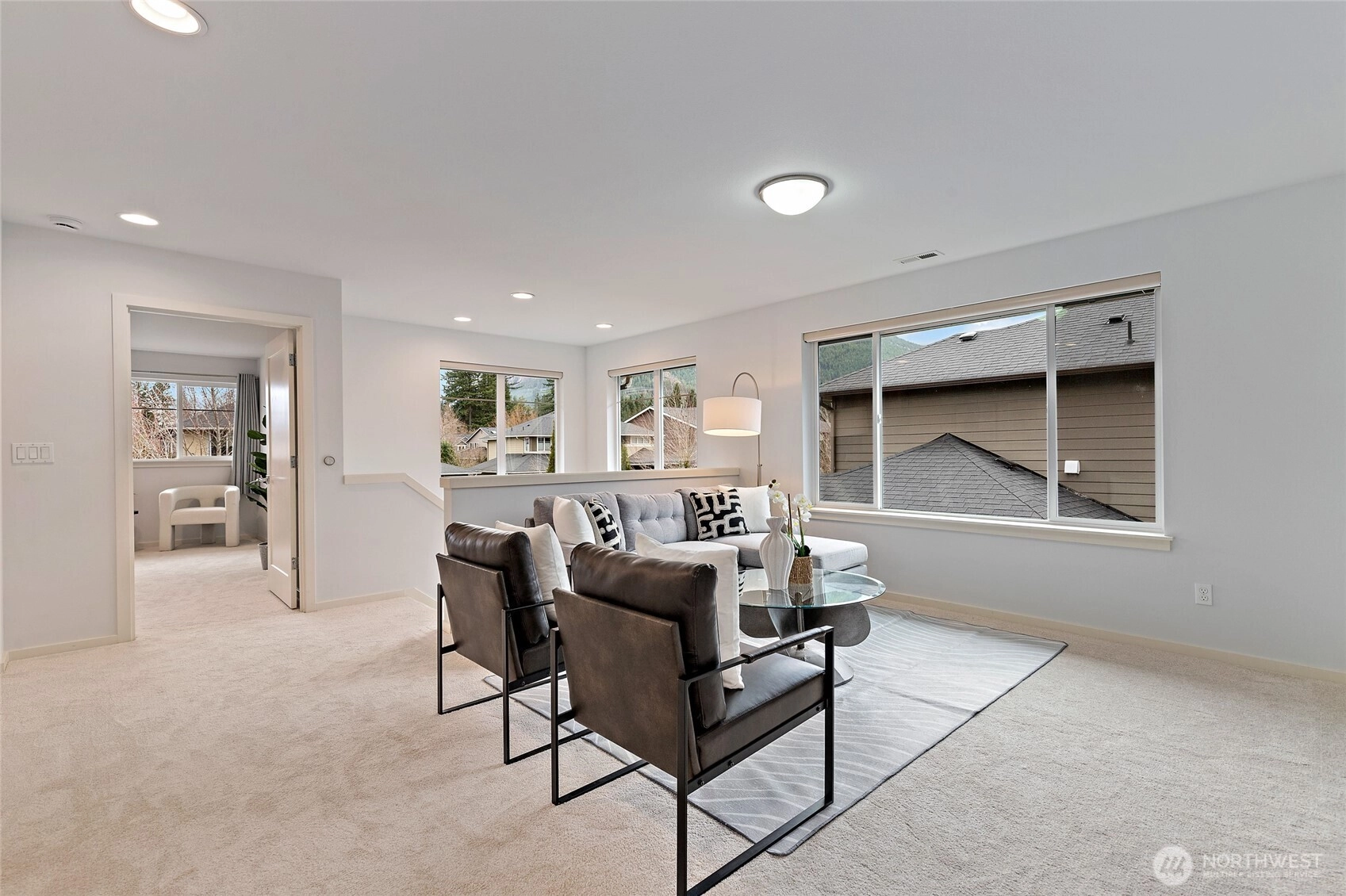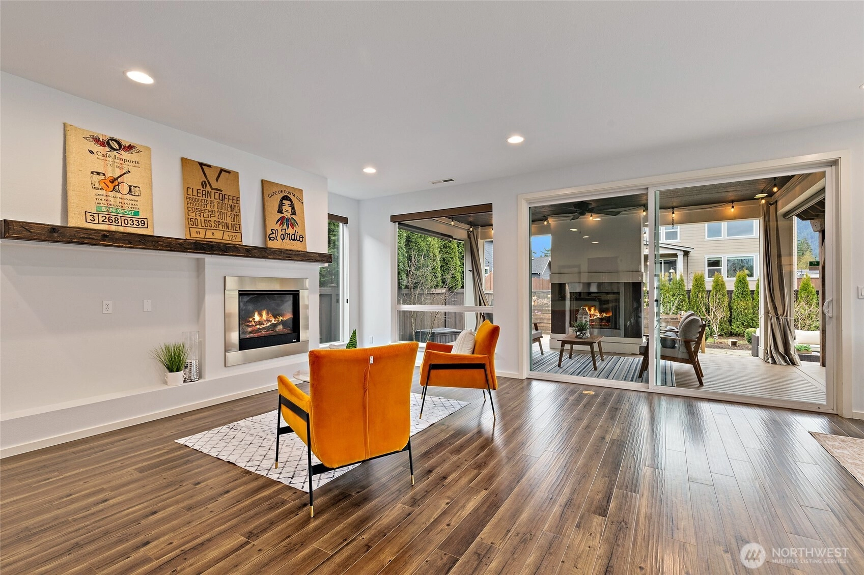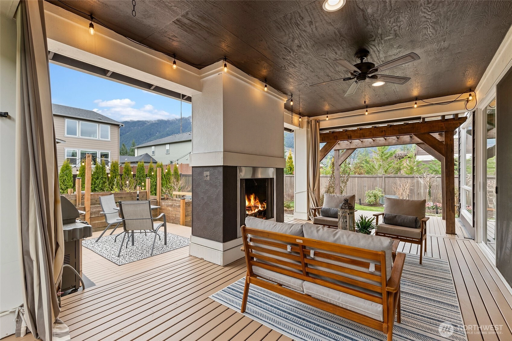 Experience refined Northwest living in this beautifully curated MainVue resale, where thoughtful design and modern elegance come together seamlessly. A true showpiece, the chef’s kitchen commands attention with an oversized entertainer’s island, premium finishes, and effortless flow into sun-soaked living spaces framed by dramatic floor-to-ceiling windows and designer lighting. Upstairs, unwind in the inviting primary retreat featuring a luxurious five-piece spa bath and an expansive walk-in dressing room designed for both comfort and sophistication. Three additional bedrooms — each with its own walk-in closet — along with a full bath and versatile leisure room, offer flexibility for guests, work-from-home needs, or media space. Fresh interior paint and brand-new carpet create a crisp, like-new feel throughout. Step outside to your thoughtfully updated outdoor sanctuary, complete with a cozy fireplace, lush garden beds, and peaceful North Bend views — an ideal backdrop for year-round entertaining or quiet evenings under the stars. Located just minutes from scenic hiking trails, local dining, and everyday conveniences, this exceptional home offers the perfect balance of luxury, comfort, and Pacific Northwest beauty.