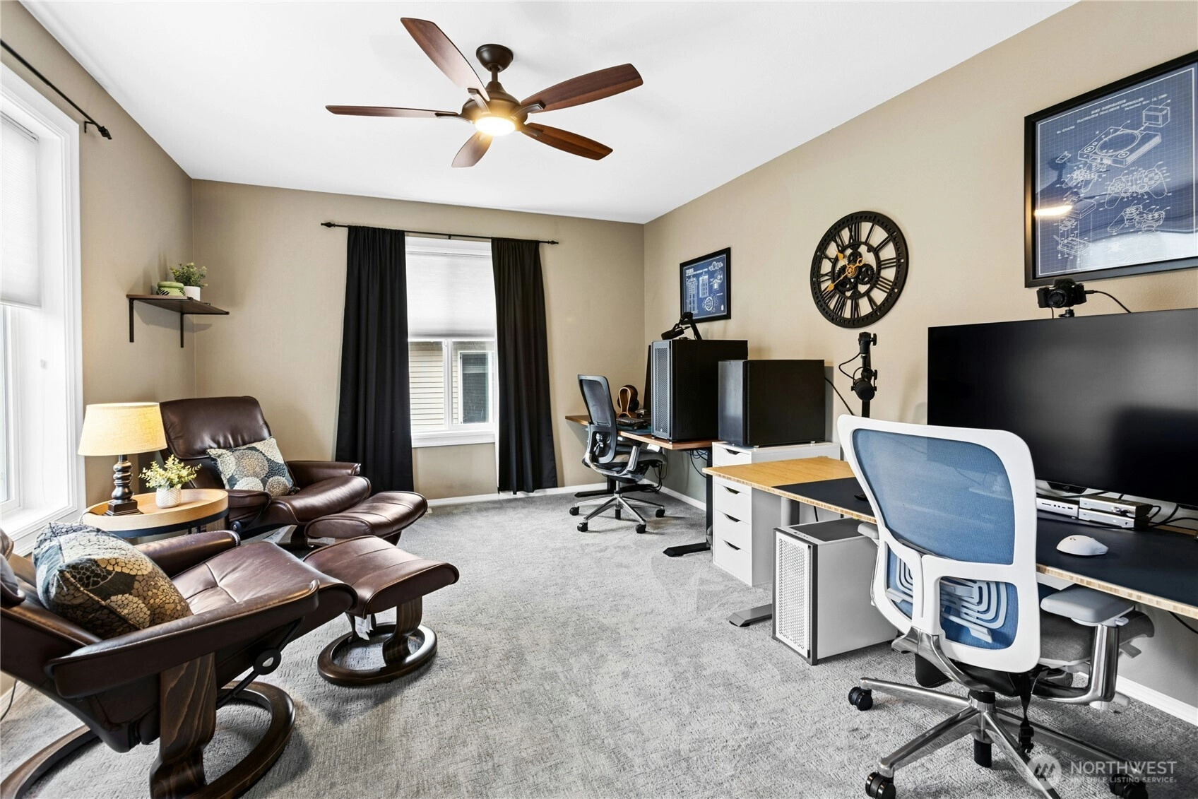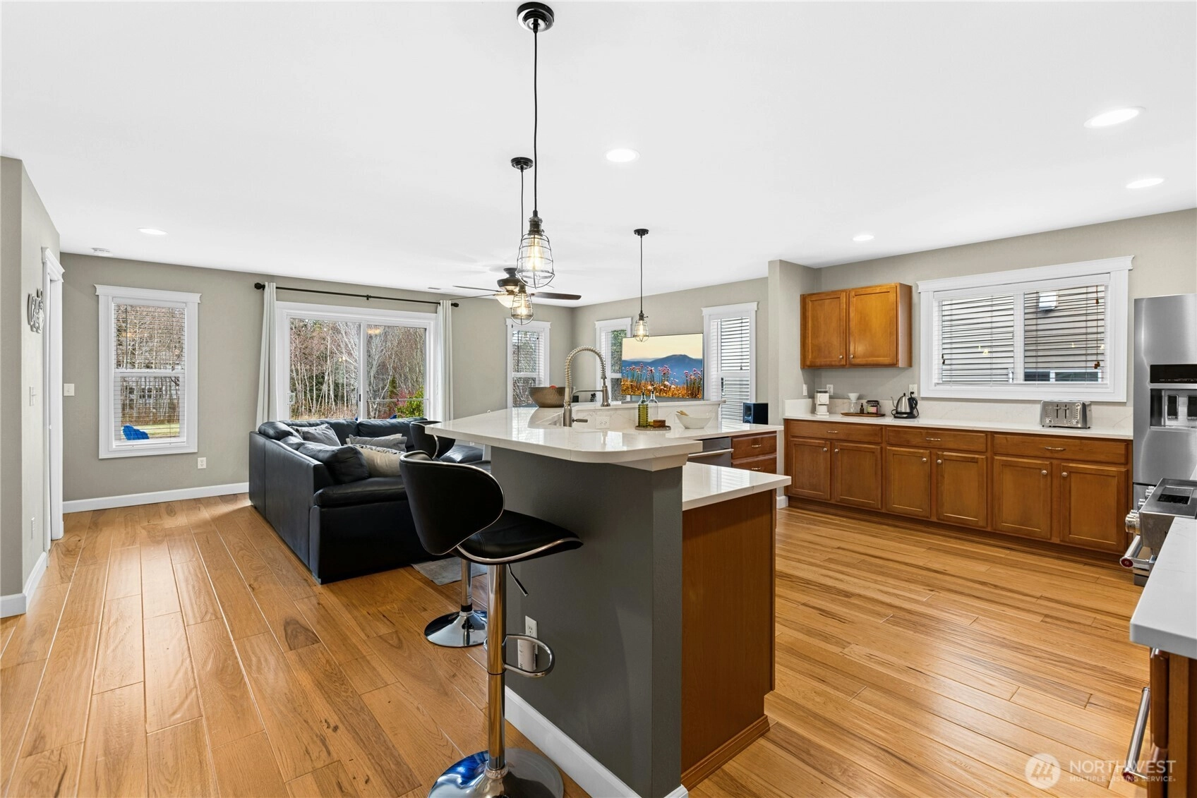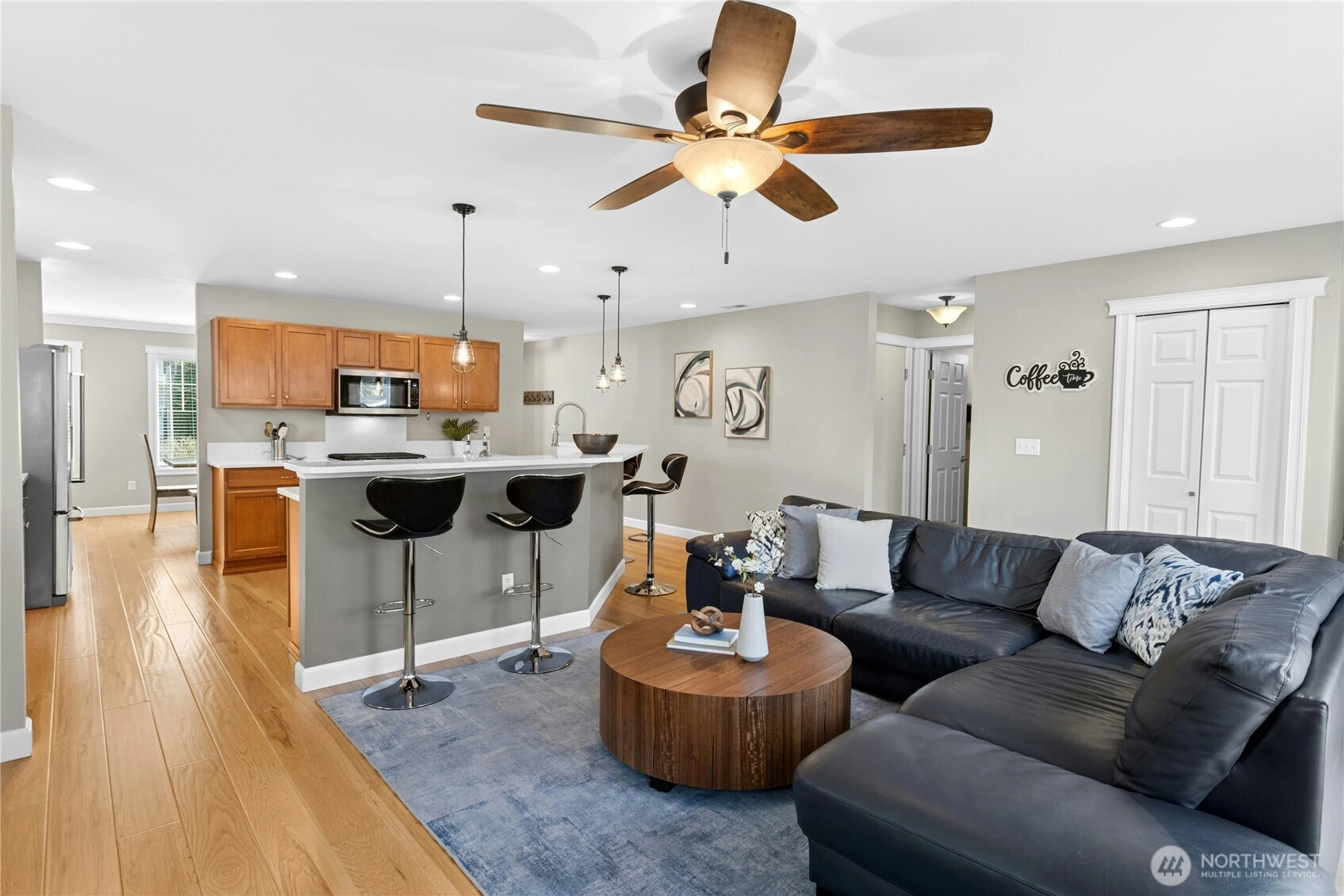 Come discover this move-in ready gem in the quiet, desirable Deer Park neighborhood, a short stroll from Swenson Park. From the moment you step inside, you’ll appreciate the warm, functional layout and beautiful engineered hardwood flooring. The kitchen is centrally located on the main floor, adjacent to the spacious dining room with abundant natural light. The kitchen features newer quartz countertops and stainless steel KitchenAid appliances, a breakfast bar, abundant wood cabinetry, and a large, walk-in pantry. The family room is open to the kitchen and has a sliding glass door leading to the great outdoors. Upstairs you will find 3 comfortable bedrooms, 2 full baths, laundry, plus a versatile bonus room, ideal for a home office, playroom, or flex space. The generous primary suite is inviting and provides a peaceful retreat with a generous walk-in closet and a private en suite bath with dual sinks and tile flooring. Recent home updates include newer: carpet, washer and dryer, water heater, furnace, and central air conditioning! The home is thoughtfully wired with ethernet in every room for today’s connected lifestyle. Step outside to enjoy a large patio and an expansive, flat backyard—ideal for relaxing, play, pets, or gatherings. The 3-car tandem garage offers ample storage, is EV-level2 ready, and includes a generator hookup. Ideally located near parks, trails, a golf course, schools, shopping, and with easy access to I-90, this well-maintained home checks all the boxes!