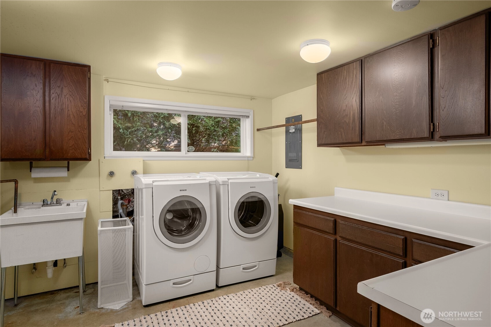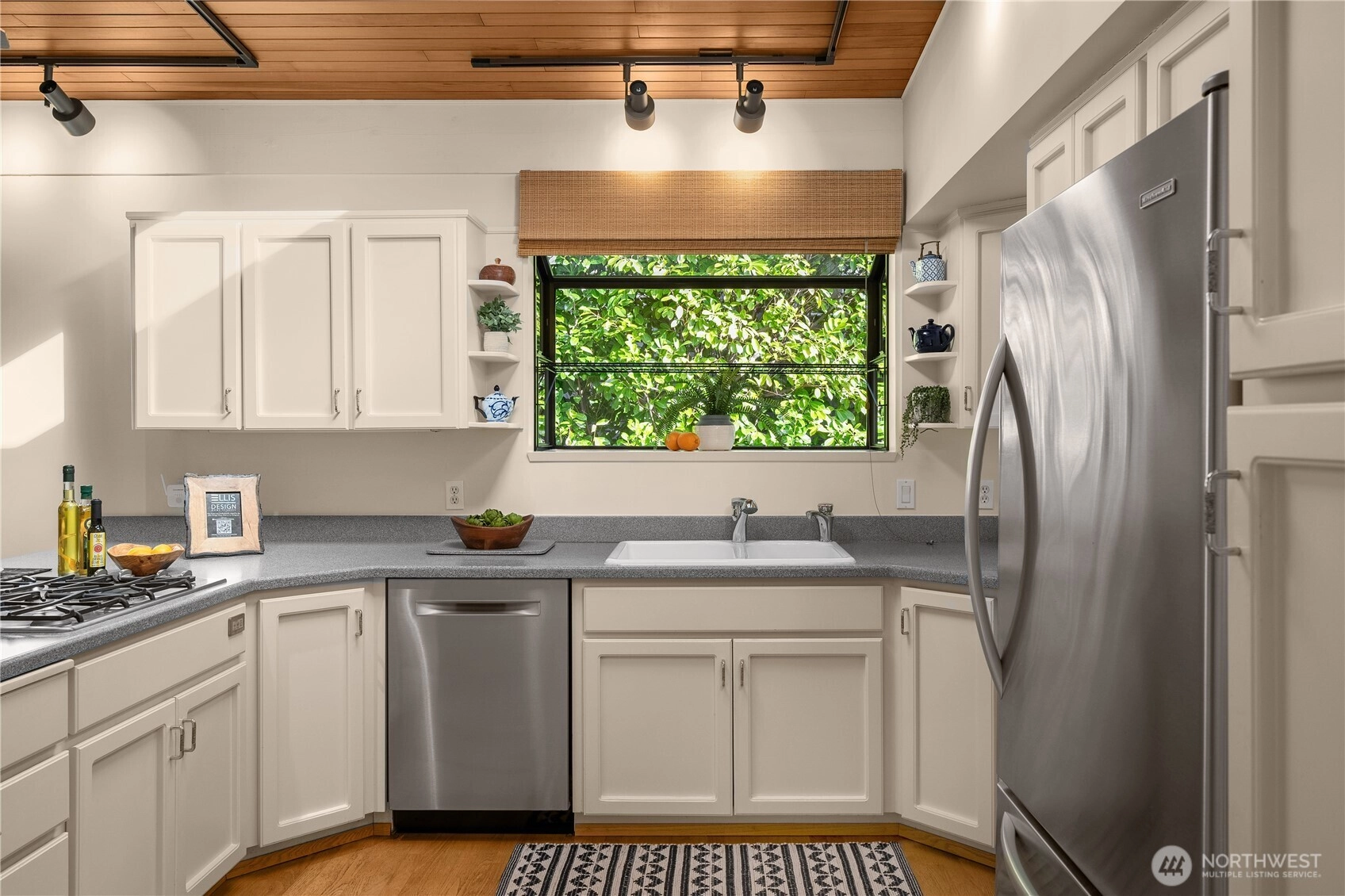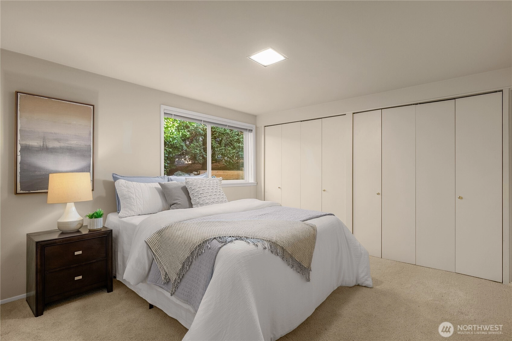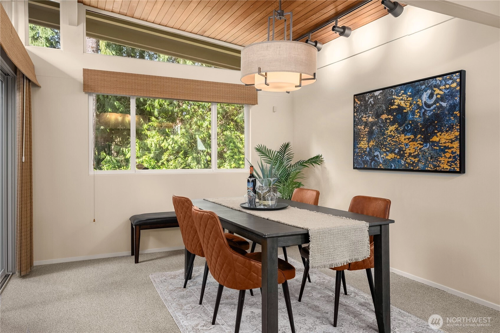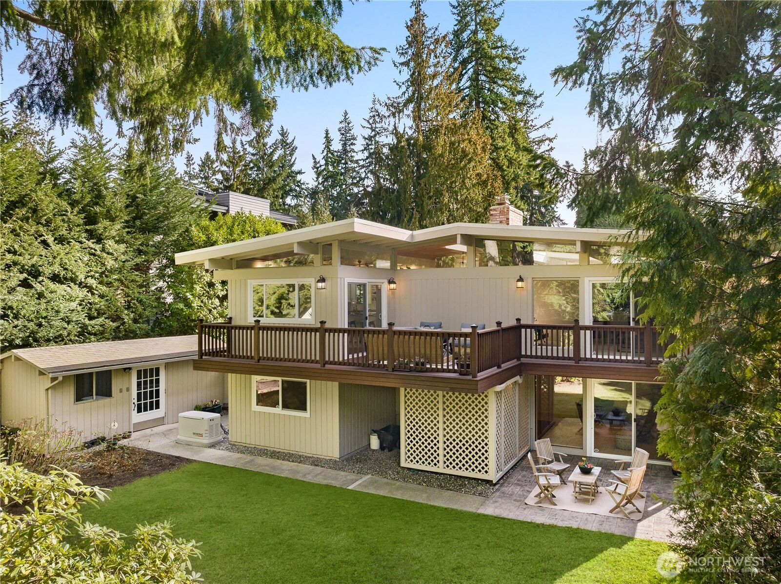 A rare find! Quality Mid-Century Modern on a private & generous 14,250 sq ft lot in a friendly north end neighborhood. Exceptionally well-maintained & move-in ready! Classic mid-century features: vaulted ceilings, skylights, clerestory windows & gorgeous cedar tongue-and-groove. Enjoy easy indoor/outdoor living with multiple places to unwind: welcoming front courtyard, private back deck & patio, and a large, level backyard. Spacious primary suite on the main floor. 4 Bedrooms plus 5th semi-finished BR with a separate entry—ideal for home business, studio, gym or future ADU concept. Updated systems including main-level A/C + whole-house generator. Convenient north end location near Northwood Elementary, parks, trails to town center, and I-90