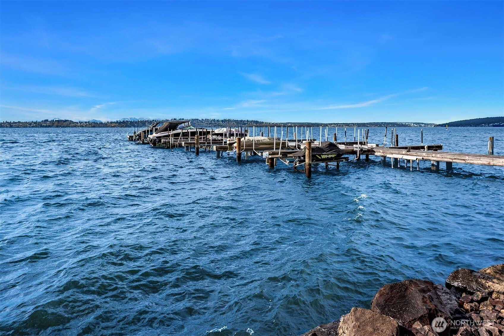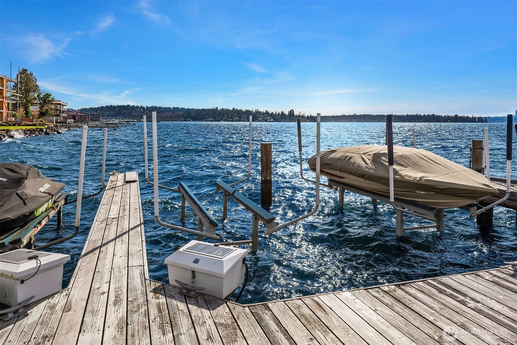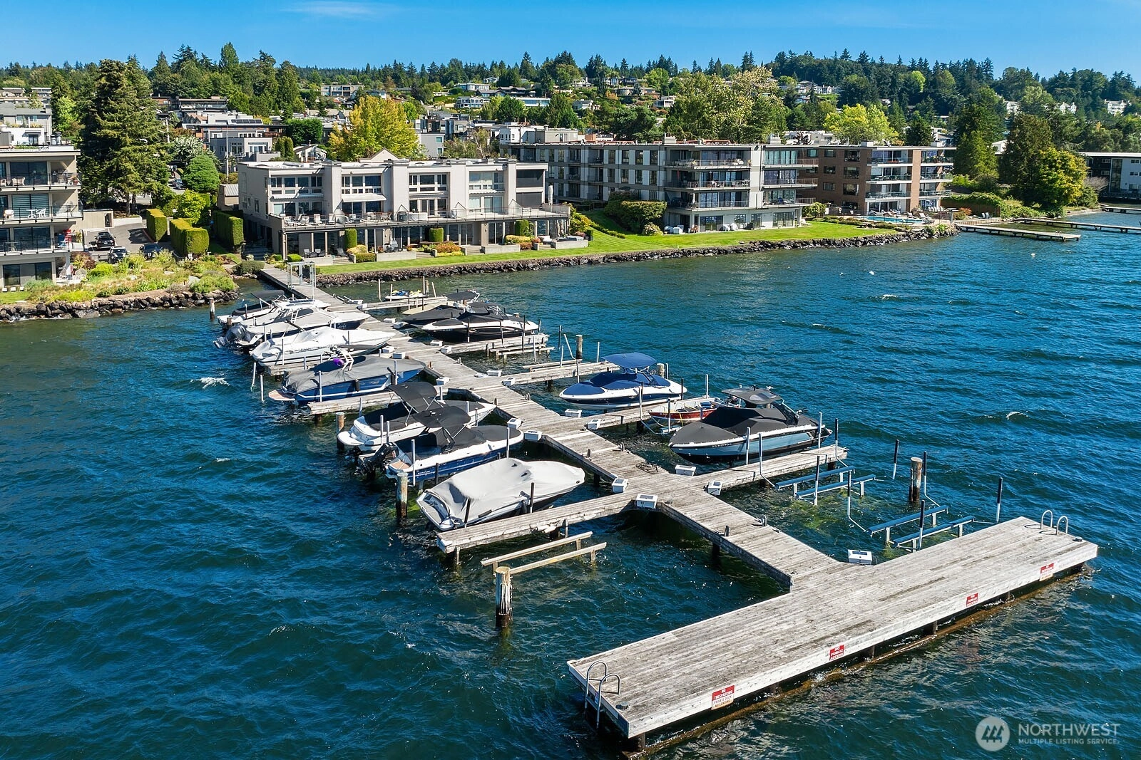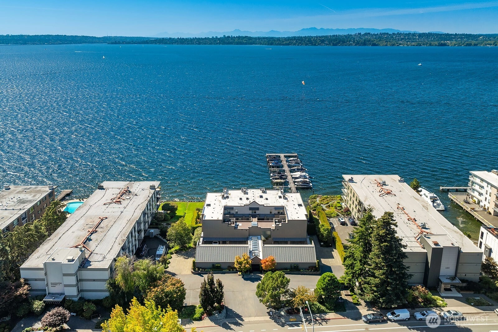 Memorable Sunsets. Unmatched Waterfront Living. Welcome to Pierpointe, Kirkland’s most coveted boutique waterfront community "on the boulevard." This rare west-facing, ground-level residence offers over 1,600 square feet of refined living space with no stairs to access the unit and sweeping, unobstructed panoramic views of Lake Washington, the Olympic Mountains, and the iconic Downtown Seattle skyline. Designed for both comfort and entertaining, this 2-bedroom, 1.75-bath home features an expansive waterfront patio-perfect for soaking in dramatic sunsets year-round. The spacious primary suite includes a jetted soaking tub, creating a peaceful retreat at the end of the day. Parking and storage are truly exceptional: three parking spaces (including two in a secure, gated garage) plus abundant in-unit storage and an additional dedicated storage closet within the building-an incredibly rare offering for waterfront living. Built in 1985 with durable real stucco construction, Pierpointe is an exclusive nine-unit community with secure access, offering privacy and a boutique residential experience. Just a leisurely stroll to waterfront parks, beaches, marinas, and the vibrant dining, shopping, and amenities of downtown Kirkland, this extraordinary residence also includes a deeded boat slip with a new lift, completing the ultimate Pacific Northwest waterfront lifestyle.