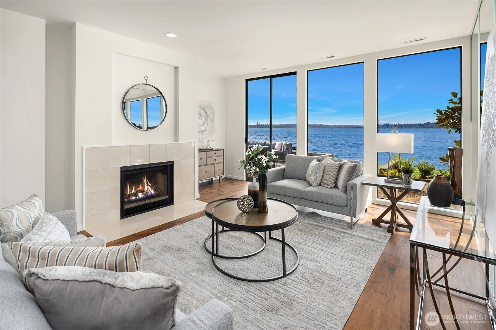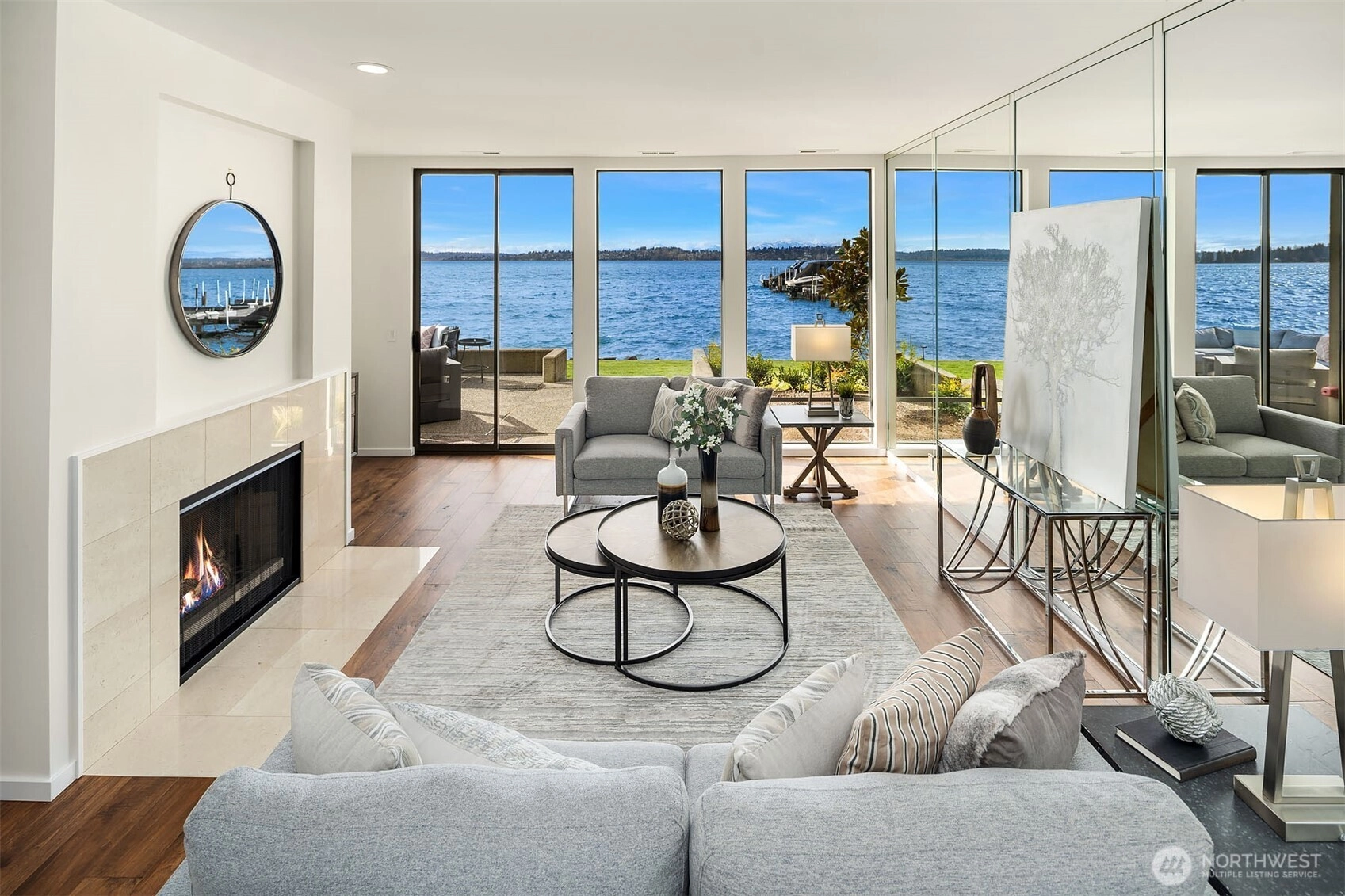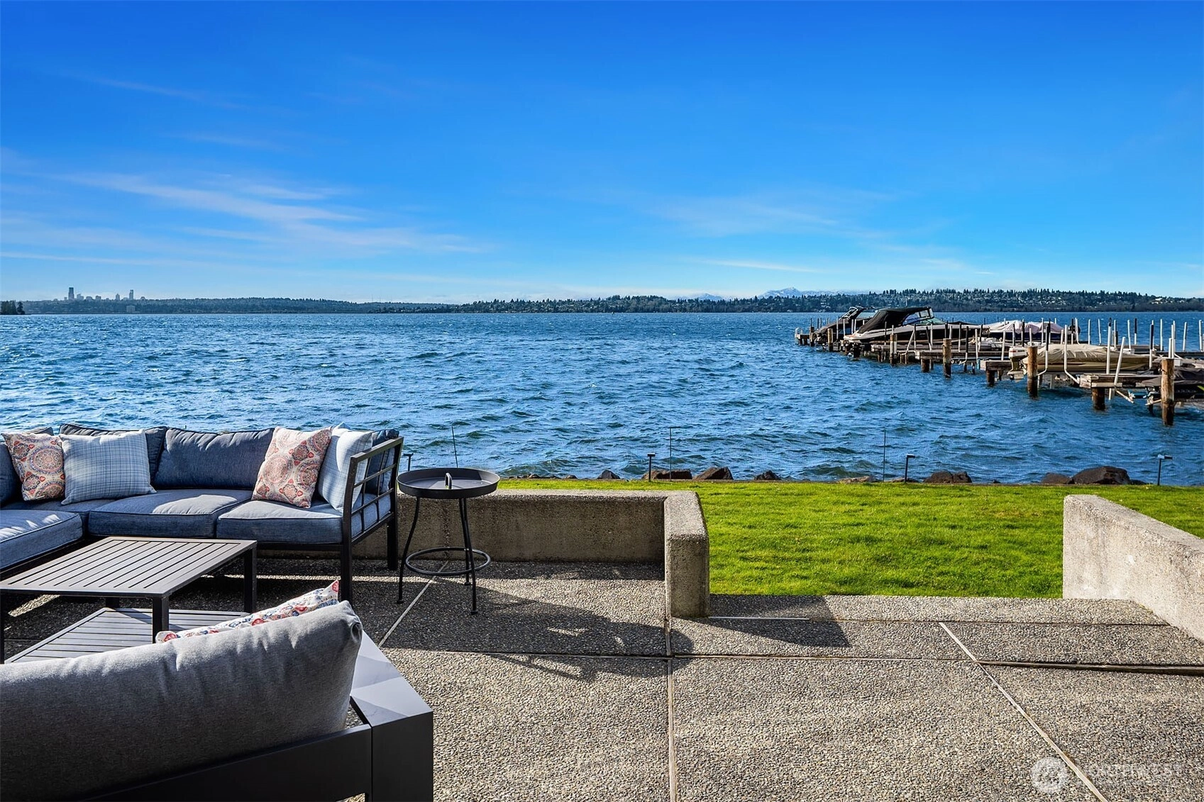 Memorable Sunsets. Unmatched Waterfront Living. Welcome to Pierpointe, Kirkland’s most coveted boutique waterfront community "on the boulevard." This rare west-facing, ground-level residence offers over 1,600 square feet of refined living space with no stairs to access the unit and sweeping, unobstructed panoramic views of Lake Washington, the Olympic Mountains, and the iconic Downtown Seattle skyline. Designed for both comfort and entertaining, this 2-bedroom, 1.75-bath home features an expansive waterfront patio-perfect for soaking in dramatic sunsets year-round. The spacious primary suite includes a jetted soaking tub, creating a peaceful retreat at the end of the day. Parking and storage are truly exceptional: three parking spaces (including two in a secure, gated garage) plus abundant in-unit storage and an additional dedicated storage closet within the building-an incredibly rare offering for waterfront living. Built in 1985 with durable real stucco construction, Pierpointe is an exclusive nine-unit community with secure access, offering privacy and a boutique residential experience. Just a leisurely stroll to waterfront parks, beaches, marinas, and the vibrant dining, shopping, and amenities of downtown Kirkland, this extraordinary residence also includes a deeded boat slip with a new lift, completing the ultimate Pacific Northwest waterfront lifestyle.