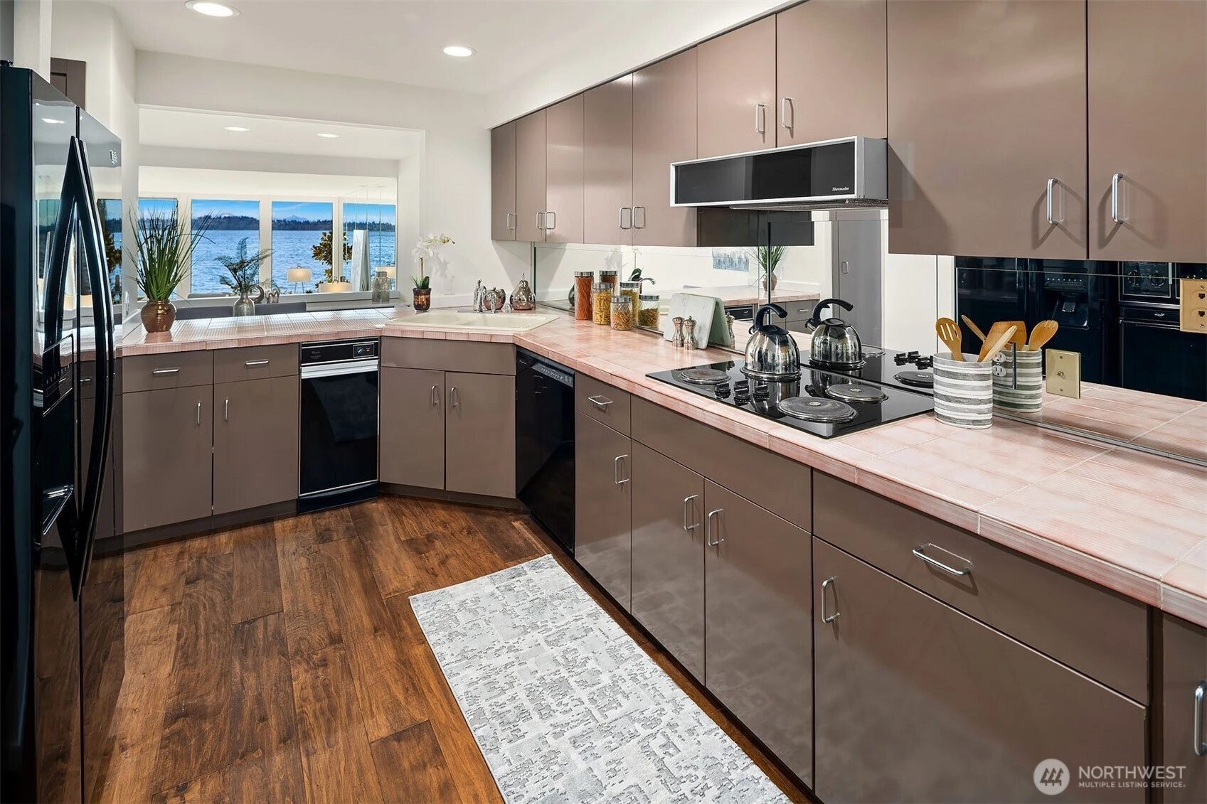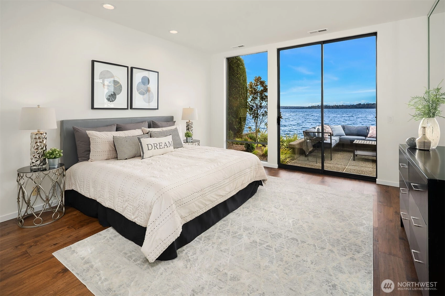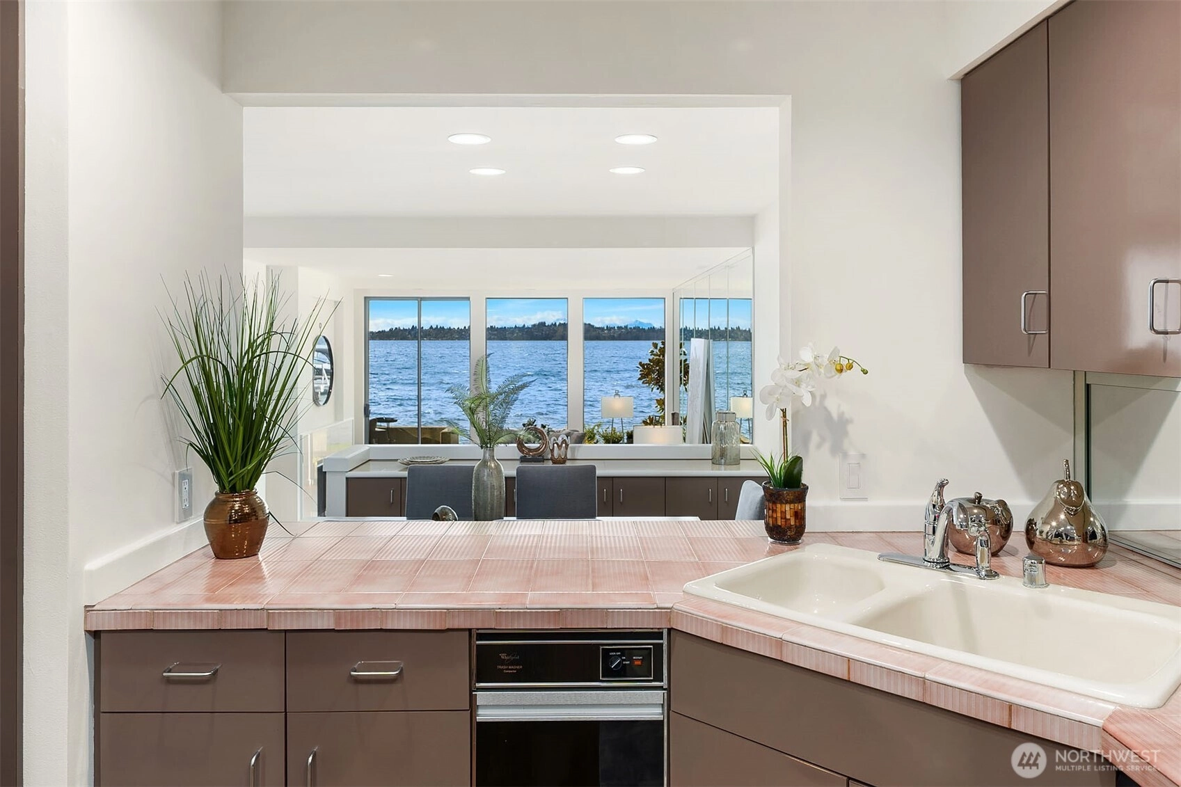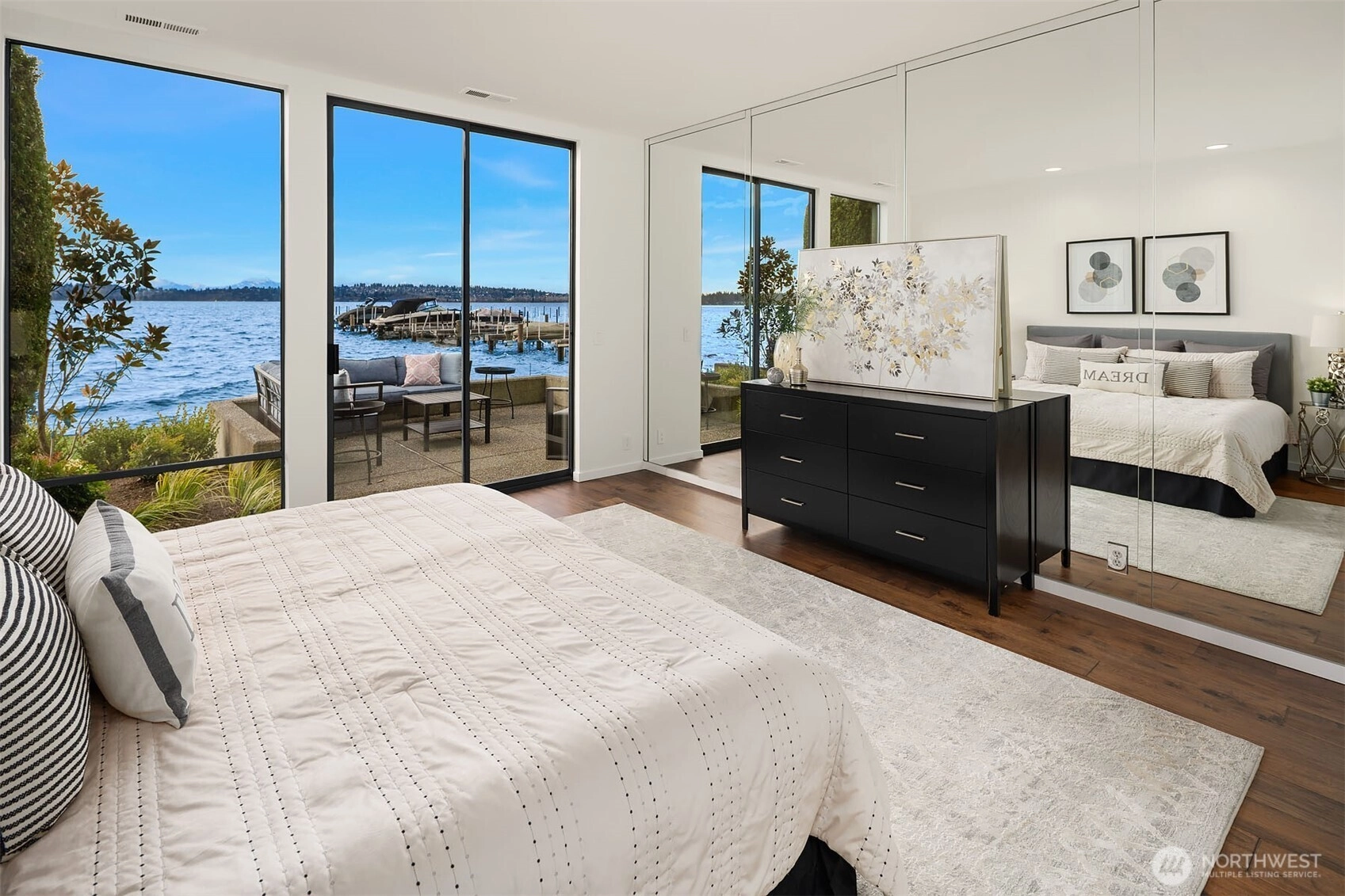 Memorable Sunsets. Unmatched Waterfront Living. Welcome to Pierpointe, Kirkland’s most coveted boutique waterfront community "on the boulevard." This rare west-facing, ground-level residence offers over 1,600 square feet of refined living space with no stairs to access the unit and sweeping, unobstructed panoramic views of Lake Washington, the Olympic Mountains, and the iconic Downtown Seattle skyline. Designed for both comfort and entertaining, this 2-bedroom, 1.75-bath home features an expansive waterfront patio-perfect for soaking in dramatic sunsets year-round. The spacious primary suite includes a jetted soaking tub, creating a peaceful retreat at the end of the day. Parking and storage are truly exceptional: three parking spaces (including two in a secure, gated garage) plus abundant in-unit storage and an additional dedicated storage closet within the building-an incredibly rare offering for waterfront living. Built in 1985 with durable real stucco construction, Pierpointe is an exclusive nine-unit community with secure access, offering privacy and a boutique residential experience. Just a leisurely stroll to waterfront parks, beaches, marinas, and the vibrant dining, shopping, and amenities of downtown Kirkland, this extraordinary residence also includes a deeded boat slip with a new lift, completing the ultimate Pacific Northwest waterfront lifestyle.