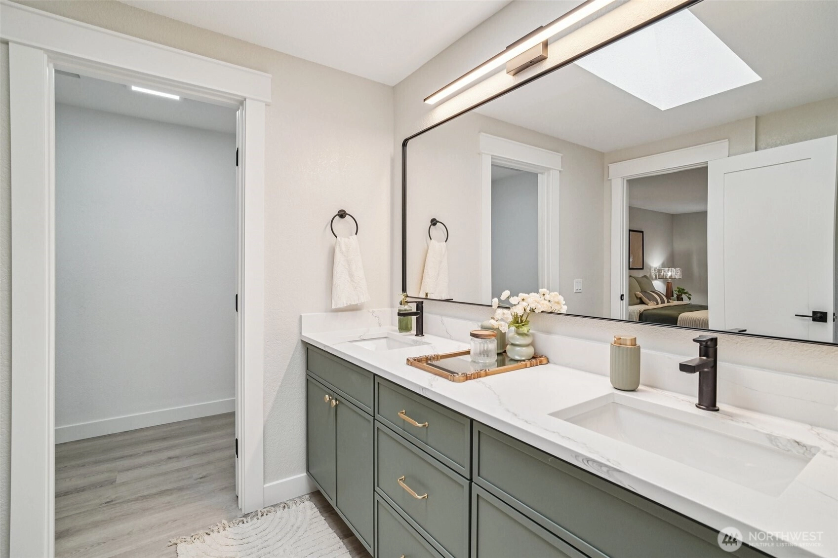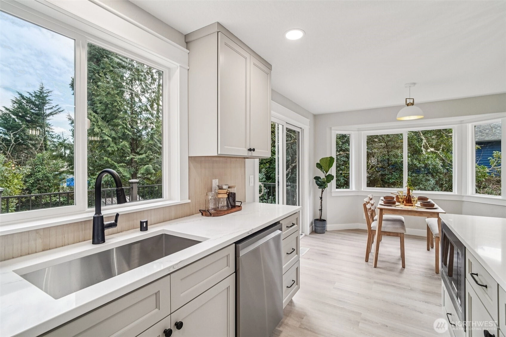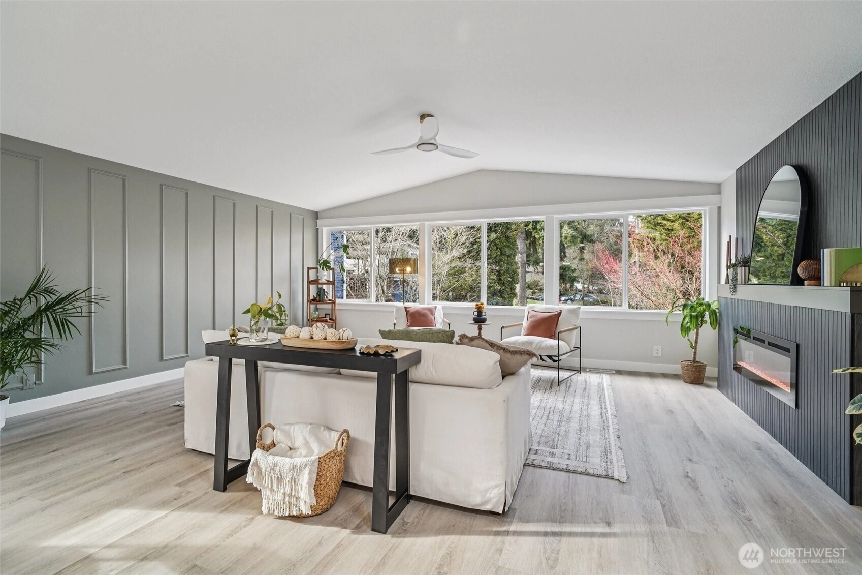21620 84th Pl W, Edmonds, WA: Nestled on a lush 18,730 sq ft lot in a quiet Edmonds setting, this beautifully updated 4-bedroom, 2.5-bath home offers the perfect blend of privacy, natural light, and functional living. The highly desirable layout features 3 bedrooms on one level, including a spacious primary suite with walk-in closet & ensuite bath. The main living level showcases vaulted ceilings, expansive picture windows, and abundant natural light, creating a warm and inviting atmosphere. A cozy fireplace anchors the living room, which flows seamlessly into the open dining area—ideal for hosting gatherings of 8-10+ guests. The kitchen offers generous prep space, ample cabinetry, and a sunny breakfast nook overlooking the tranquil backyard. Step outside to a large entertainment deck and experience a truly special outdoor setting. The expansive yard features mature landscaping, play space, storage, and even trails, offering a rare park-like environment with future DADU potential (buyer to verify). Every window captures peaceful greenery that evolves beautifully with the seasons.The lower level provides excellent flexibility with a bonus room that could also function as a 4th bed, along with a full laundry room and convenient powder bath. An attached two bay garage plus generous driveway parking adds everyday convenience. Freshly planted lawn, pre-inspection available, and move-in ready. This Edmonds home delivers privacy, space, and versatility—minutes from parks, amenities.