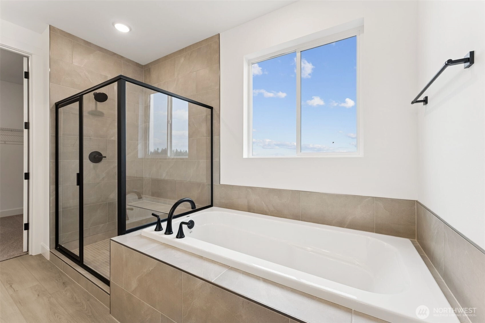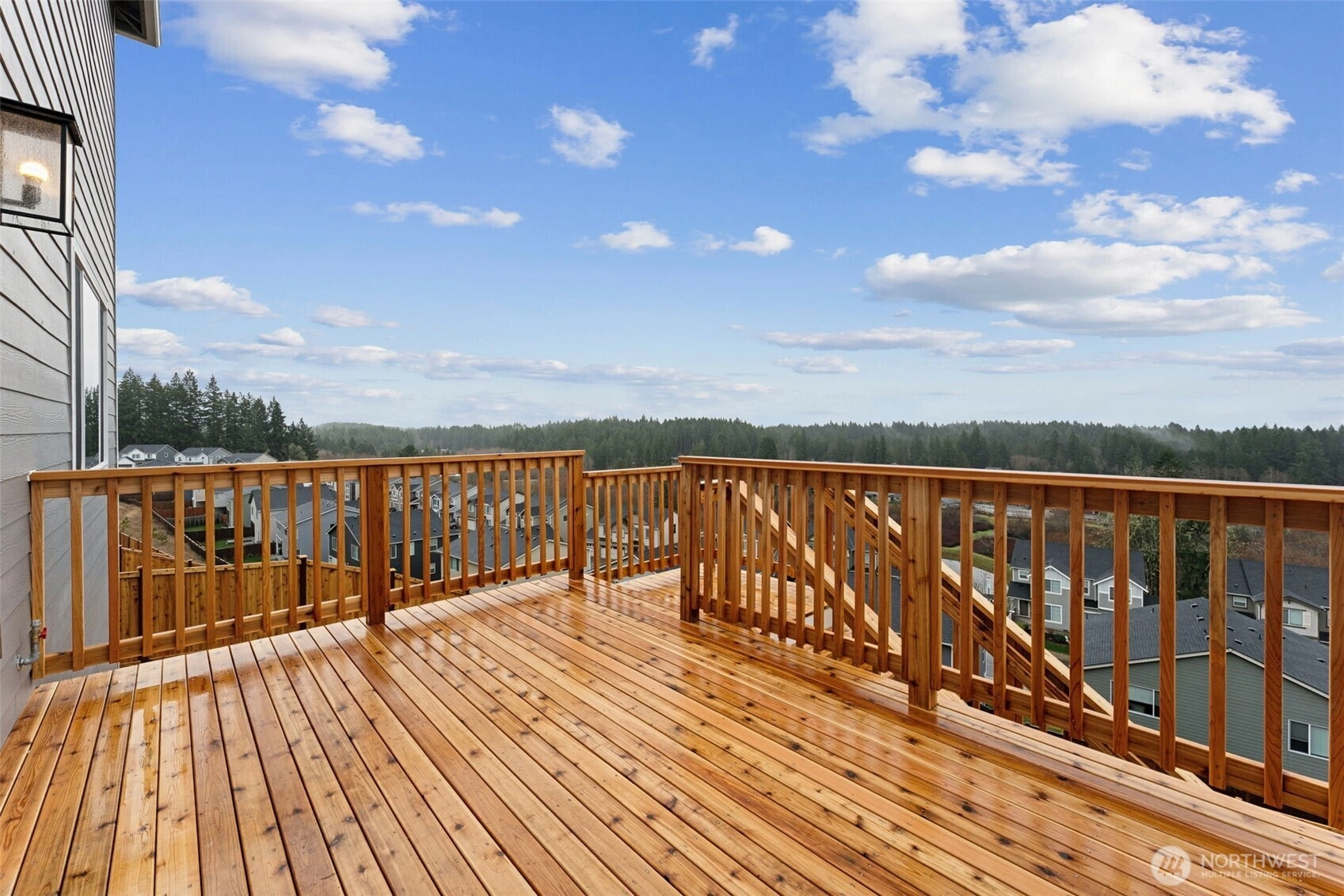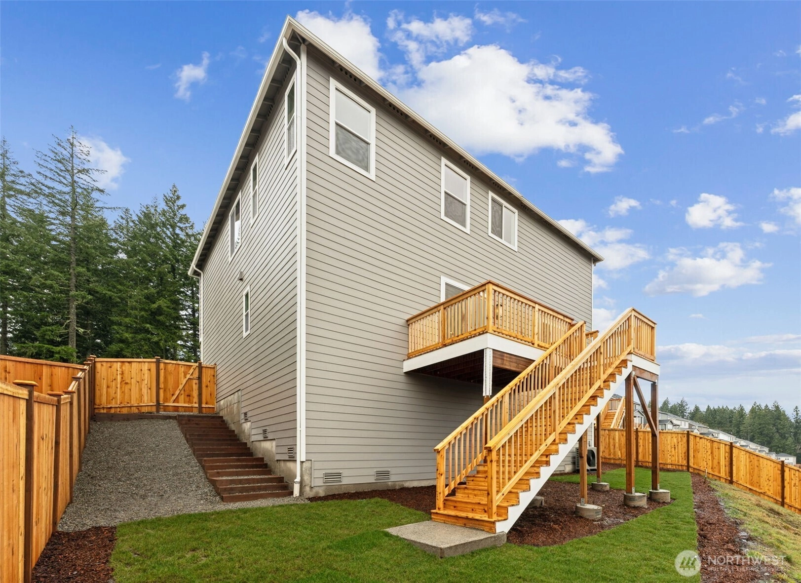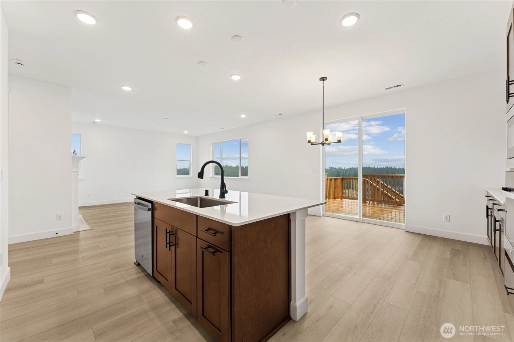 Near the top of the community this contemporary style Coronado plan greets you with a dramatic high ceiling entry and views of the Cascades and Seattle skyline from both floors. The main floor of this inviting home offers an open layout with a spacious great room, kitchen with quartz counters, and walk in pantry. Before leaving the main floor you will also find an additional bedroom and three quarter bathroom. Upstairs is a versatile loft and three generous bedrooms, including a lavish primary suite with an expansive walk-in closet, soaking tub, and walk-in shower. Home comes complete with a fully landscaped front yard with sprinkler system and a fully fenced backyard. Central air conditioning and EV charger included. If you are working with a licensed real estate agent please register agent on your first visit to the community per our site registration policy. Ask about Special Financing!
