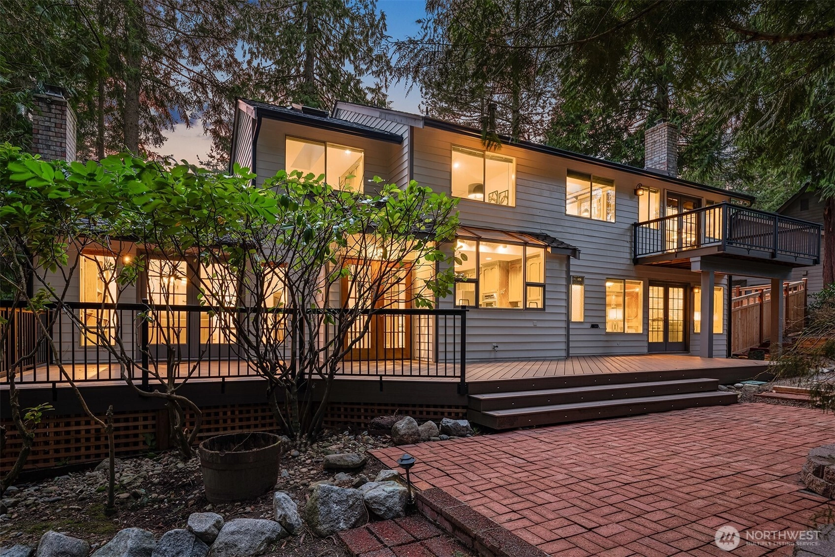 Exceptional residence within the gated community of Sahalee Estates, just steps from the fairways of Sahalee Country Club. Offering 3,415 SQ FT of living space, this 4 BR,2.75-bath home blends warmth & timeless character. A welcoming main-level entry with soaring ceilings & detailed wainscoting, setting the tone for classic elegance. Formal living room, illuminated by expansive windows, invites gatherings, dining room provides a refined setting. The center of the home, the kitchen features rich cabinetry, granite countertops, SS appliances, & gas cooktop, with picturesque golf course views. Beyond glass doors inspired by Frank Lloyd Wright, the cozy family room offers a fireplace & built-ins, ideal for everyday living. A spacious bonus room w/fireplace & wall-length bookcase provides flexibility as a media/private retreat. Upstairs, double French doors reveal the expansive primary suite, complete with a balcony overlooking the course, a generous walk-in closet, & a five-piece ensuite dual vanities & separate shower. An adjoining home office or fourth bedroom. Three additional bedrooms and a full guest bath offer ample space. Outside, a new deck and mature landscaping along the 3 South fairway create a private retreat. With a three-car garage and proximity to Metropolitan Market, Trader Joe’s, Costco, dining, entertainment, downtown Redmond, Highway 520, and Microsoft, all within the Lake Washington School District, this Sahalee home is truly exceptional.