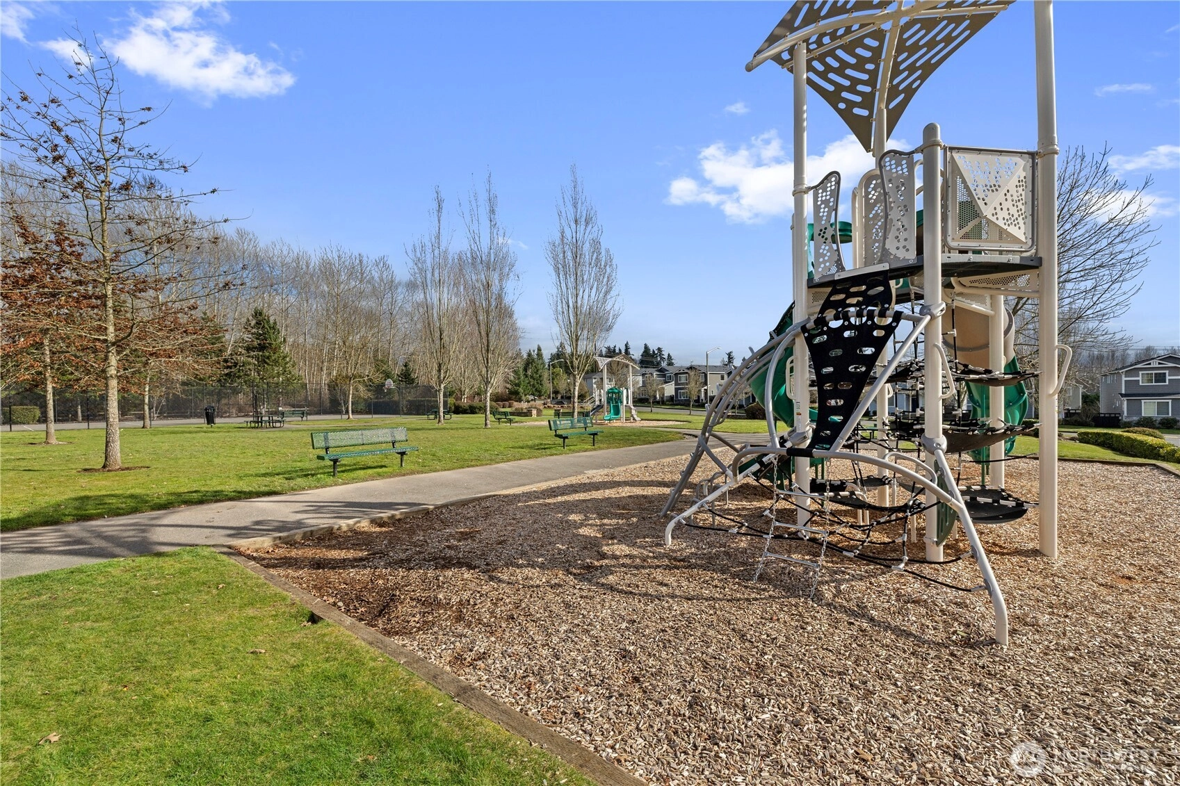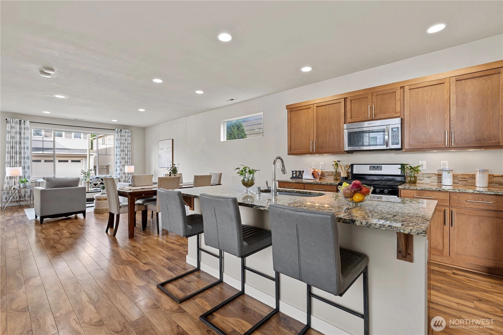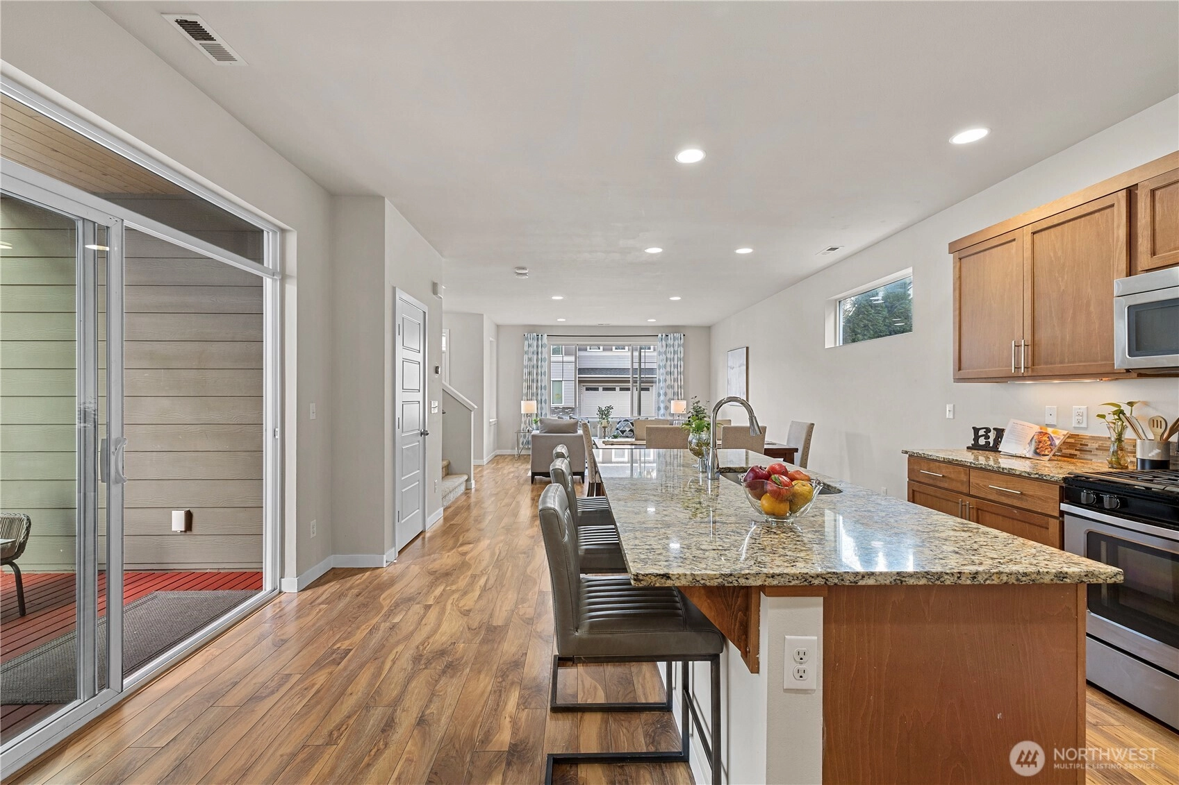 Experience elevated living in The Bridges, one of Auburn’s most sought-after master-planned communities. Ideally positioned on charming “Main Street” w/ alley access, this home offers classic curb appeal w/ the garage discreetly tucked behind for a cleaner, more pedestrian-friendly streetscape. Inside, the open-concept design seamlessly connects the living, dining, & gourmet kitchen—perfect for entertaining or everyday comfort. The kitchen features granite countertops, maple cabinetry, stainless steel appliances, a walk-in pantry, & a generous center island w/ seating. Durable hardwood-style flooring, a main-floor office, & a convenient half-bath add flexibility for modern living. Enjoy year-round comfort & relax or host gatherings on the covered side deck. Upstairs, the vaulted Primary Suite serves as a private retreat with 1.25 ensuite bath, walk-in closet, & offers Mt. Rainier views from the window on clear Pacific North West days. Two bedrooms, a 2nd living or media room, nook, full bath, & laundry complete the 2nd level. The Bridges is known for its interconnected parks, playgrounds, athletic courts, & scenic walking trails woven through protected open space & nature reserve areas. Just minutes to Costco, Trader Joe’s, Green River College, Les Gove Park & Community Center, eats, & everyday services. Easy access to Hwy 18, 167, & I-5 makes commuting throughout Auburn, Kent, Covington, effortless. A rare blend of community charm, thoughtful design, & A+ location!