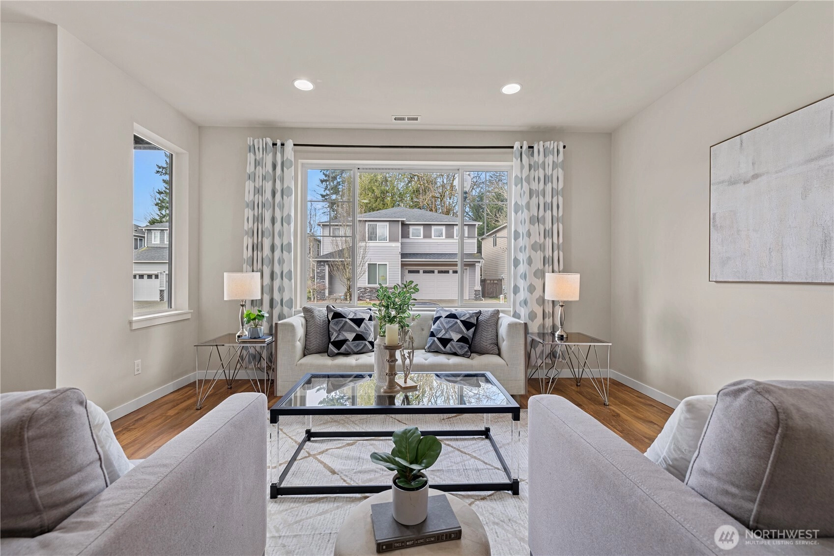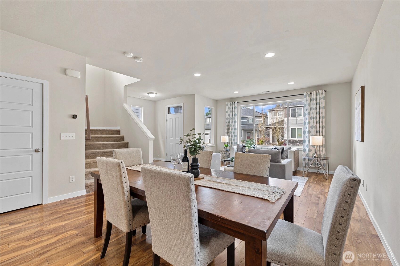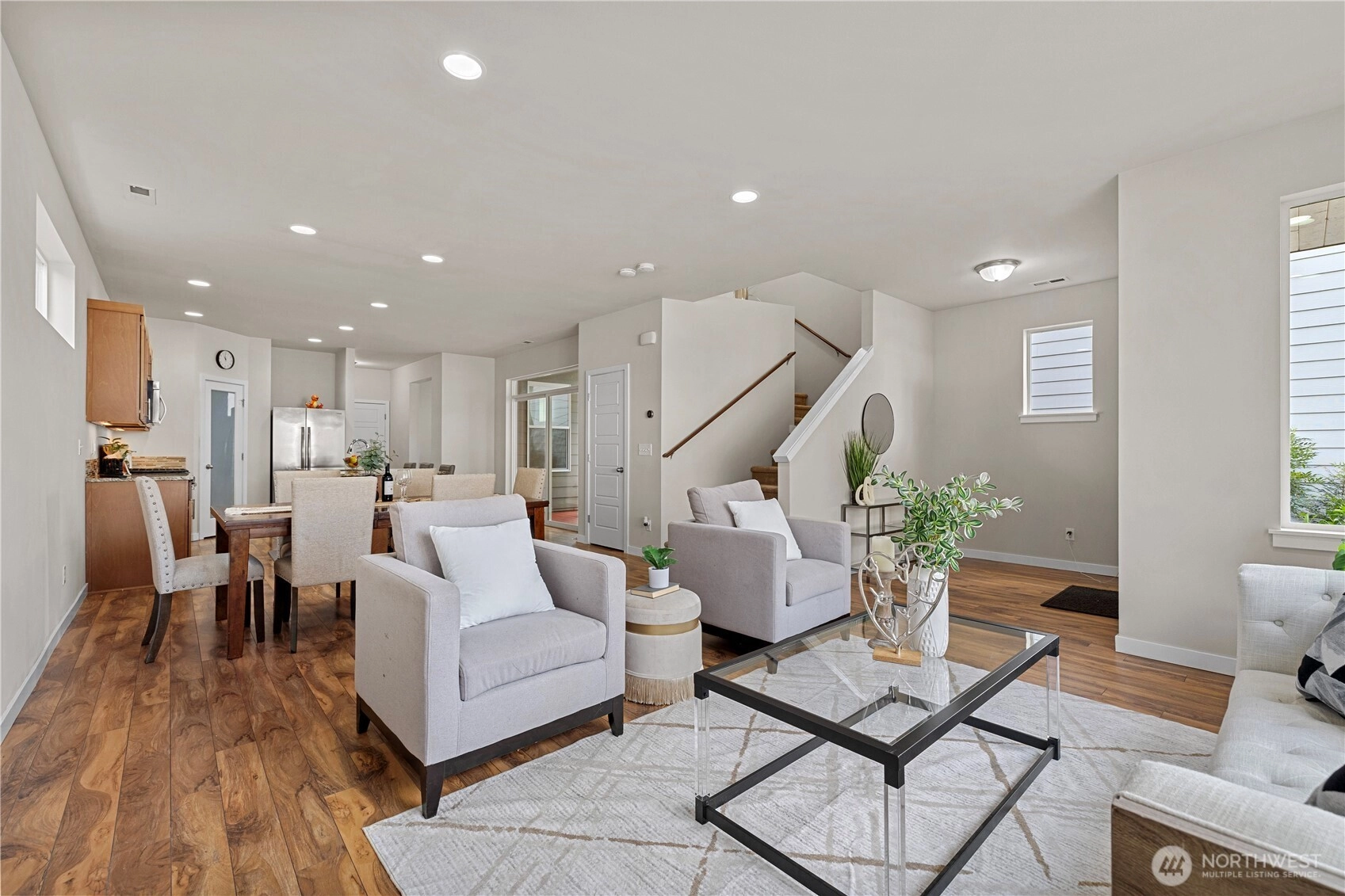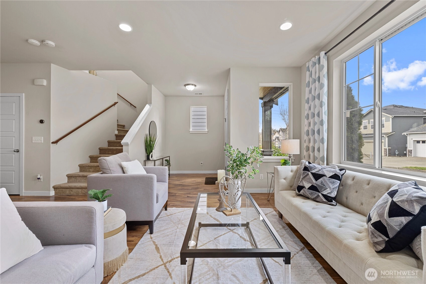 Experience elevated living in The Bridges, one of Auburn’s most sought-after master-planned communities. Ideally positioned on charming “Main Street” w/ alley access, this home offers classic curb appeal w/ the garage discreetly tucked behind for a cleaner, more pedestrian-friendly streetscape. Inside, the open-concept design seamlessly connects the living, dining, & gourmet kitchen—perfect for entertaining or everyday comfort. The kitchen features granite countertops, maple cabinetry, stainless steel appliances, a walk-in pantry, & a generous center island w/ seating. Durable hardwood-style flooring, a main-floor office, & a convenient half-bath add flexibility for modern living. Enjoy year-round comfort & relax or host gatherings on the covered side deck. Upstairs, the vaulted Primary Suite serves as a private retreat with 1.25 ensuite bath, walk-in closet, & offers Mt. Rainier views from the window on clear Pacific North West days. Two bedrooms, a 2nd living or media room, nook, full bath, & laundry complete the 2nd level. The Bridges is known for its interconnected parks, playgrounds, athletic courts, & scenic walking trails woven through protected open space & nature reserve areas. Just minutes to Costco, Trader Joe’s, Green River College, Les Gove Park & Community Center, eats, & everyday services. Easy access to Hwy 18, 167, & I-5 makes commuting throughout Auburn, Kent, Covington, effortless. A rare blend of community charm, thoughtful design, & A+ location!