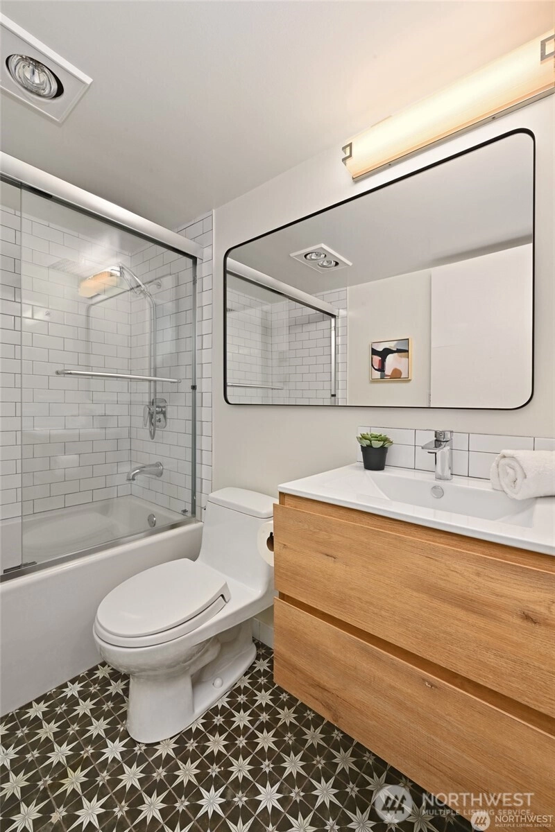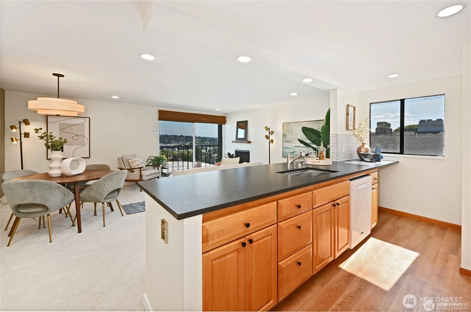 Tastefully updated for modern comfort while honoring its spacious 1977 architecture, this top-floor end unit is a light-filled sanctuary. Southern & eastern exposures flood home with natural light, showcasing nearly 180° unobstructed views from Mount Baker to the Cascades and south. The newly opened kitchen features honed granite counters, tile backsplash, & LVP—perfect for entertaining into the expansive living/dining areas. A fully renovated bathroom adds contemporary style, while generous room sizes offer timeless livability. Nestled down a private lane, enjoy secure parking & a highly efficient HOA w/ low dues. Serene, treehouse-like retreat ideally positioned for both peaceful living & easy access to vibrant culture & outdoor adventure