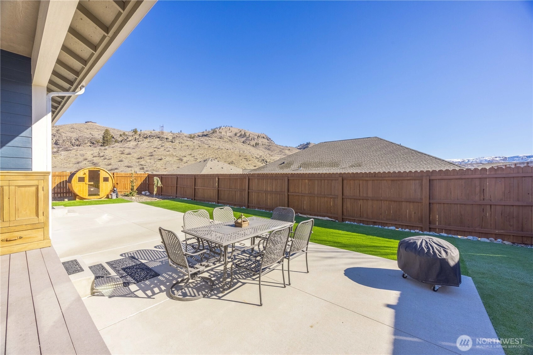 Located in a charming SunCrest community, this gorgeous turnkey rambler offers exceptional convenience within walking distance to the hospital, Walmart, Historic Downtown Chelan, public lake access, and local dining. Thoughtfully designed with an open great room concept and impressive 10’ ceilings throughout, the home feels bright, spacious, and welcoming. The well-appointed kitchen features granite countertops, newer appliances, and a generous walk-in pantry—perfect for everyday living and entertaining. New LVP flooring installed in 2024 adds modern style and durability, while the backyard is already prepped for a future hot tub. A versatile front bedroom provides an ideal space for a home office or guest room. The private primary suite is situated at the rear of the home and includes a large walk-in closet and ensuite bath with dual vanities, soaking tub, and walk-in shower. Enjoy Chelan evenings with a glass of wine from nearby wineries while relaxing on one of two covered porches. Set in a peaceful neighborhood with a low-maintenance yard, this home delivers comfort, convenience, and the sought-after Lake Chelan lifestyle.