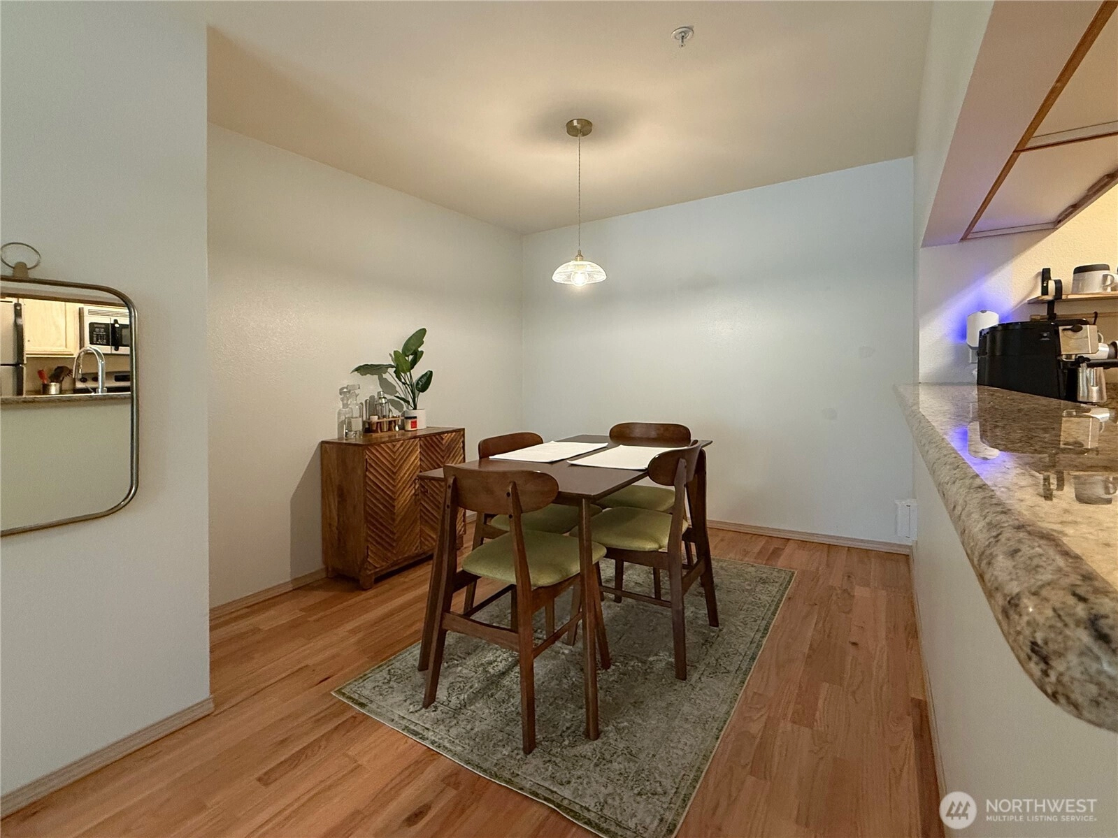 Step into this 2 bedroom, 2 full bath condo located in the secure and sought after Gemstone II building. Featuring beautiful hardwood flooring all throughout with tile located in the kitchen and bathrooms. The kitchen features granite countertops with updated appliances bought within the last five years. All appliances come with the condo, including a front load washer and dryer. The primary suite includes its own private full bath and walk-in closet with built in shelves and ample room for storage. The second bedroom brings in large amounts of sunlight, which can be transformed into a lively office space. This desirable end unit also offers a covered, west-facing balcony which has been newly renovated with brand new support. The deck allows you to enjoy the outdoors while living a city life. A convenient perk of this condo is it comes with a private assigned parking space located in the secure, covered parking garage located underneath the condo building. The garage is equipped with a personal locked storage unit for all your outdoor gear. The condo has an accessible elevator that brings you from the parking garage up to all floors. The elevator can also be accessed by the front lobby. Enjoy a 15 minute drive to downtown Seattle, easy accessibility to public transit, and convenience to grocery stores and coffee shops. This is the place you’ve been looking for!