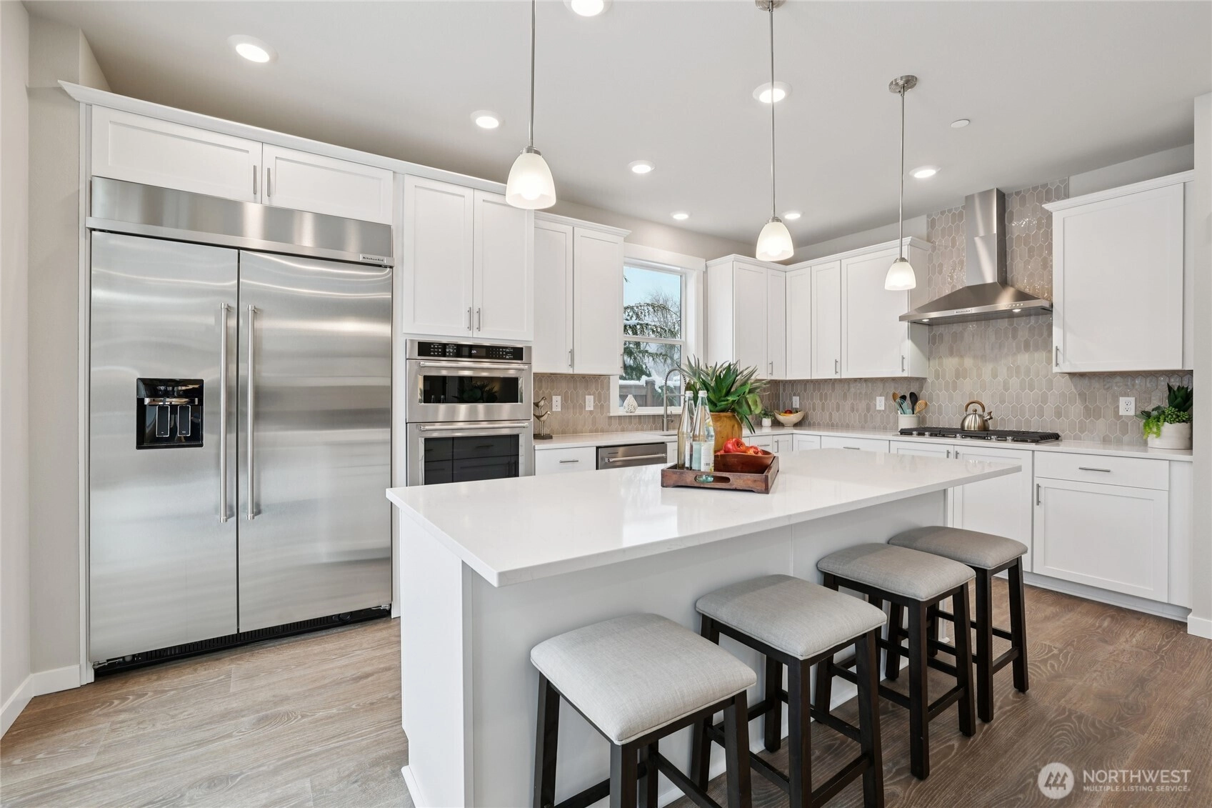 Welcome to Rosewood Court, an enclave of 51 brand-new single-family homes in desirable North Rose Hill, ideally situated between Kirkland and Redmond. This thoughtfully designed home offers 3 bedrooms, 2.5 baths, and a 2-car garage on a premium flat corner homesite. The main level features a spacious gourmet kitchen with a huge island, quartz counter tops, slow-close white cabinetry, and a built-in 48" counter-depth side-by-side refrigerator - perfect for entertaining and everyday living. Upstairs, enjoy the primary suite with a 4-piece bath with large walk-in closet, along with two additional bedrooms, laundry room plus a full bath. Additional highlights include central air conditioning with heat pump, Smart Home Technology, and electric vehicle charger ready. Close to top employers, dining, parks and commuter routes, yet nestled in a quiet, peaceful neighborhood with spacious street and ample parking. Home of the week with improved pricing to include front load washer and dryer with pedestals, only two of this plan remain in the community. Compared to other options in the area, this home has a spacious back yard, a two-car garage and privacy to the East! Buyer must register broker on first visit, including open houses.