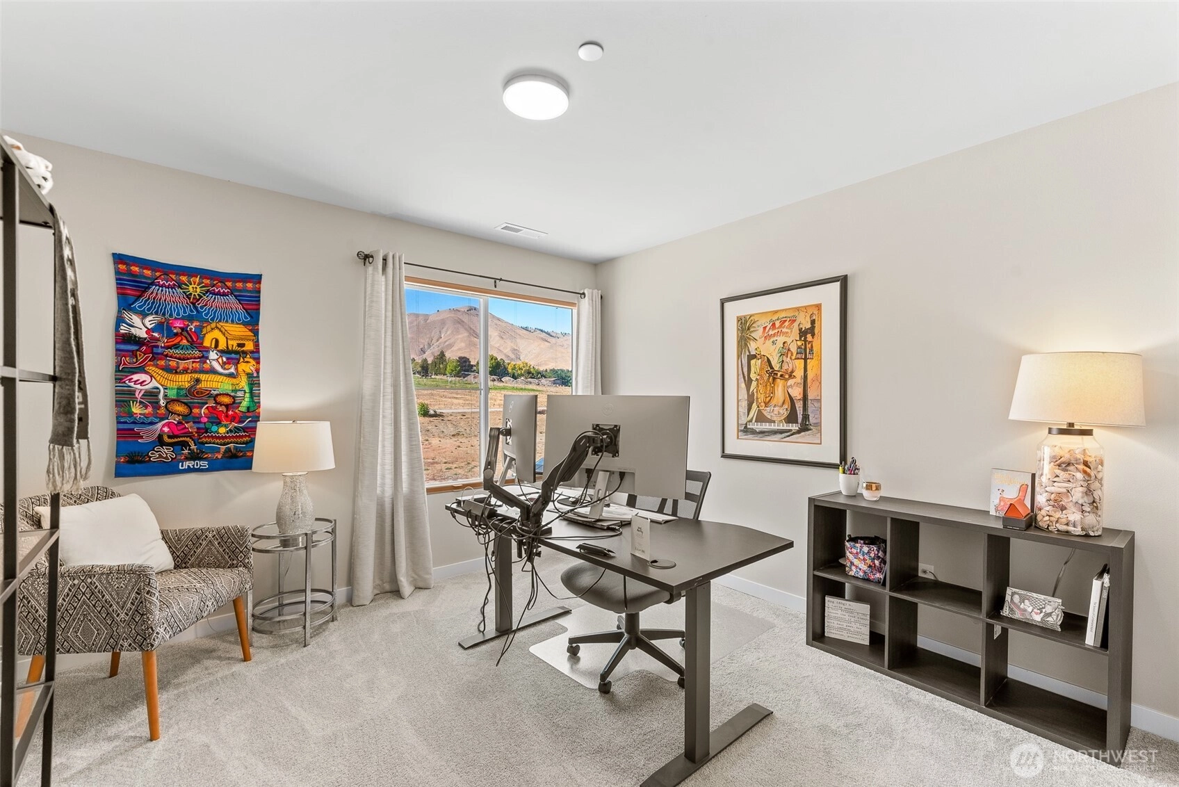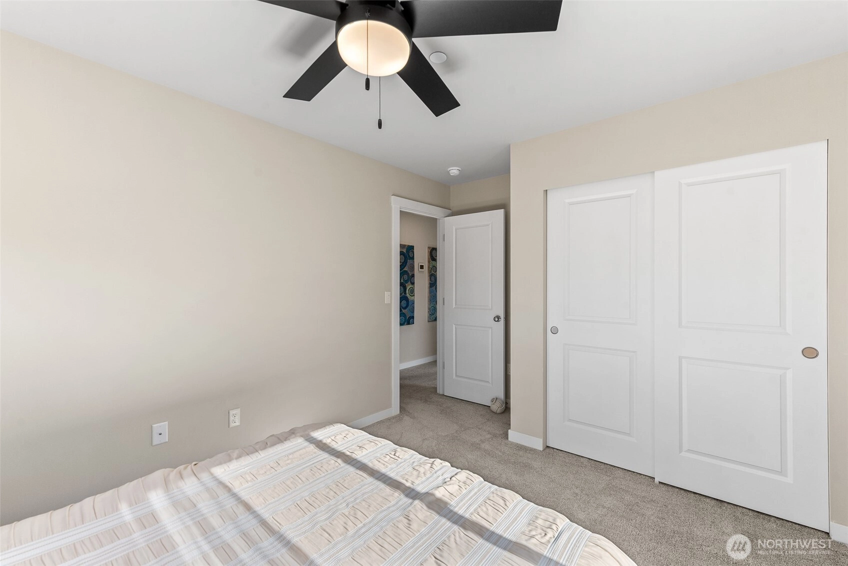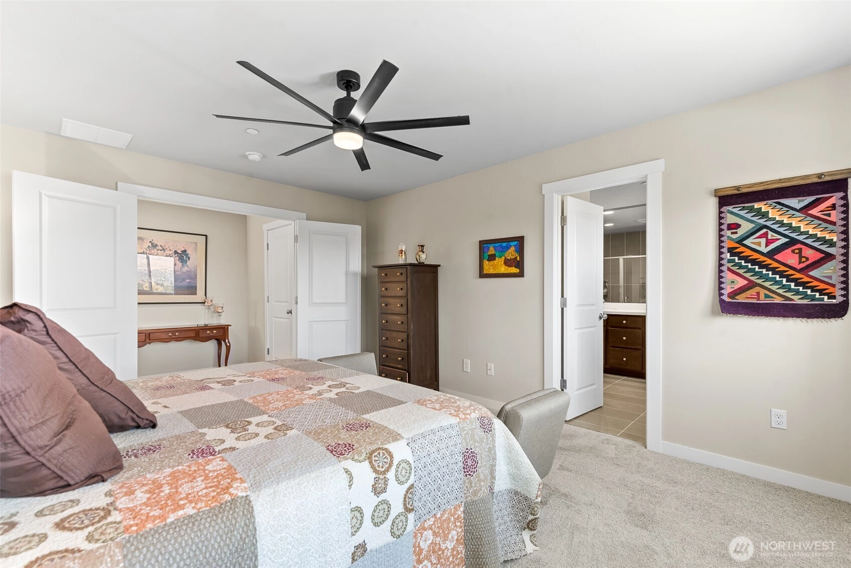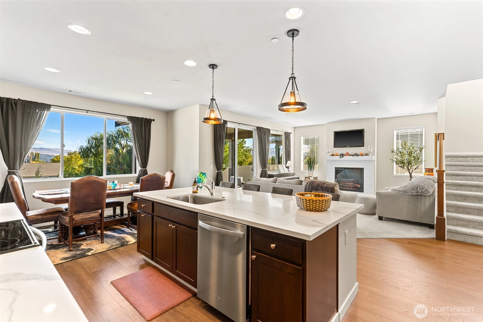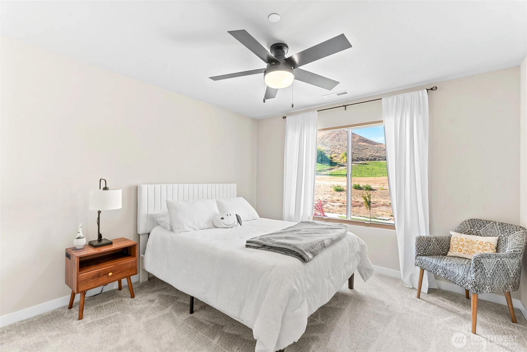 Experience easy, low-maintenance living without sacrificing space, views, or location in this beautifully situated home. Perfectly positioned in a central spot with stunning mountain and city views, this home puts you close to everything while still feeling peaceful and private. Located just minutes from local trails, makes it effortless to sneak in a morning walk, evening bike ride, or weekend adventure. The main floor features a private bedroom with its own ¾ bath, ideal for guests, multi-generational living, or a quiet home office setup. The cozy living room invites you to unwind with a stylish electric fireplace that adds warmth and ambiance at the touch of a button. The kitchen is truly the heart of the home designed with both everyday living and entertaining in mind. A massive island anchors the space, offering plenty of prep room and seating. You’ll love the sleek stainless steel appliances, generous cabinet storage, and a walk-in pantry. Upstairs, the spacious primary suite feels like your own private retreat. The en-suite bathroom features dual sinks, a luxurious soaking tub, a separate walk-in shower, and a large walk-in closet. Three additional bedrooms, a full bathroom, a versatile bonus room (perfect for a playroom, media space, or home gym), and a conveniently located laundry room complete the upper level. Outside, you’ll find a covered patio that overlooks the peaceful irrigation canal trail a serene backdrop to enjoy quiet evenings or afternoon BBQs.