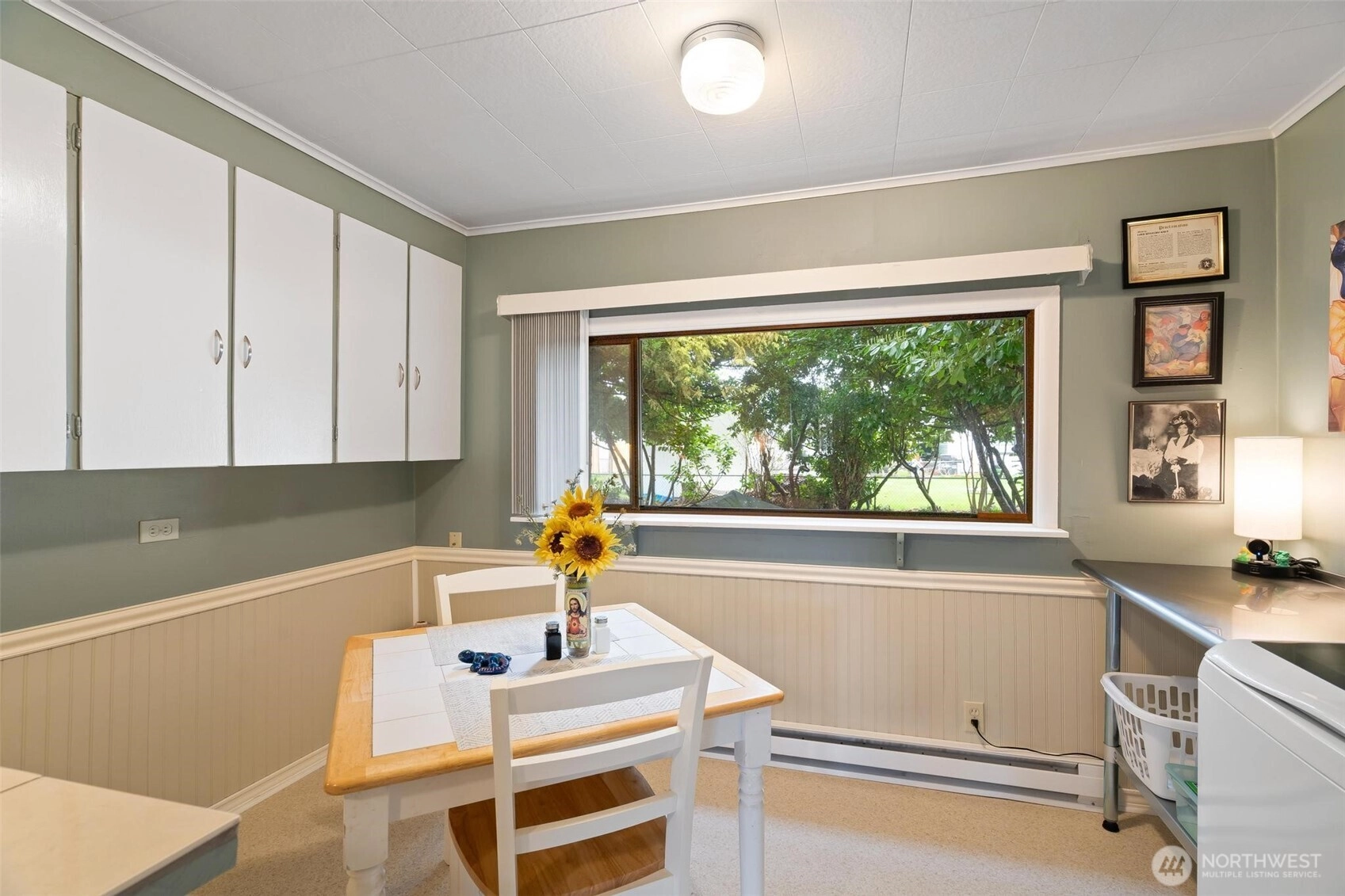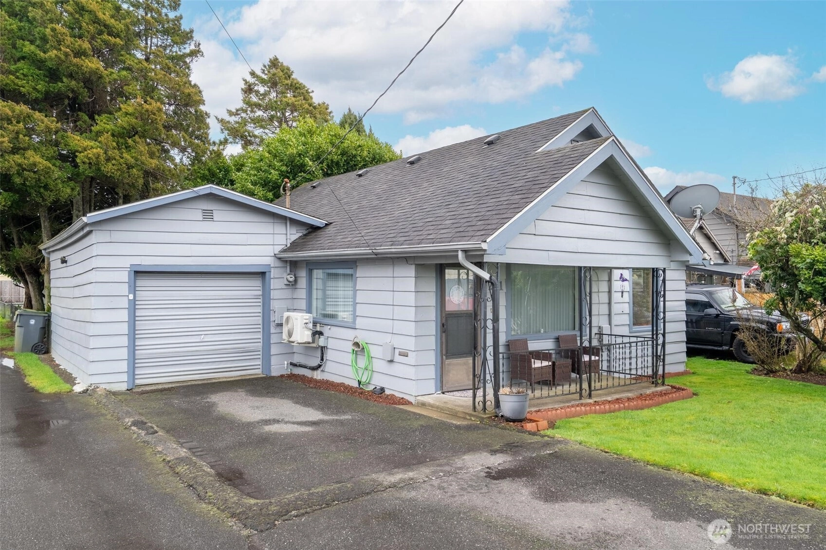 Welcome home to this charming, fully furnished bungalow in Hoquiam! Cozy, bright, and inviting, this 2 bed, ¾ bath home offers effortless, low-maintenance living. Delight in the fully fenced yard - a peaceful space shaded by mature trees. Everyday comfort awaits with a modern & energy efficient heat pump (AC & heat), cheerful updated kitchen, spacious garage, and ample driveway parking. Conveniently located walking distance from Washington Elementary and nearby local dining and recreation. Move-in ready - just unpack and feel at home!