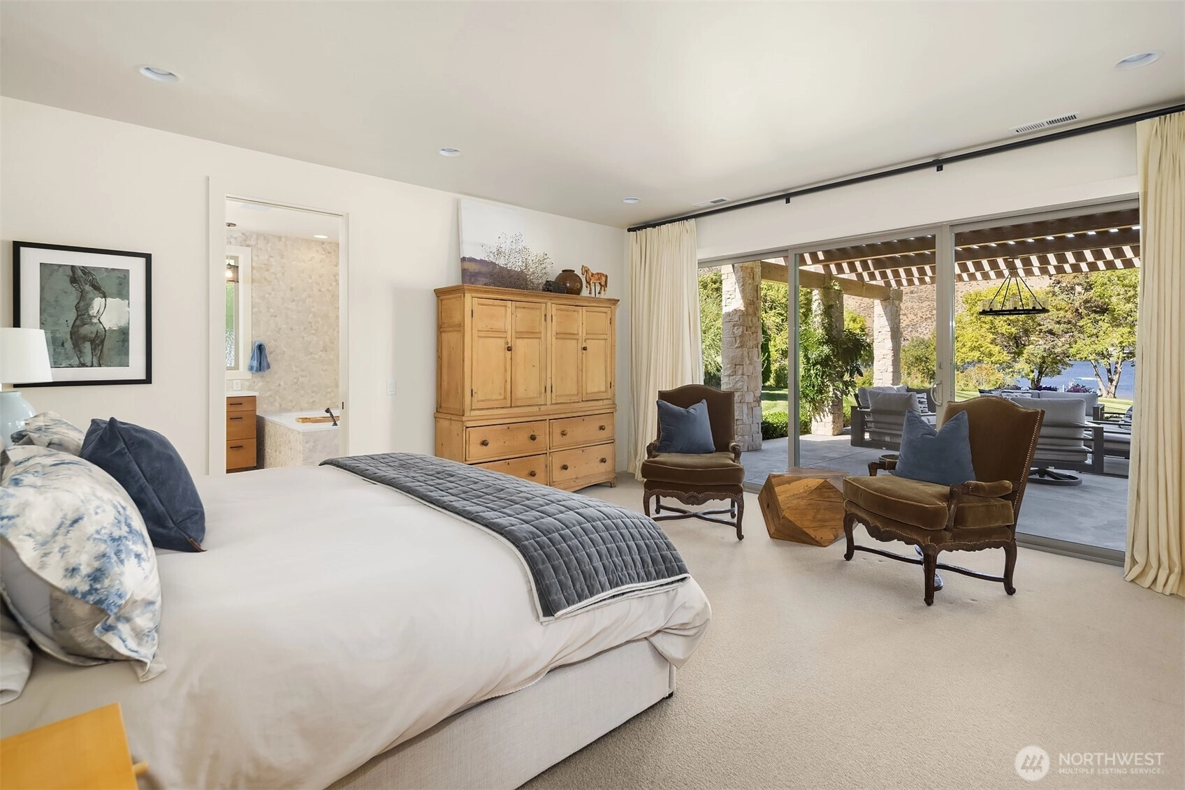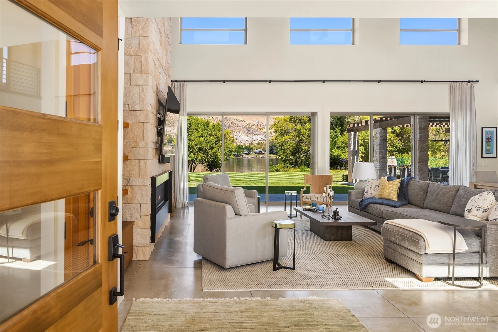 Welcome to 252 Vineyard Drive at Twin W! Experience the best of riverfront living along the breathtaking Columbia River in this gorgeous home with 130 feet of prime frontage, low-bank beach access, and a shared dock (2 parties). Adjacent to the community boat launch and located in one of the area’s most sought-after high-end neighborhoods, this property offers an unmatched blend of luxury and low-maintenance ease—just minutes to Chelan and East Wenatchee. Built in 2018 with exceptional craftsmanship, this modern, impeccably maintained home offers just shy of 3,800 sqft plus an oversized 3-car garage with over 1,100 sqft. Set on over an acre of manicured grounds, the property also features a brand-new full-size pickleball court with fencing. Inside you’ll find an open concept layout w/ spacious great room, vaulted ceilings, 4 bedrooms including a versatile bunkroom, concrete and engineered hardwood floors, solid wood doors, and stunning stone accents surrounding the gas fireplace and extending to the exterior. The primary suite has a massive walk in closet with built ins, walk in tile shower, & soaking tub! The chef’s kitchen boasts high-end appliances, a large island with seating for 6, and pass through window to exterior sit up bar. Designed for effortless entertaining, enjoy expansive patios and decks, hot tub, outdoor shower, and built-in BBQ station!